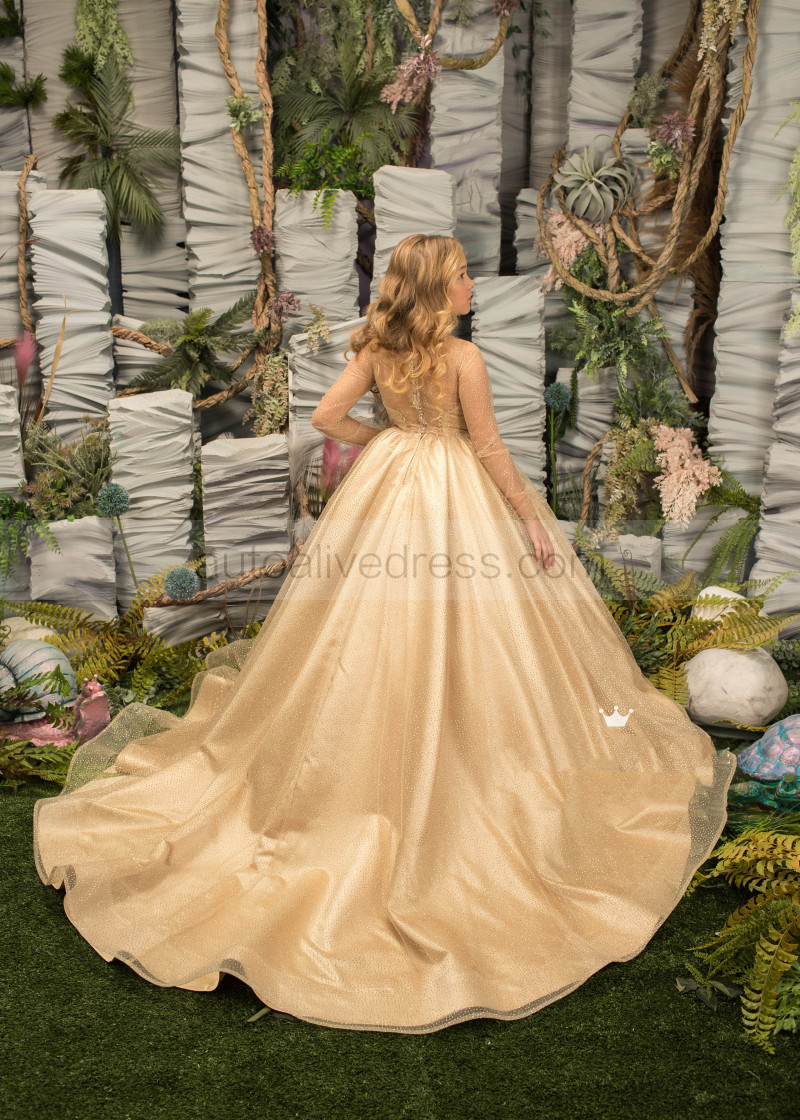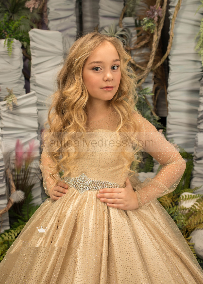 Gold Sparkle Tulle Beaded Belt Flower Girl Dress