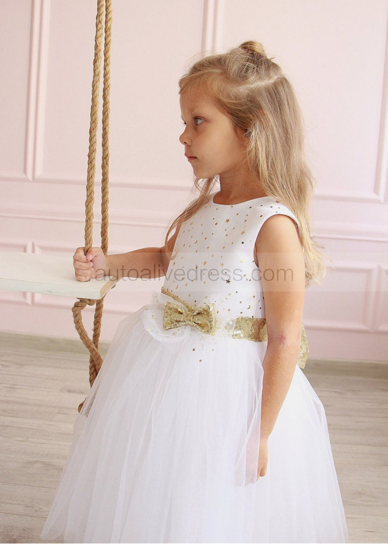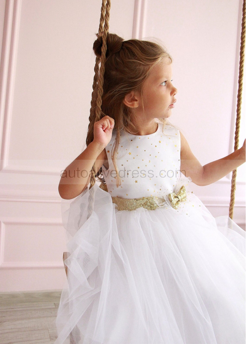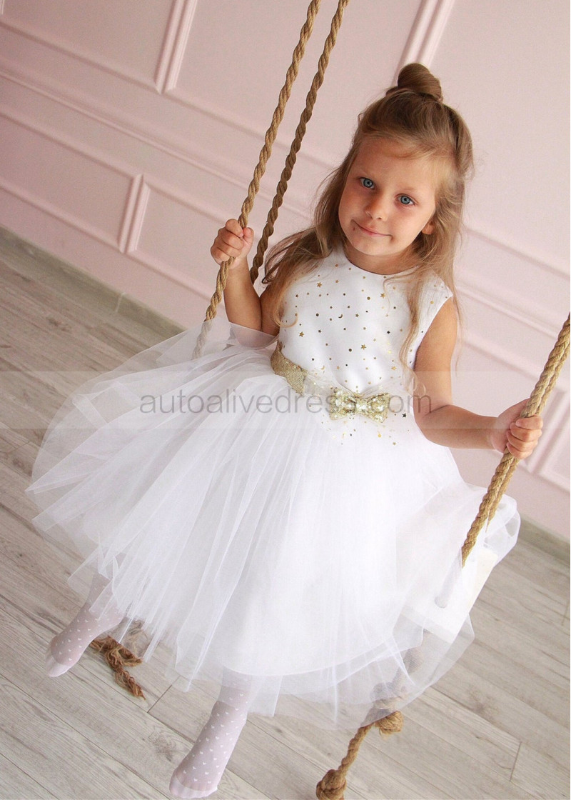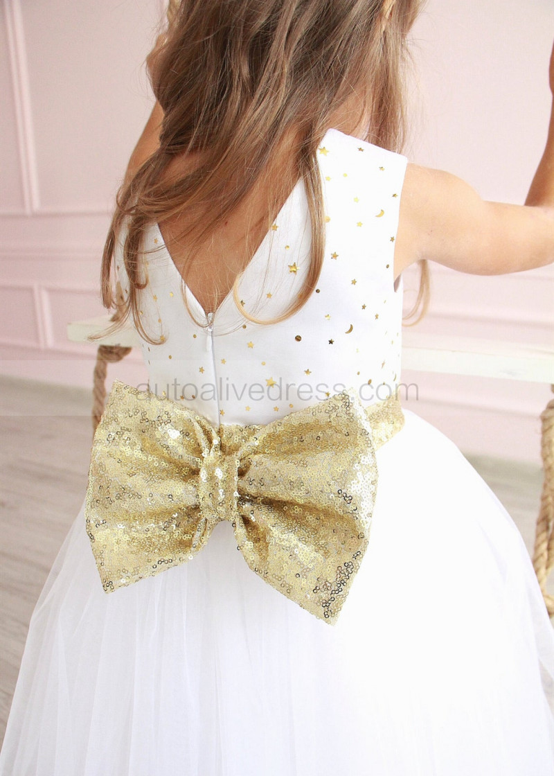Gold Star Moon Tulle V Back Flower Girl Dress
