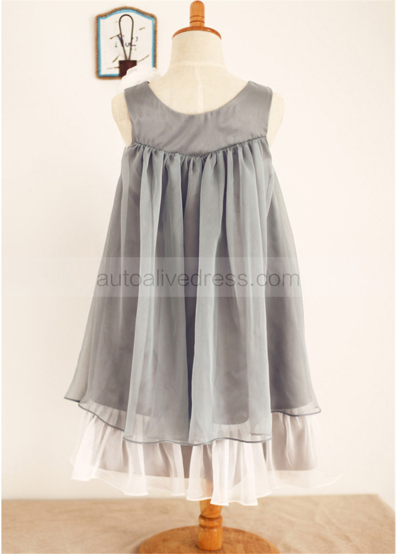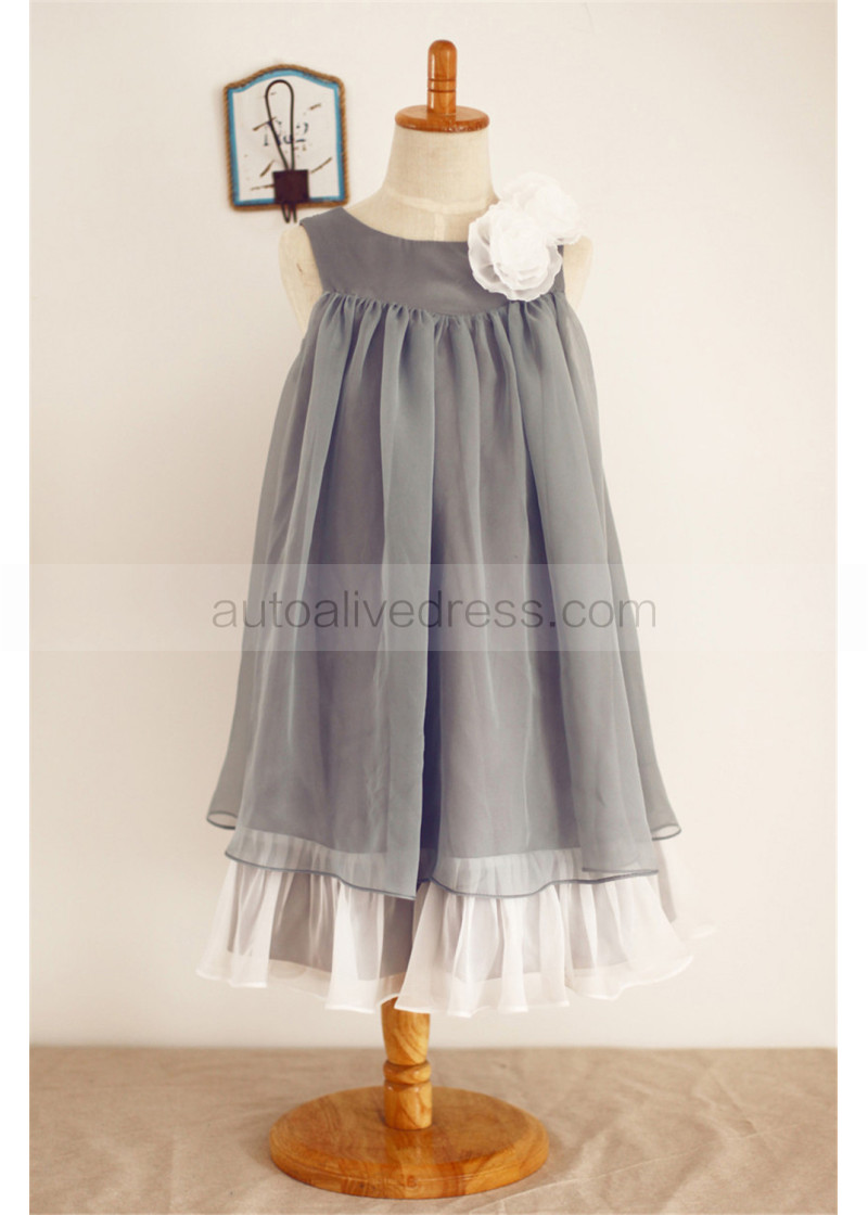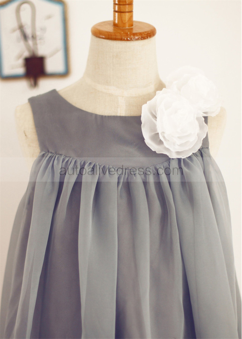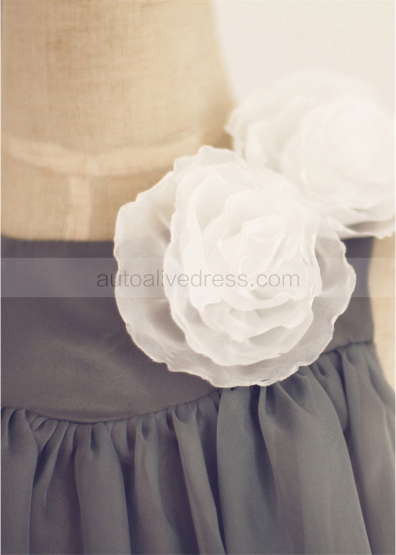 Gray Chiffon Beach Wedding Flower Girl Dress With Ivory Flowers