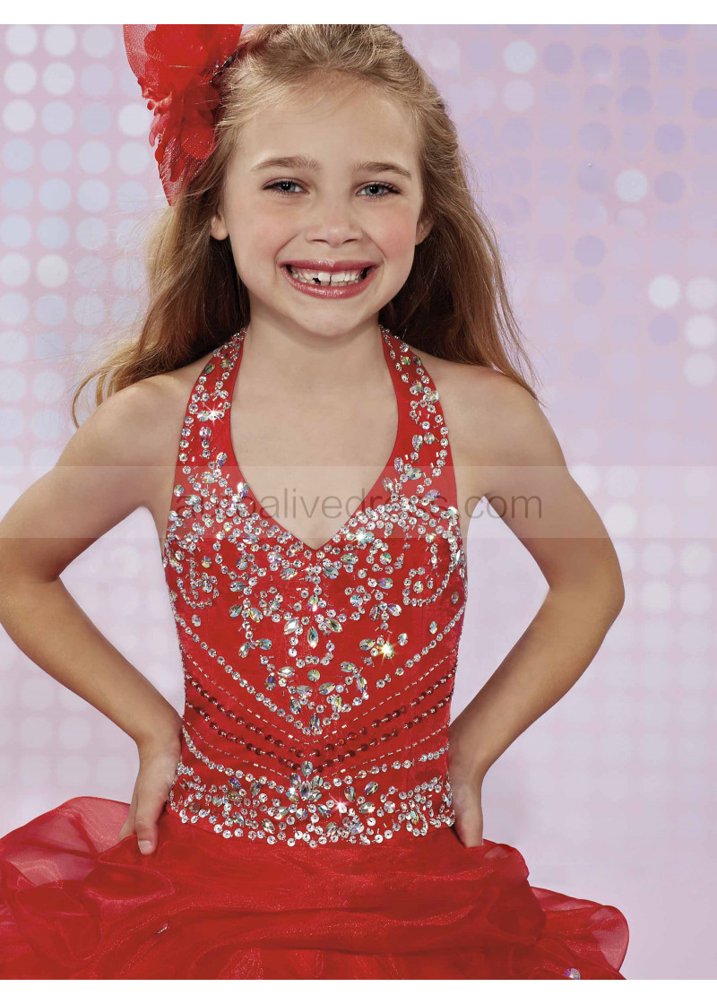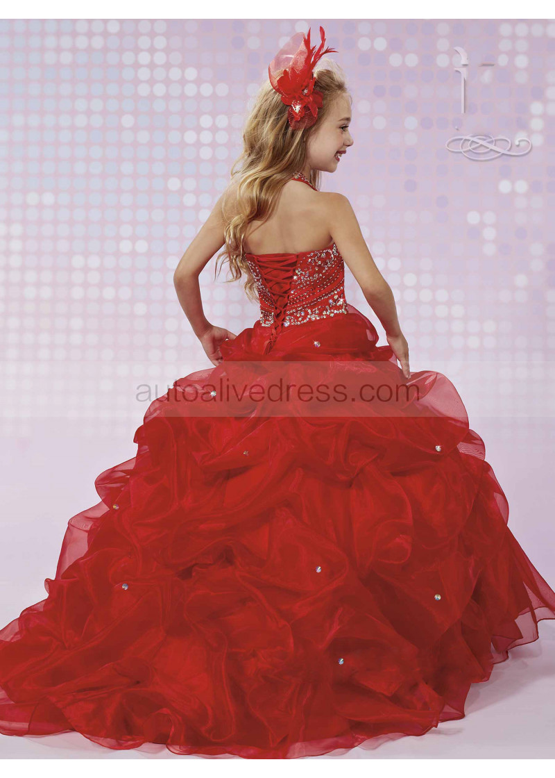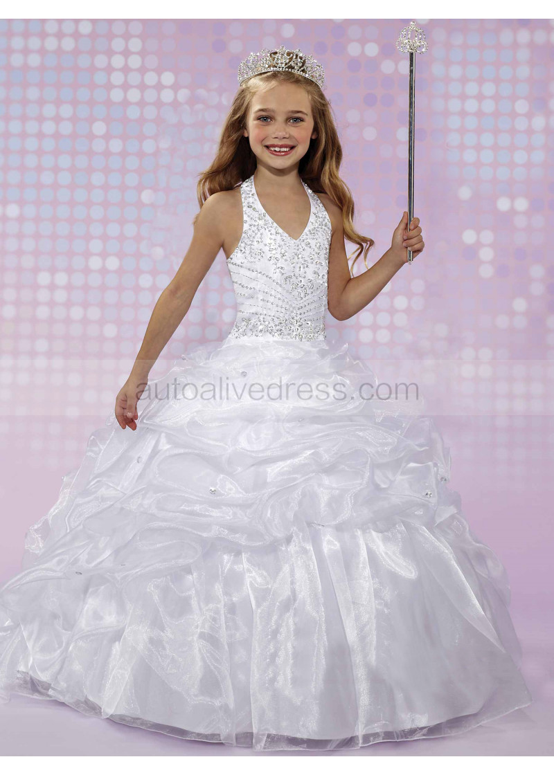 Halter Neck Beaded Organza Pick-up Bubble Skirt Flower Girl Dress