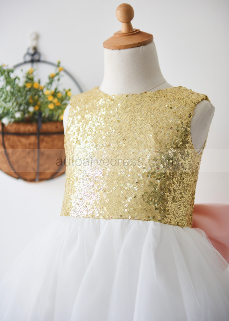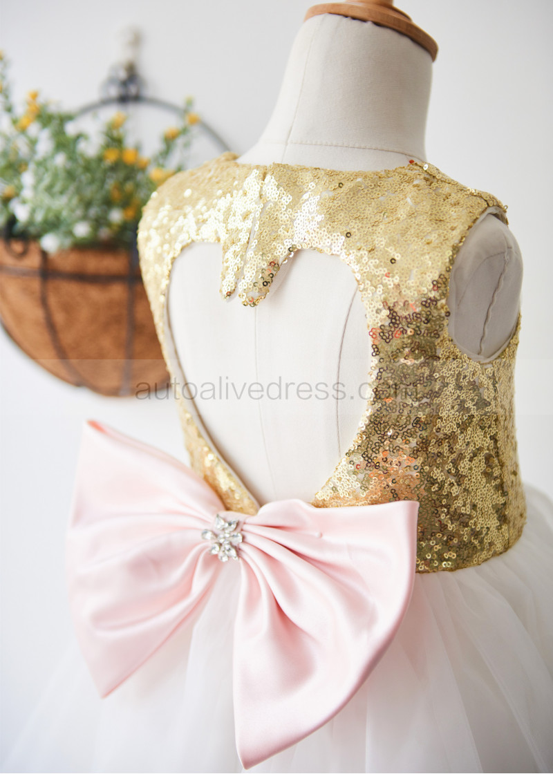 Shown Color | Gold Sequin, Ivory Tulle With Pink Bow |