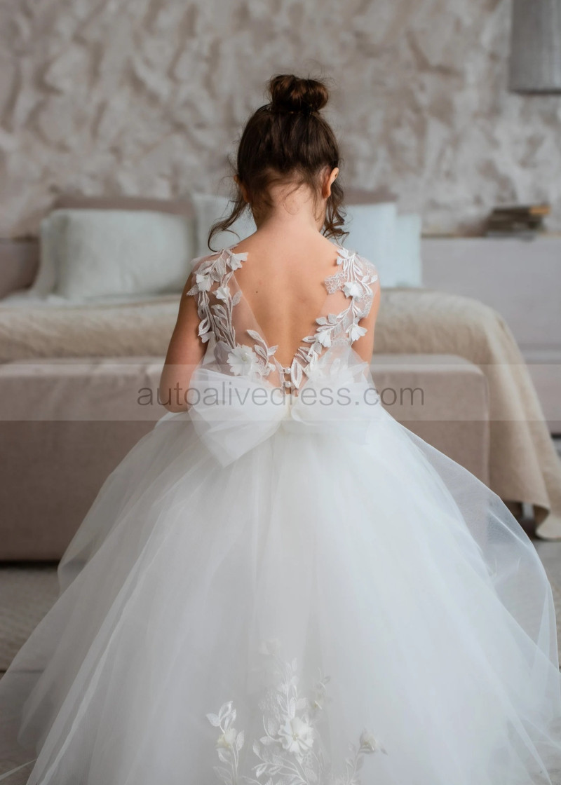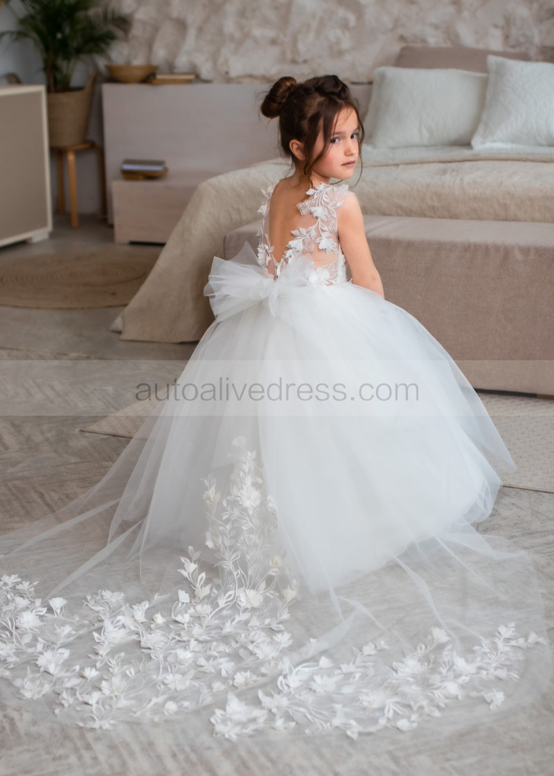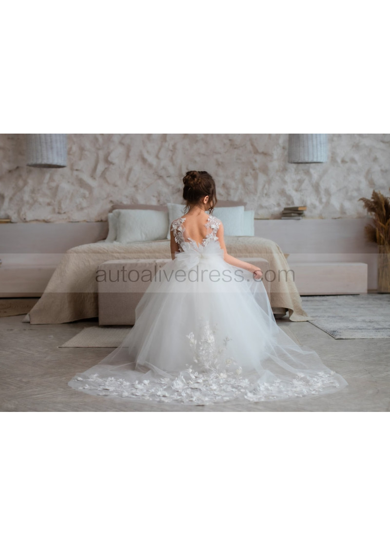 Ivory 3D Lace Tulle Amazing Flower Girl Dress With Detachable Train
