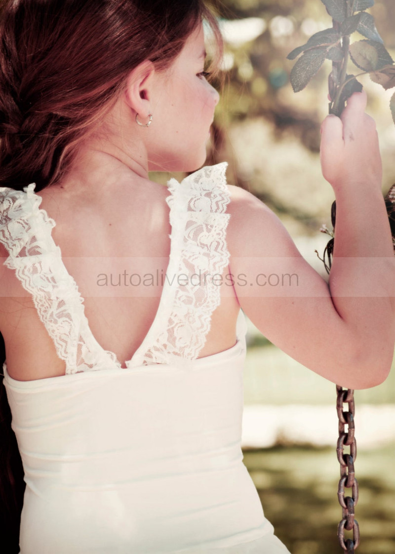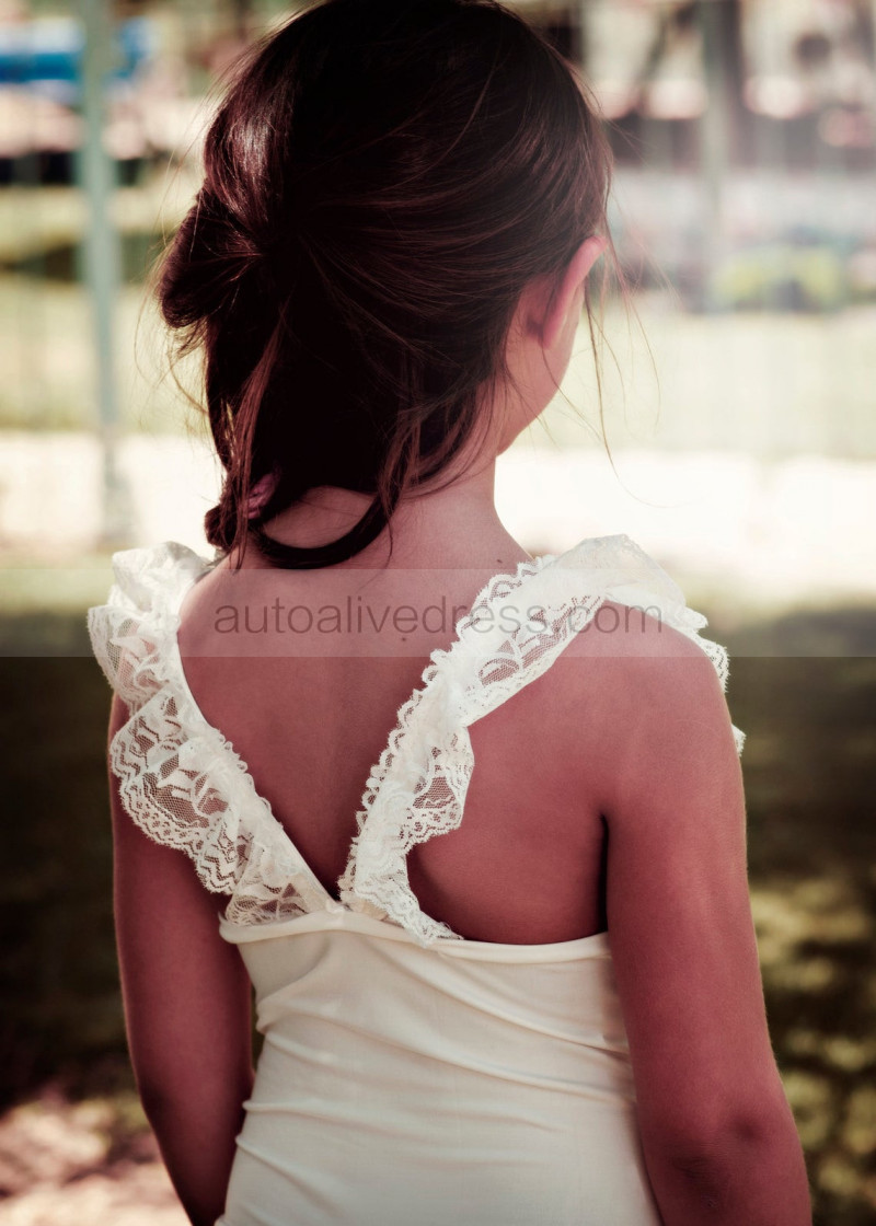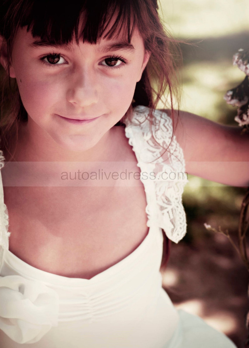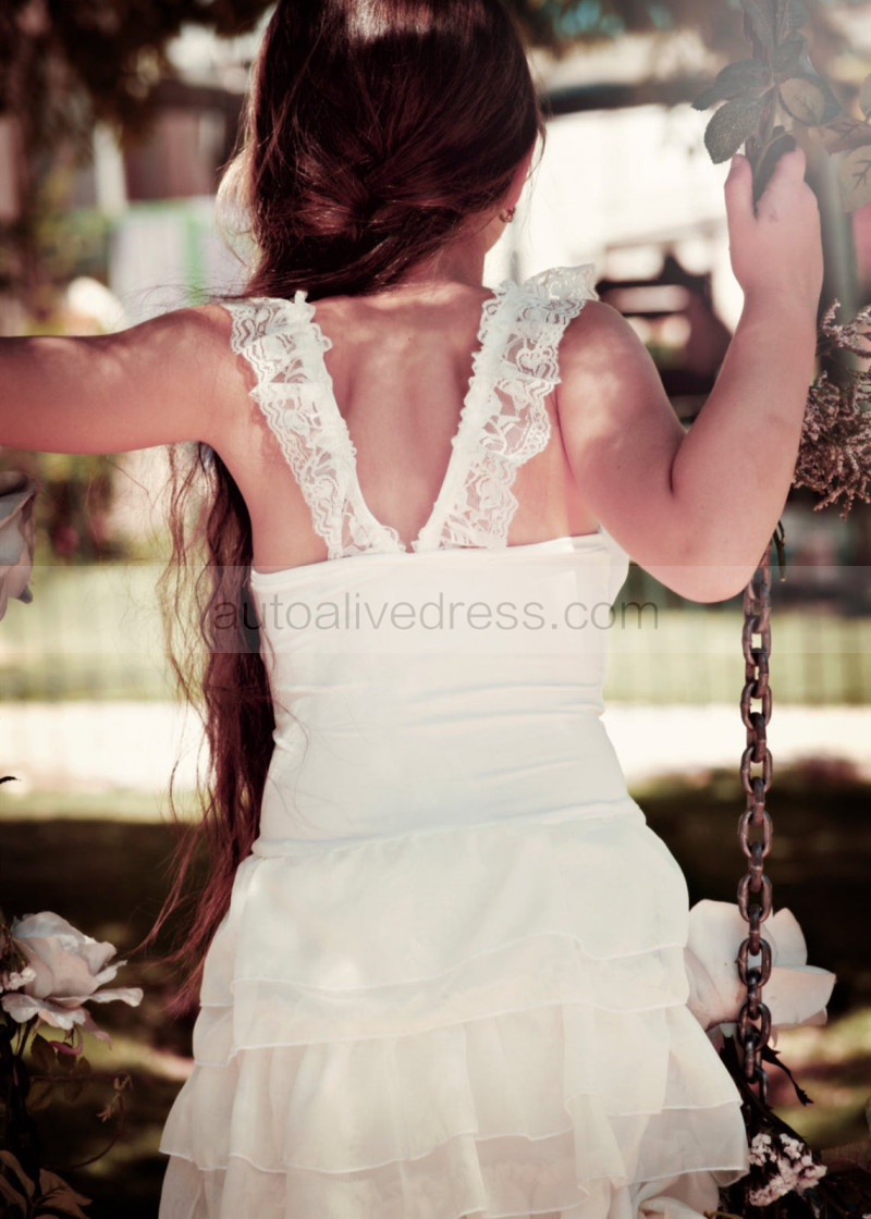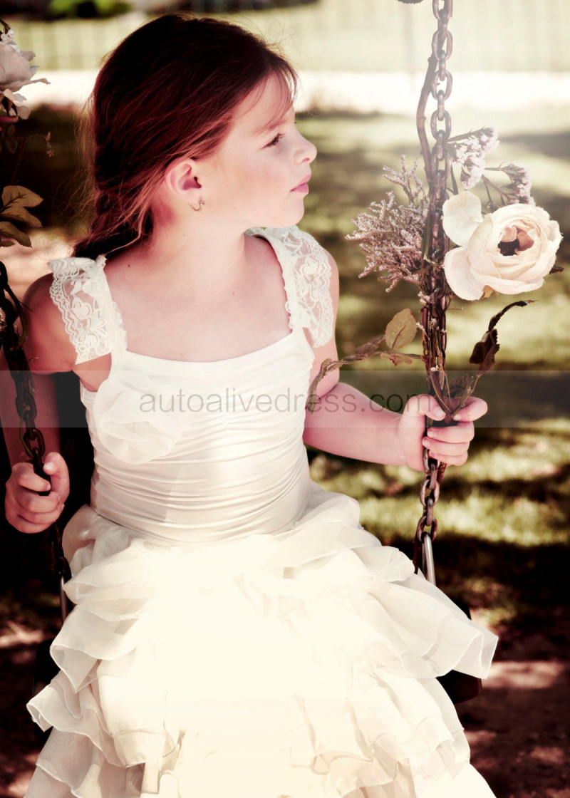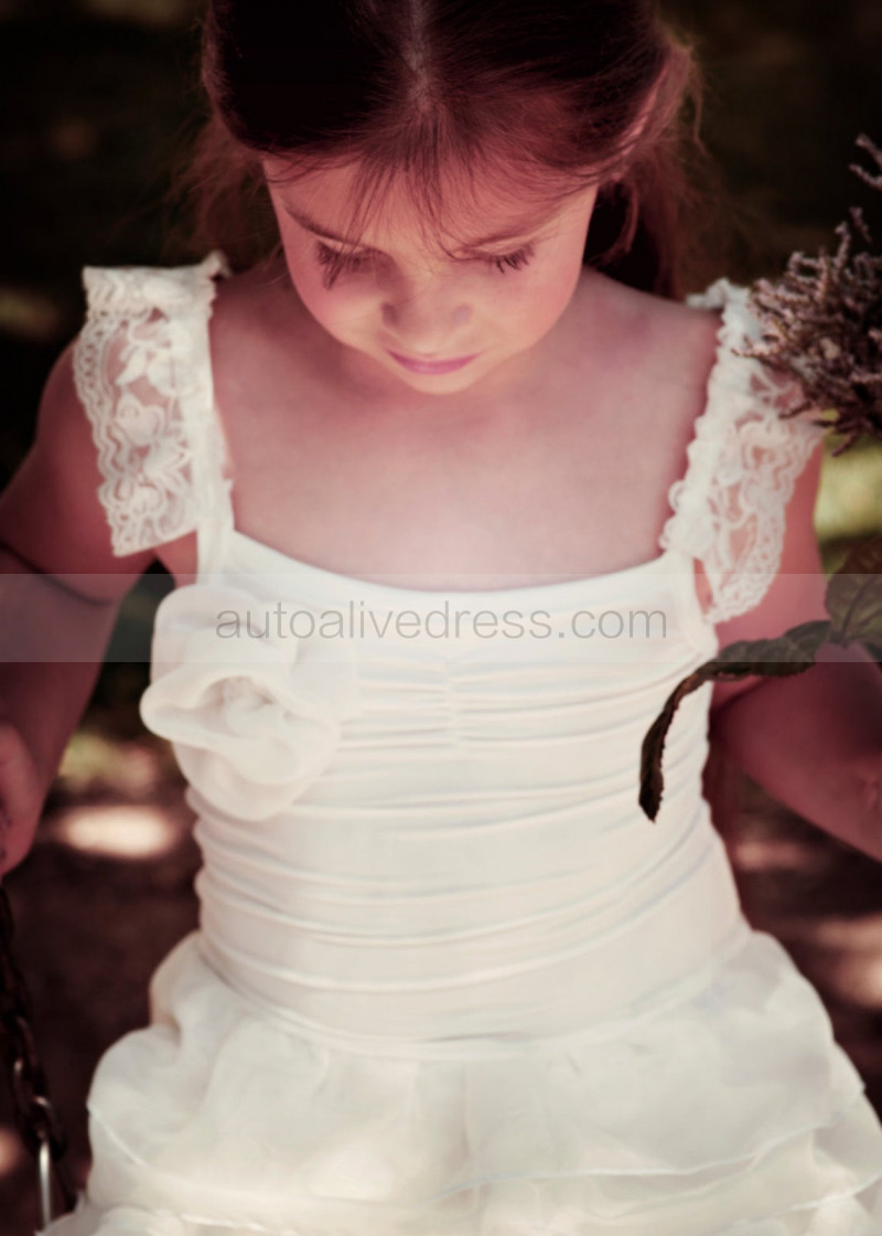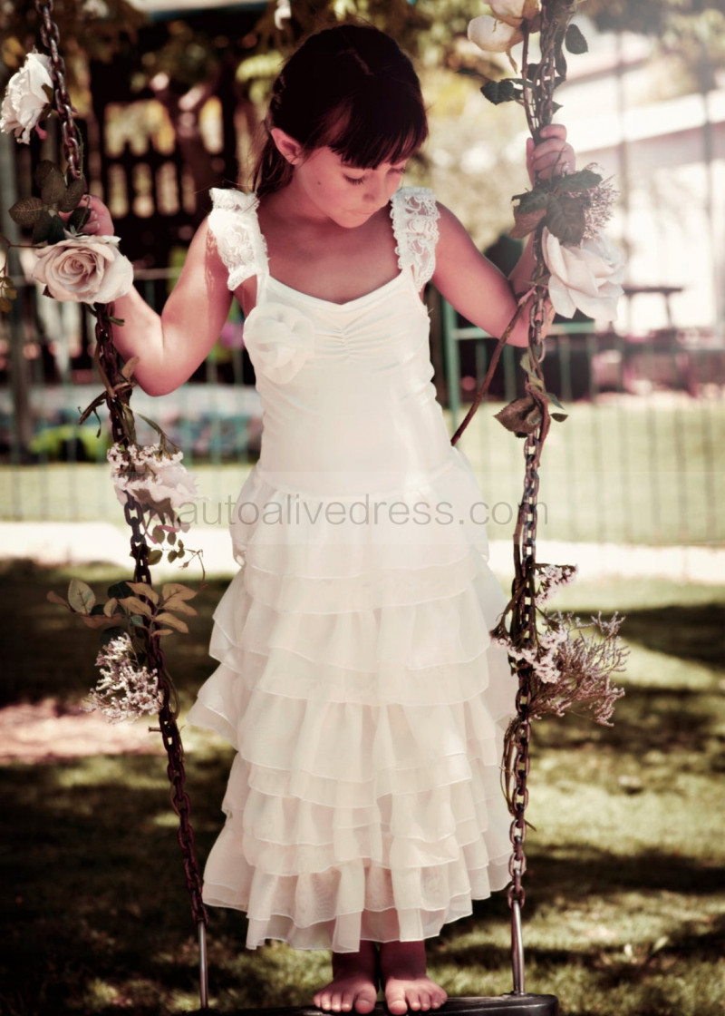 Ivory Chiffon Layered Ankle Length Boho Wedding Flower Girl Dress