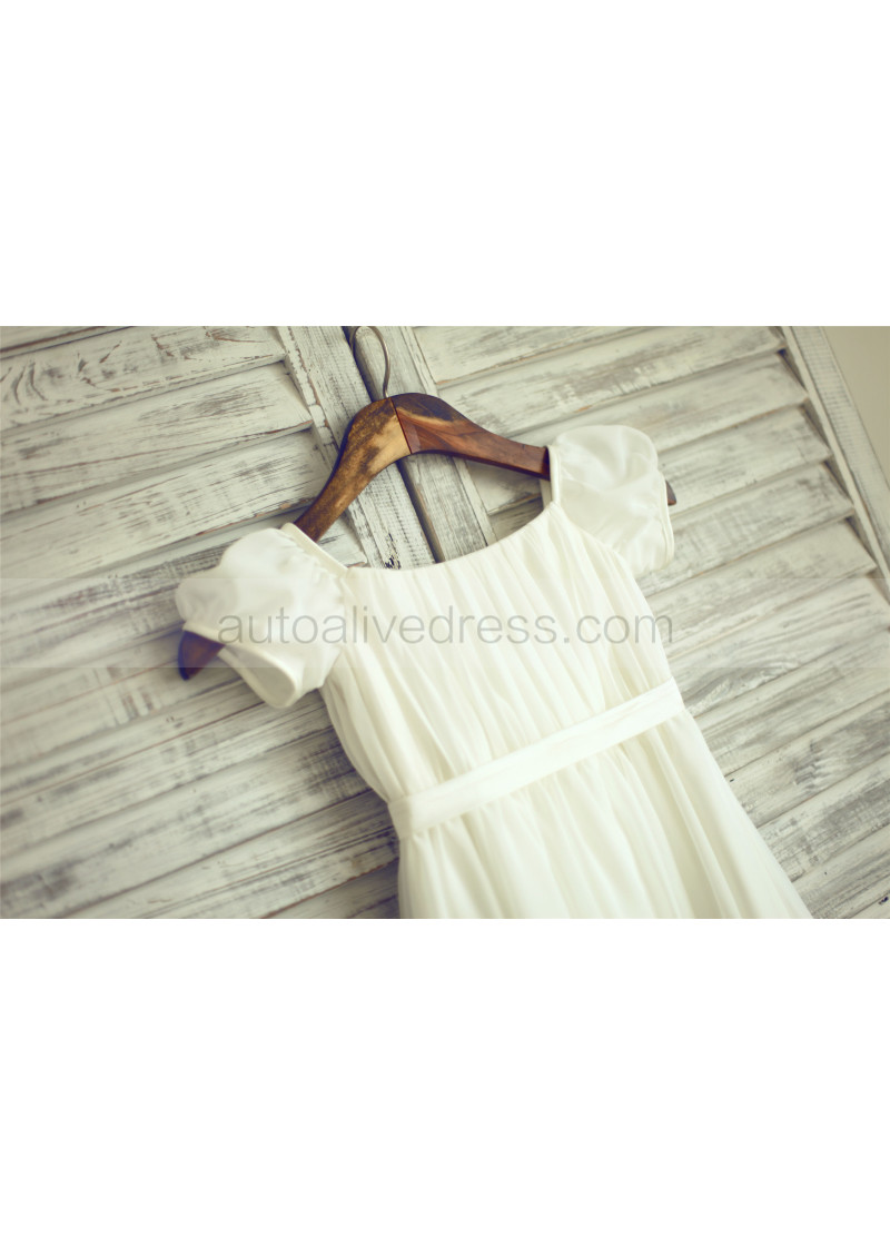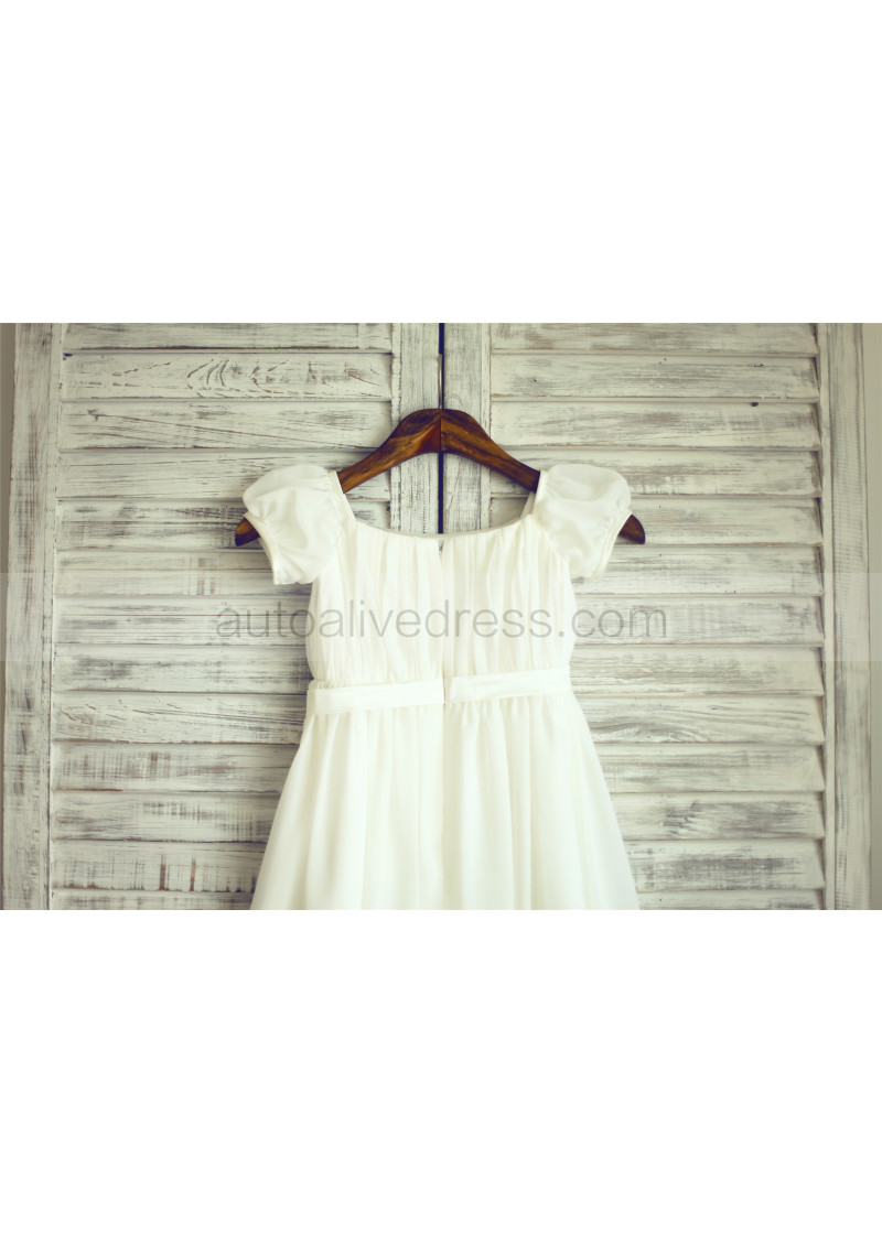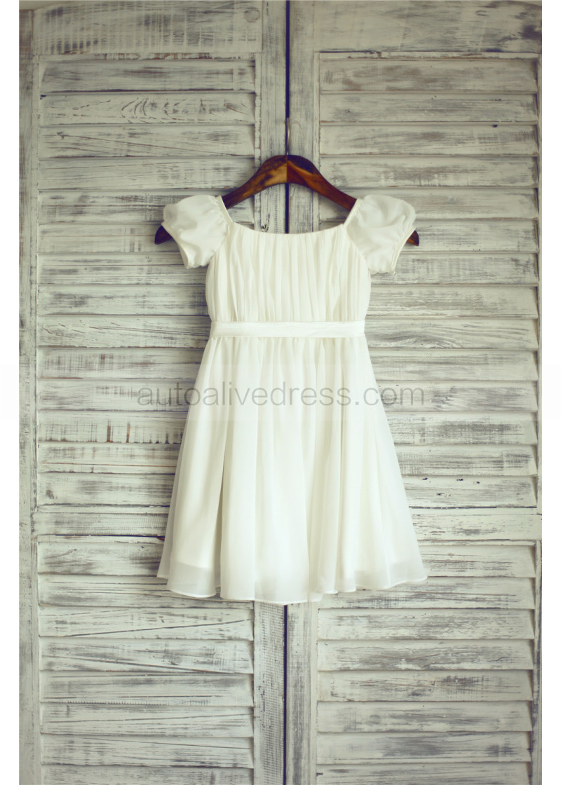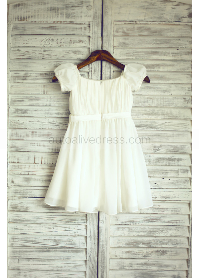 Ivory Chiffon Puff Sleeves Knee Length Flower Girl Dress