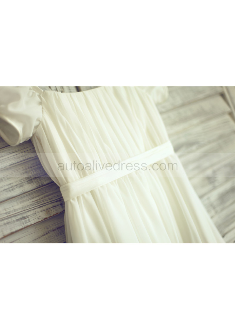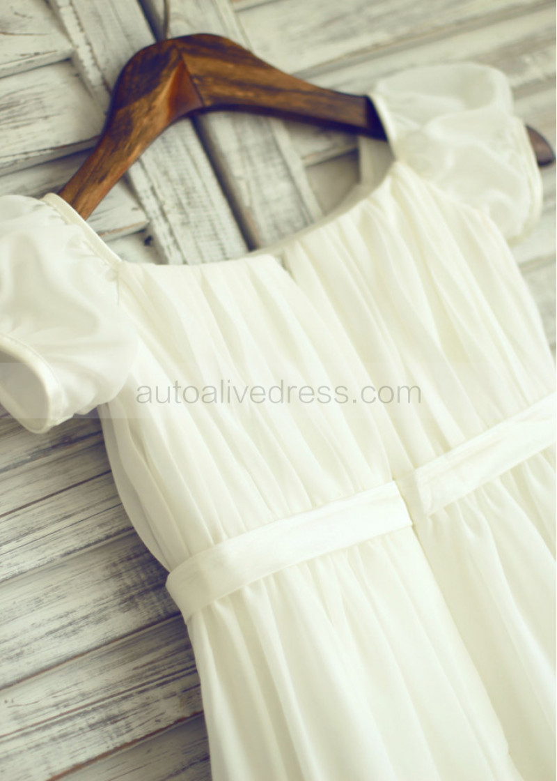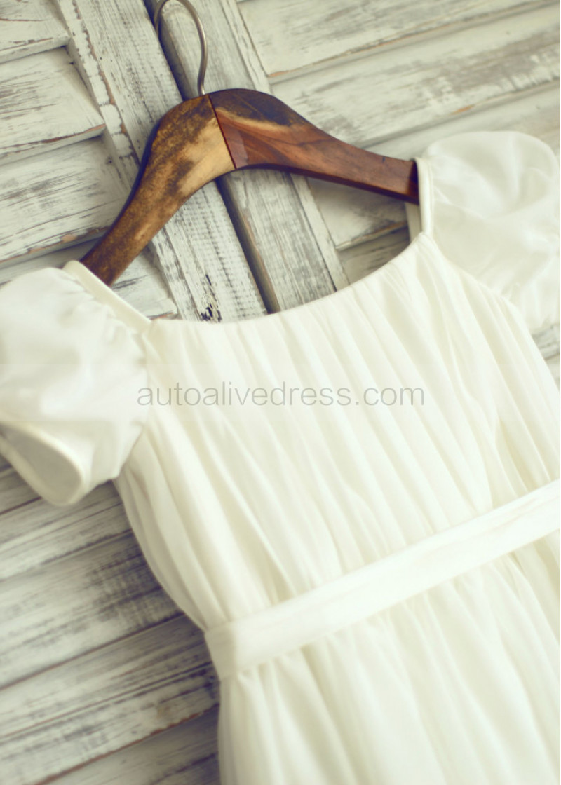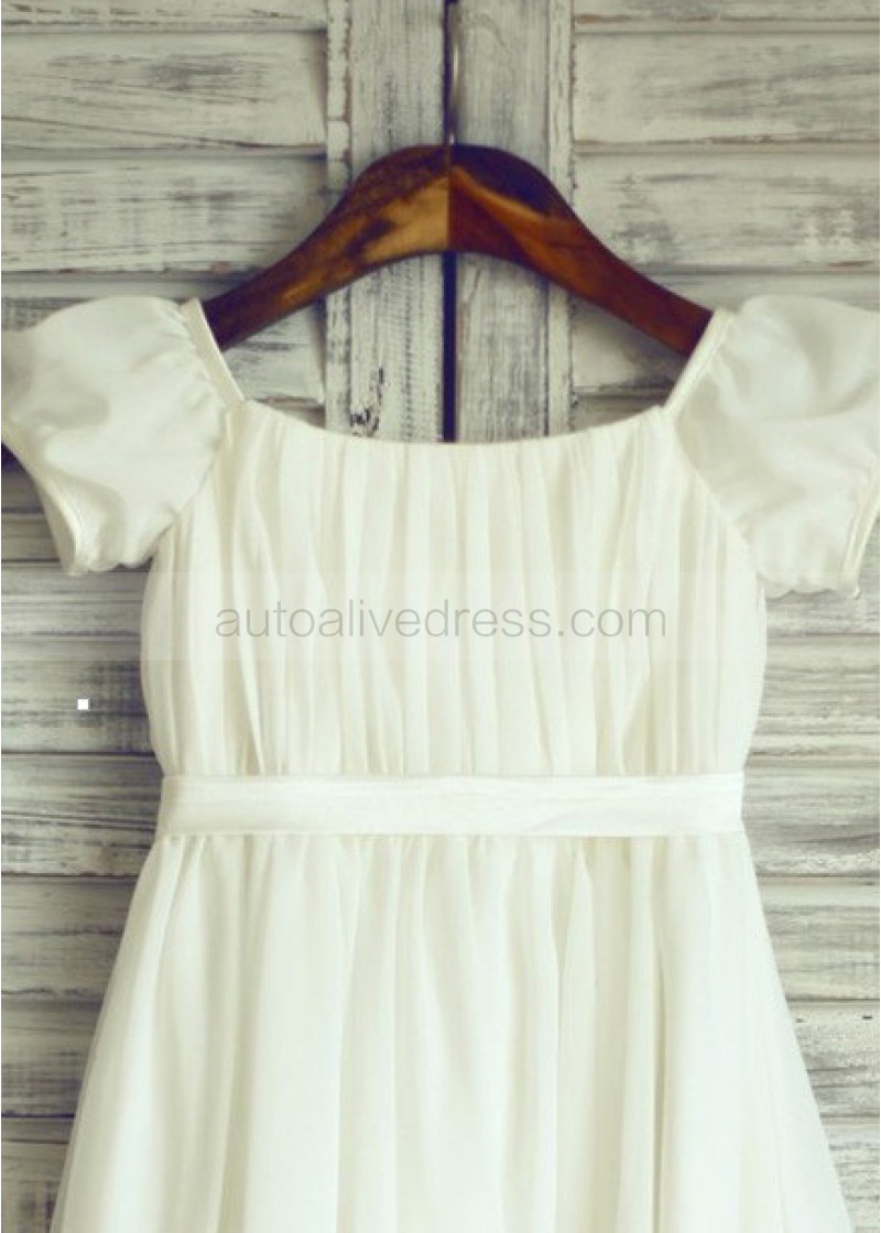 Ivory Chiffon Puff Sleeves Knee Length Flower Girl Dress