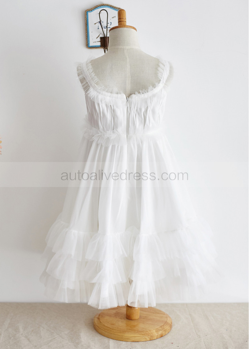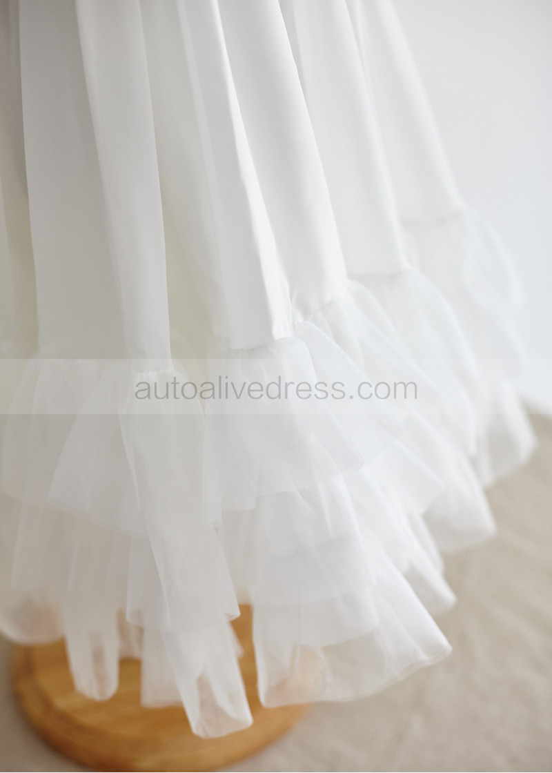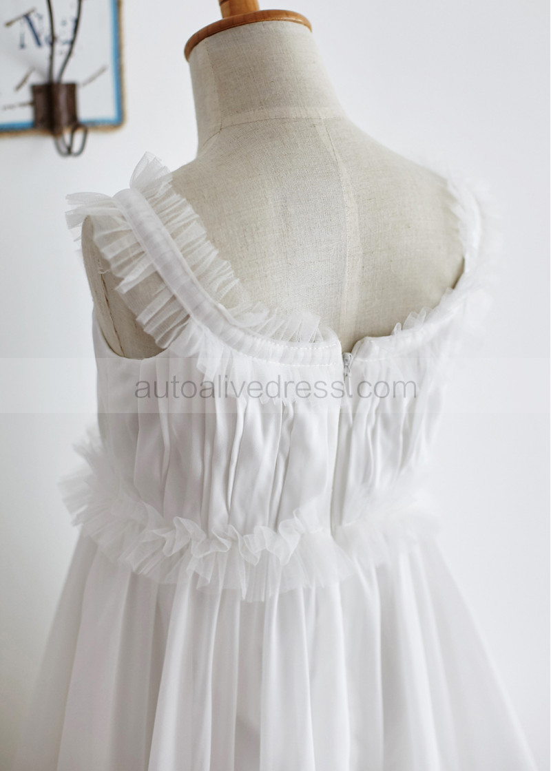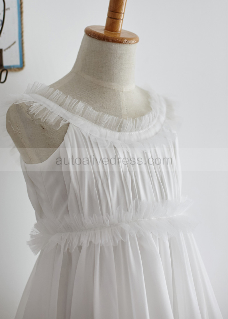 Ivory Chiffon Tulle Ruffles Pleated Flower Girl Dress