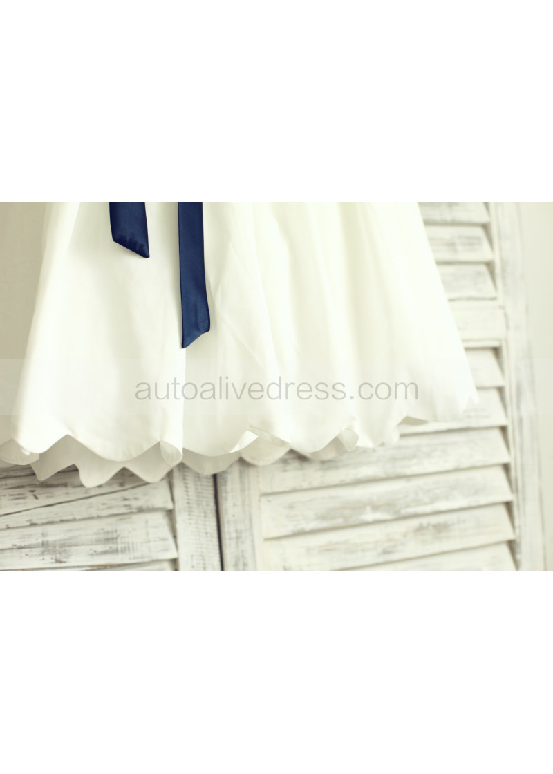 Ivory Cotton Scalloped Edge Flower Girl Dress