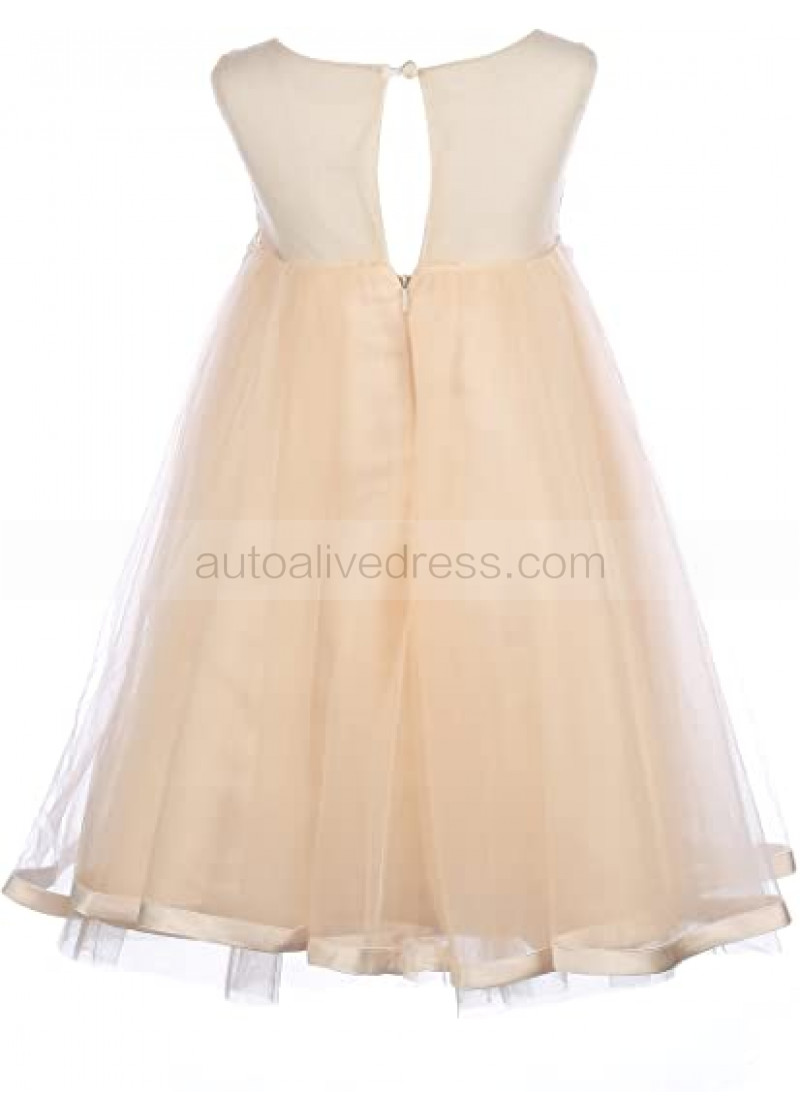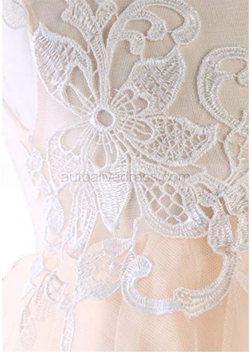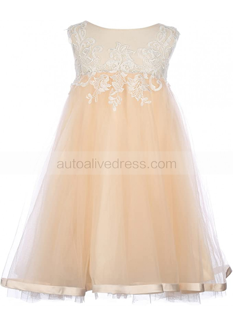Ivory Lace Champagne Tulle Slit Back Boho Beach Flower Girl Dress