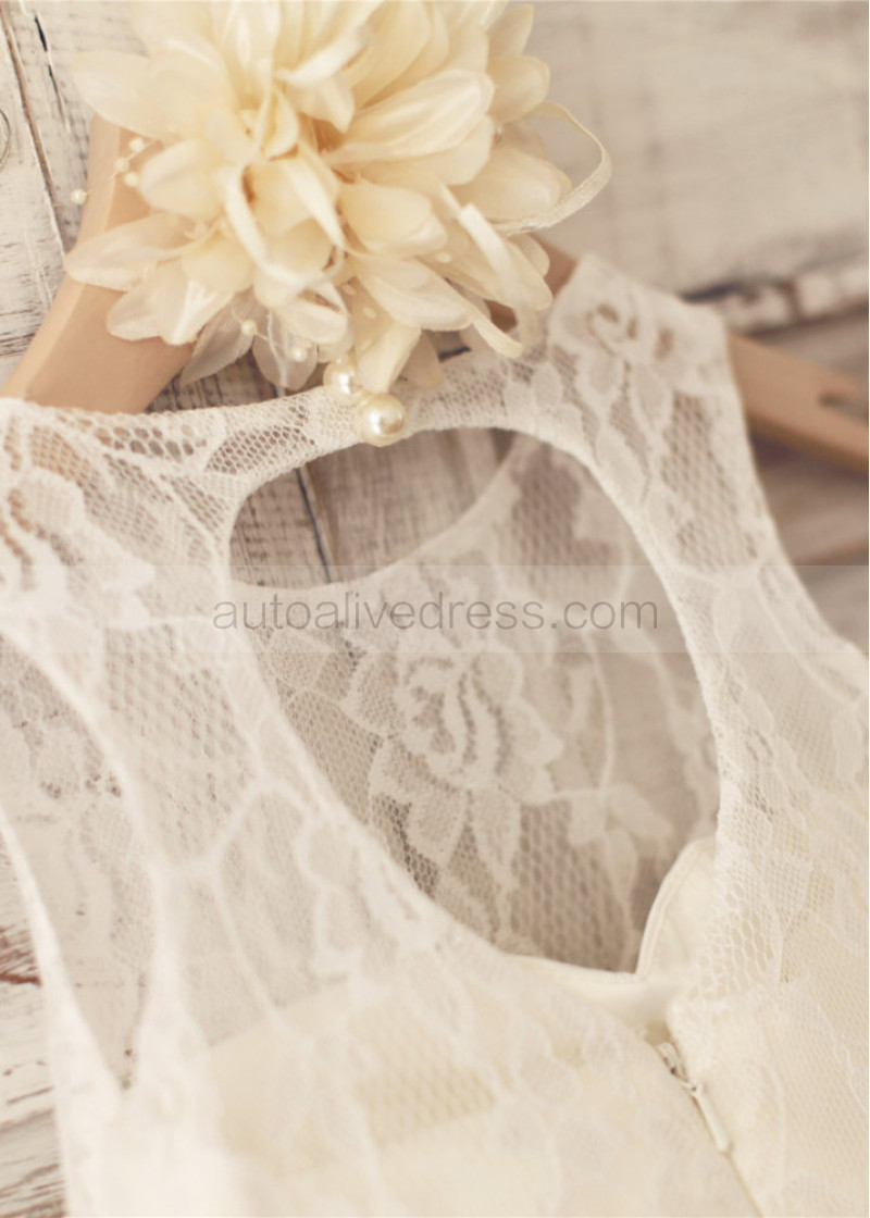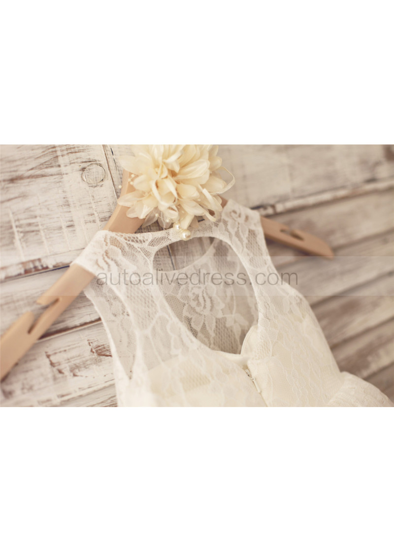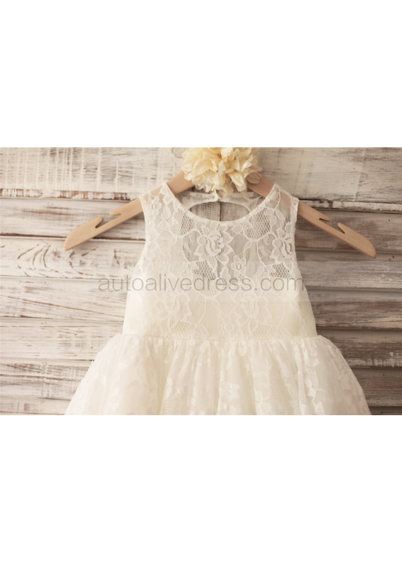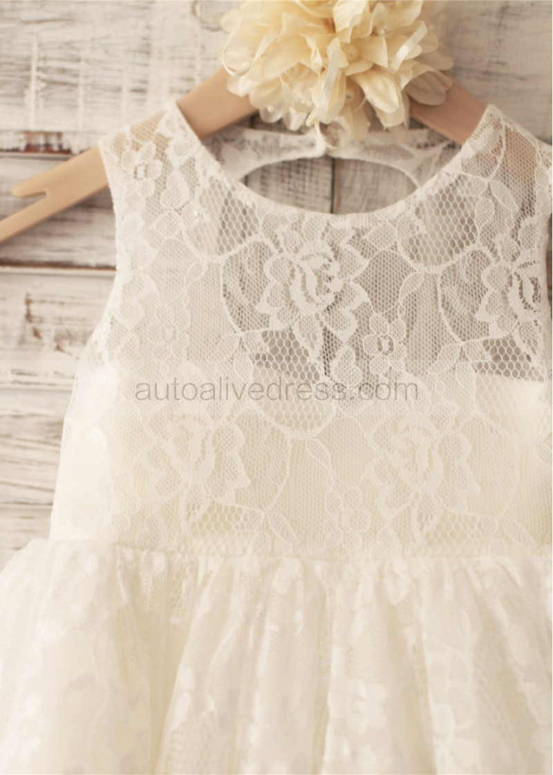 Ivory Lace Keyhole Back Country Maxi Flower Girl Dress