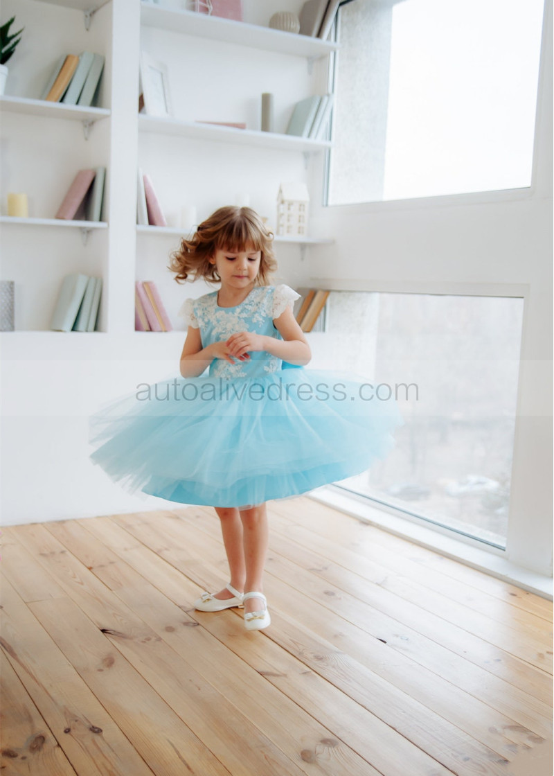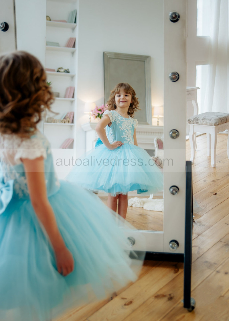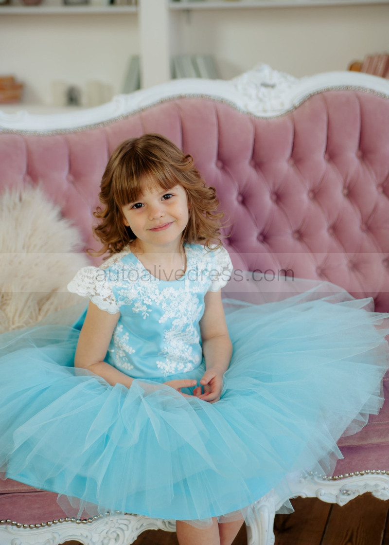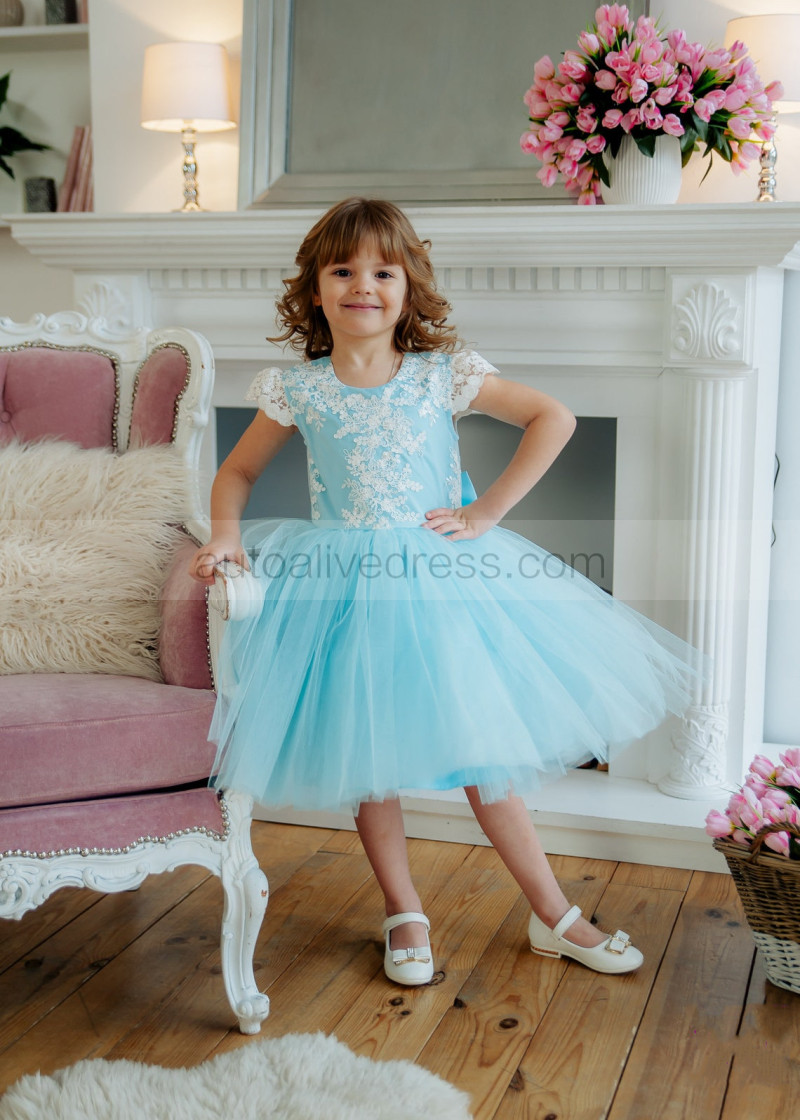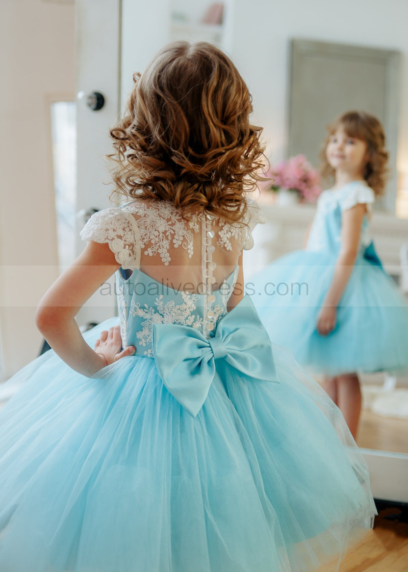 Ivory Lace Mint Blue Tulle Flower Girl Dress