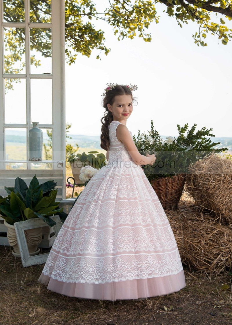 Ivory Lace Pink Tulle New Fashion Flower Girl Dress