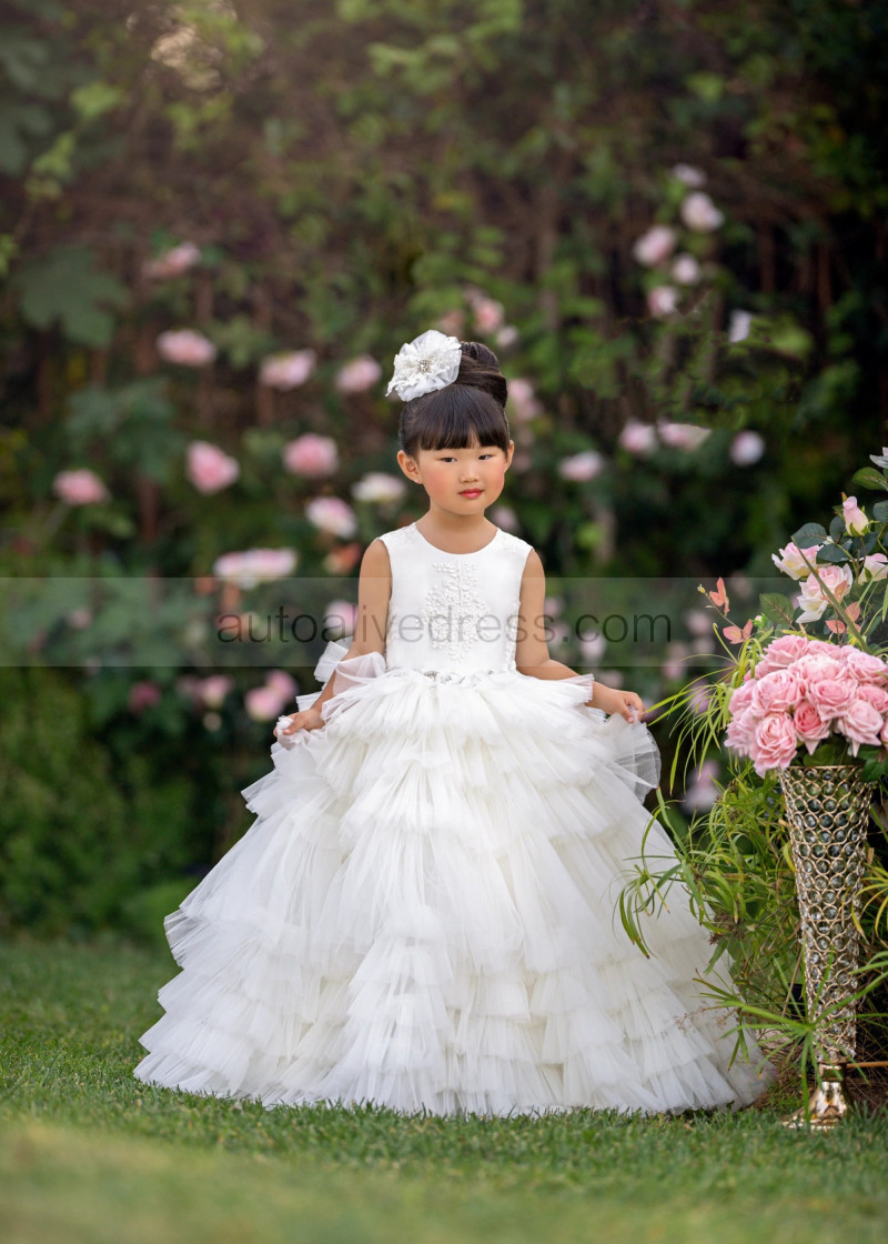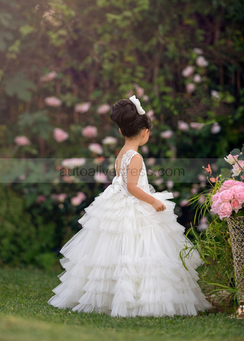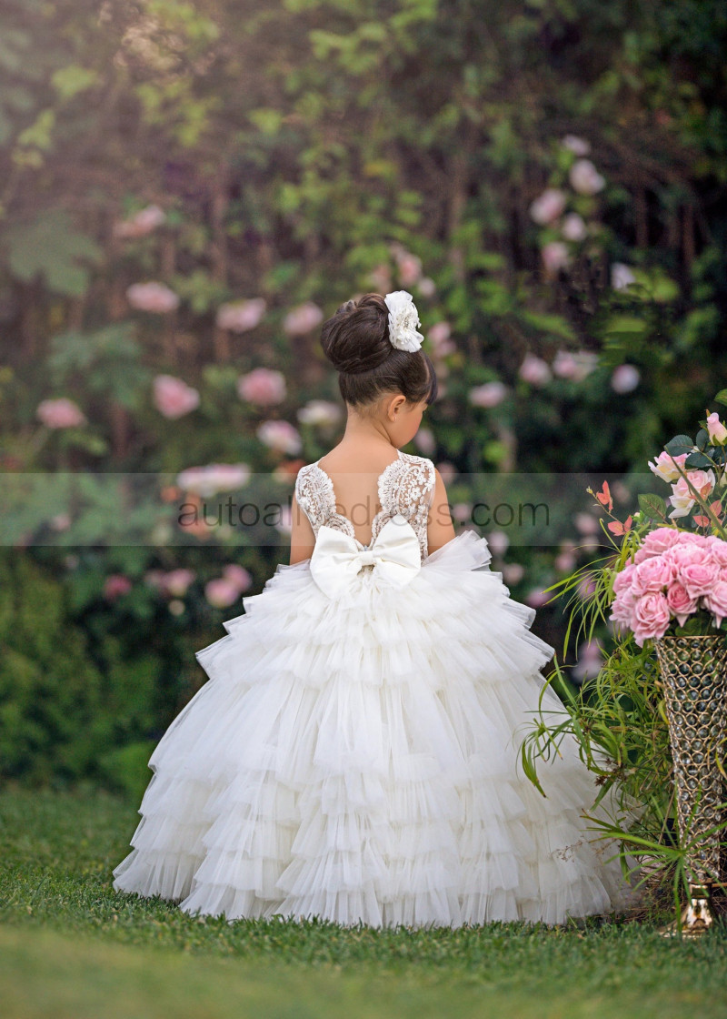 Ivory Lace Ruffled Tulle Floor Length Flower Girl Dress