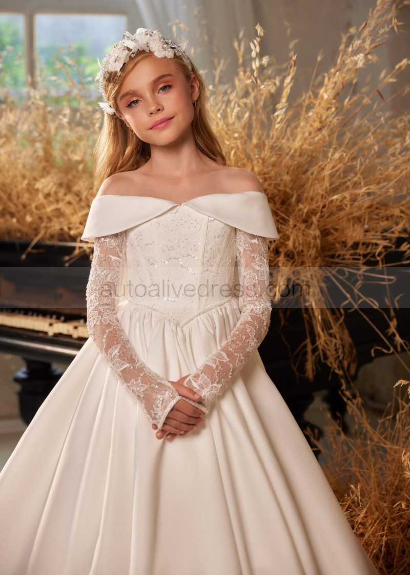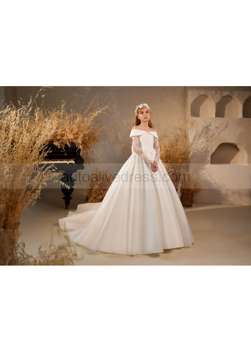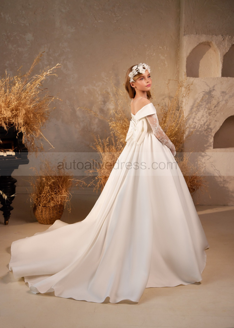 Ivory Lace Satin Keyhole Back Flower Girl Dress With Oversized Bow