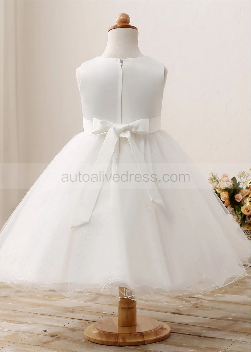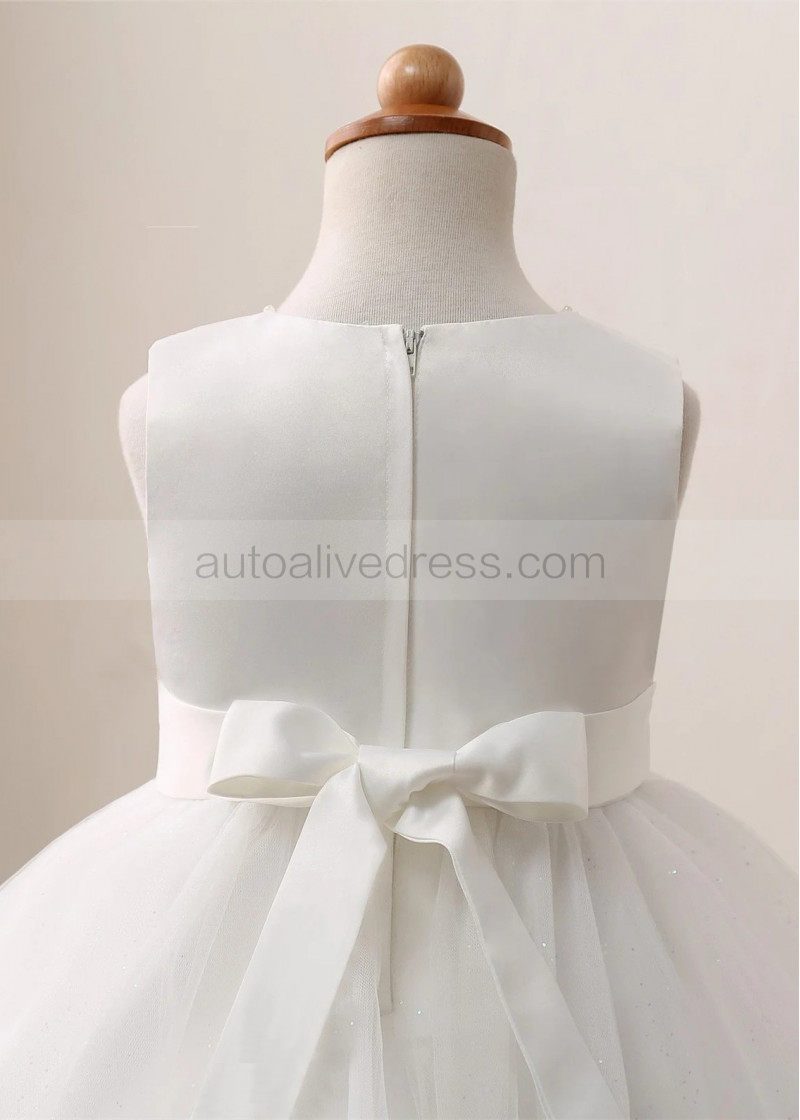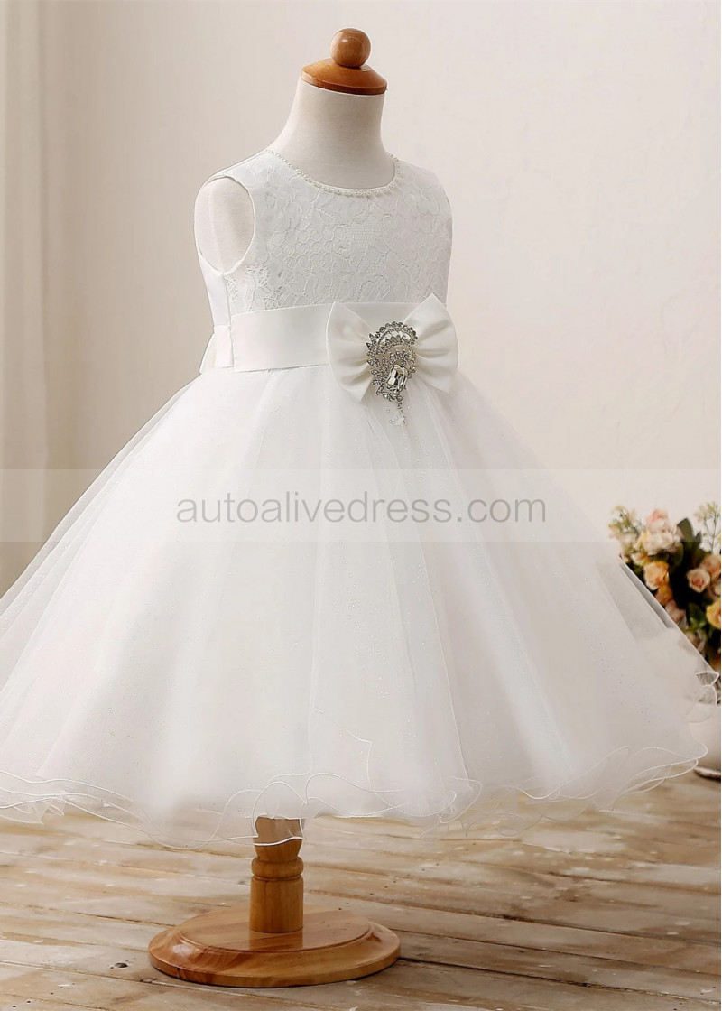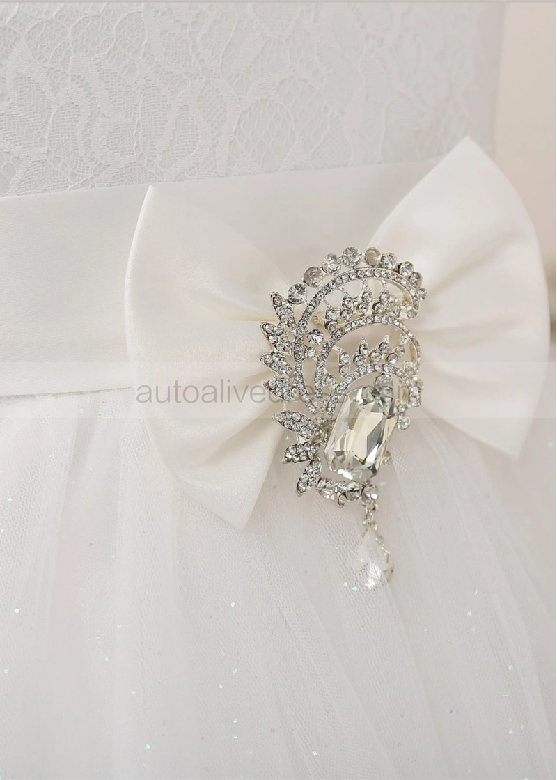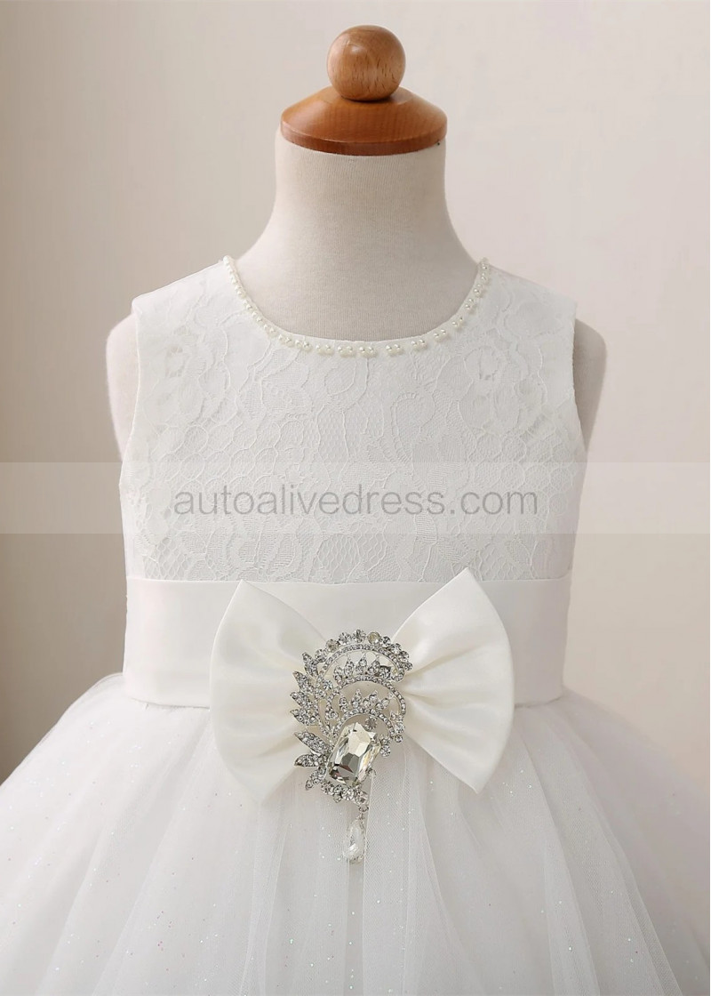 Ivory Lace Sparkly Tulle Flower Girl Dress With Crystal Pin