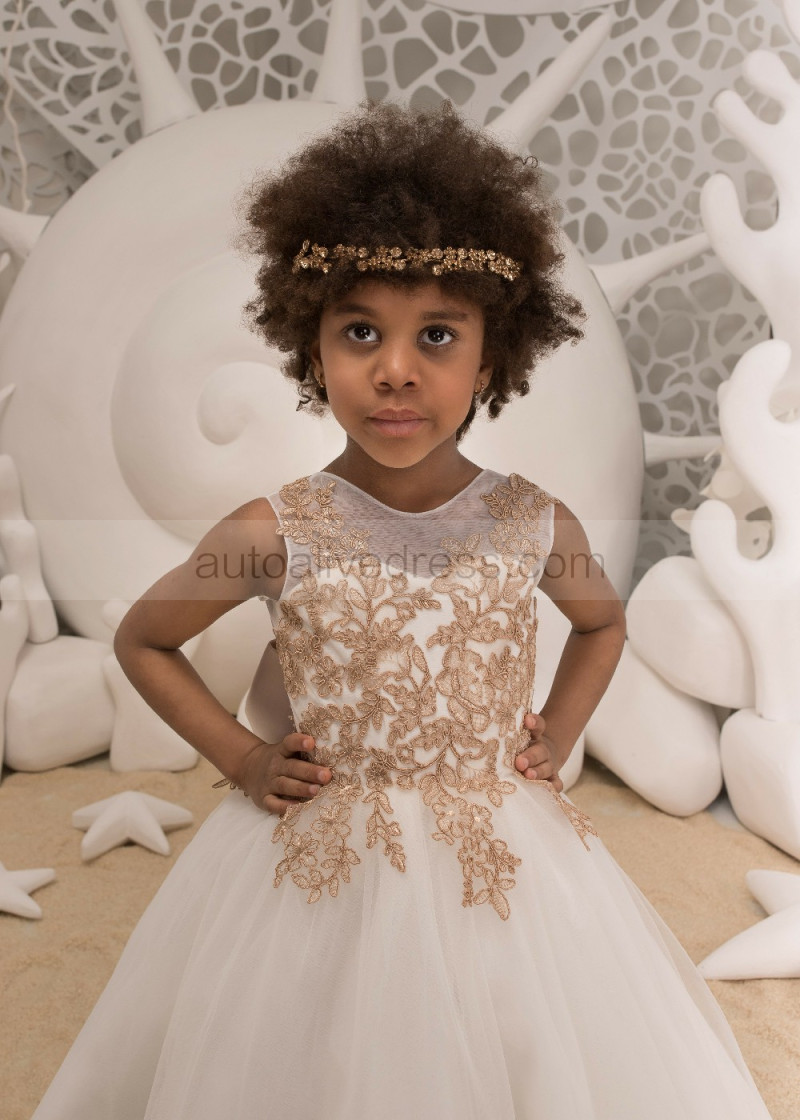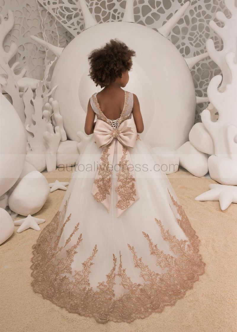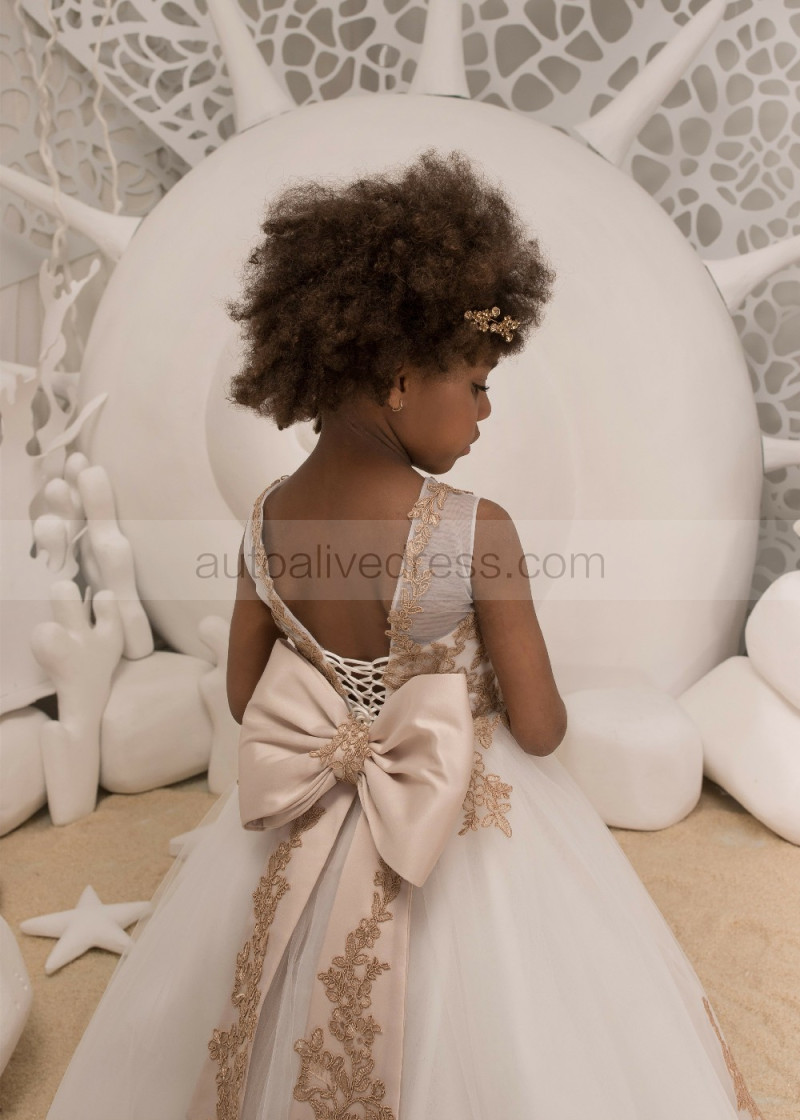 Ivory Lace Tulle Corset Back With Bow Flower Girl Dress