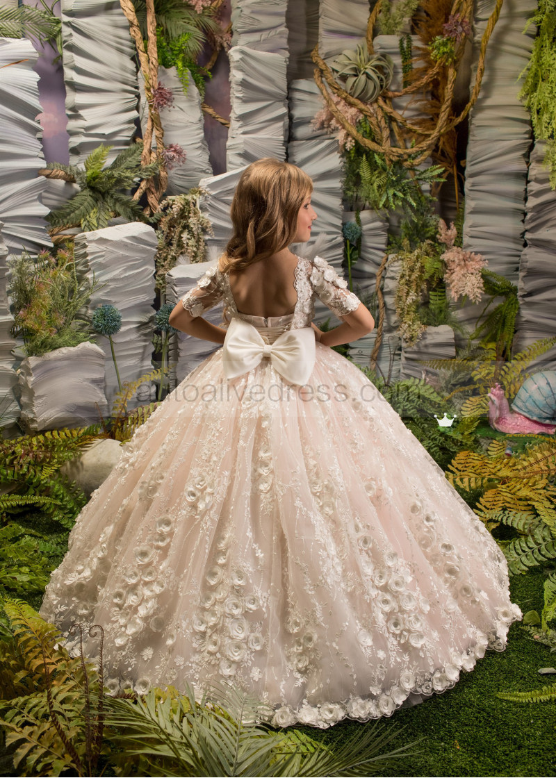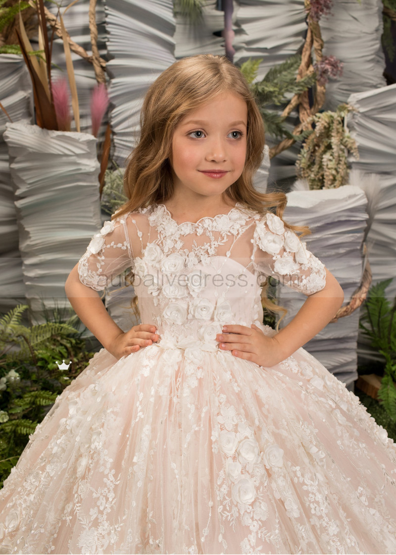 Ivory Lace Tulle Flower Girl Dress With Blush Pink Lining
