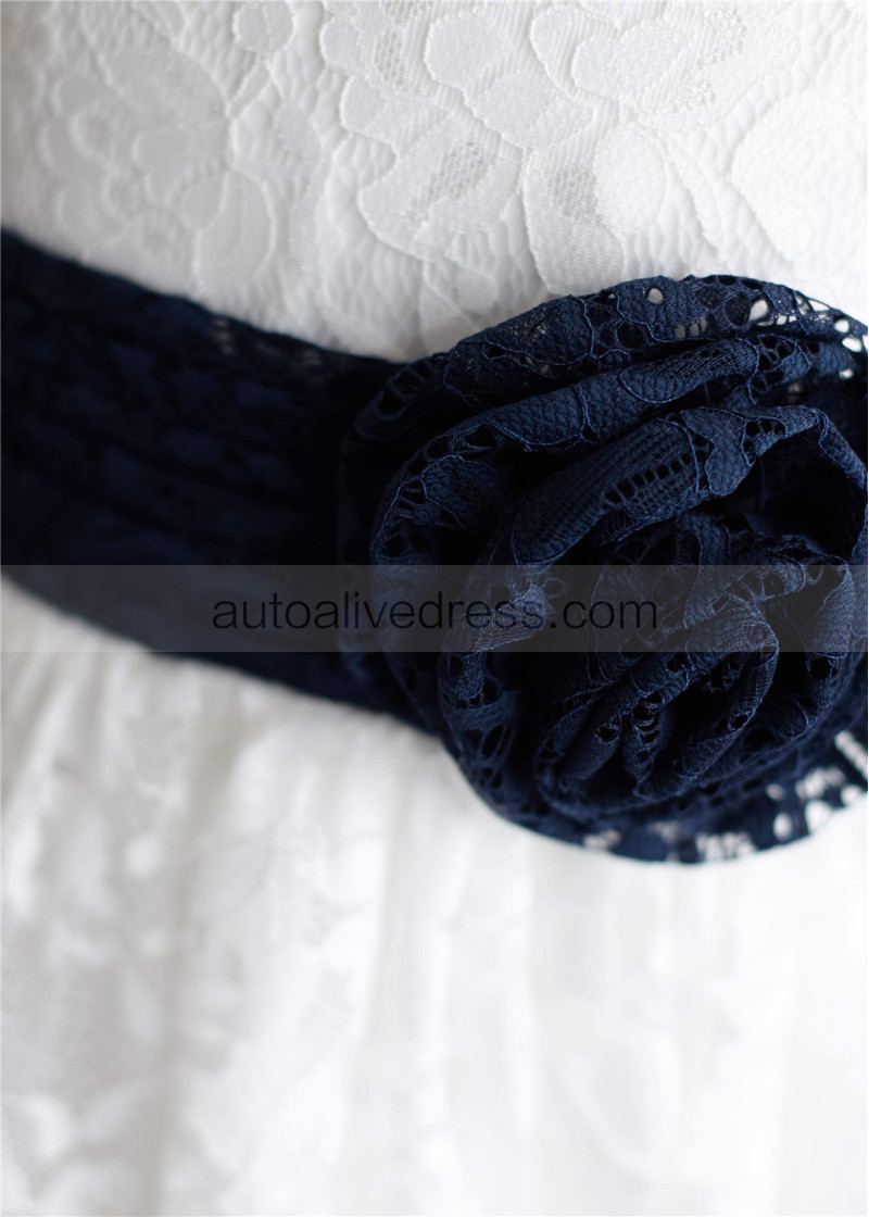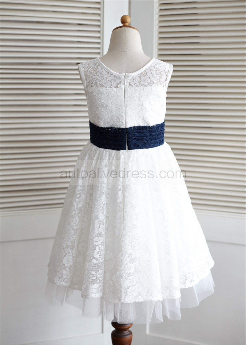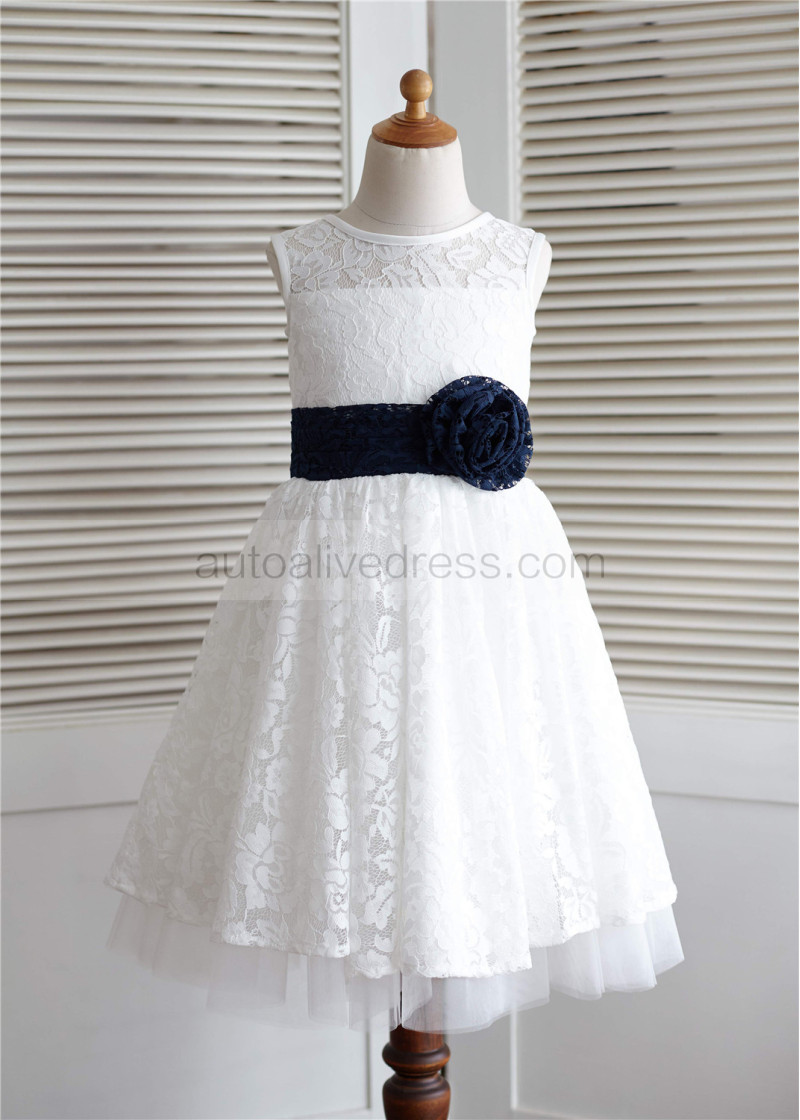 Ivory Lace Tulle Knee Length Flower Girl Dress
