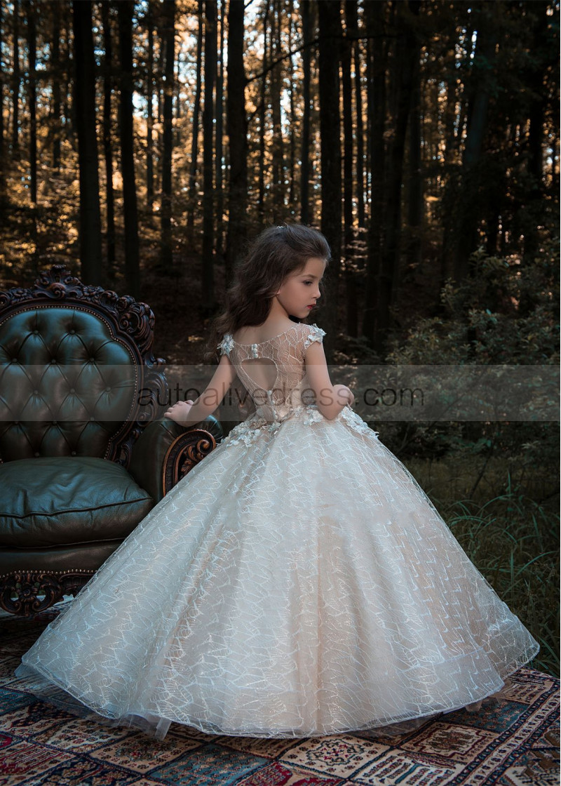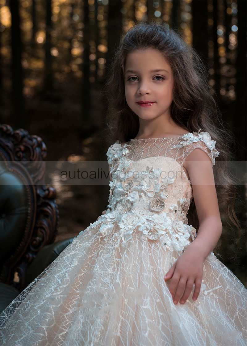 Ivory Lace Tulle Heart Back Floral Flower Girl Dress