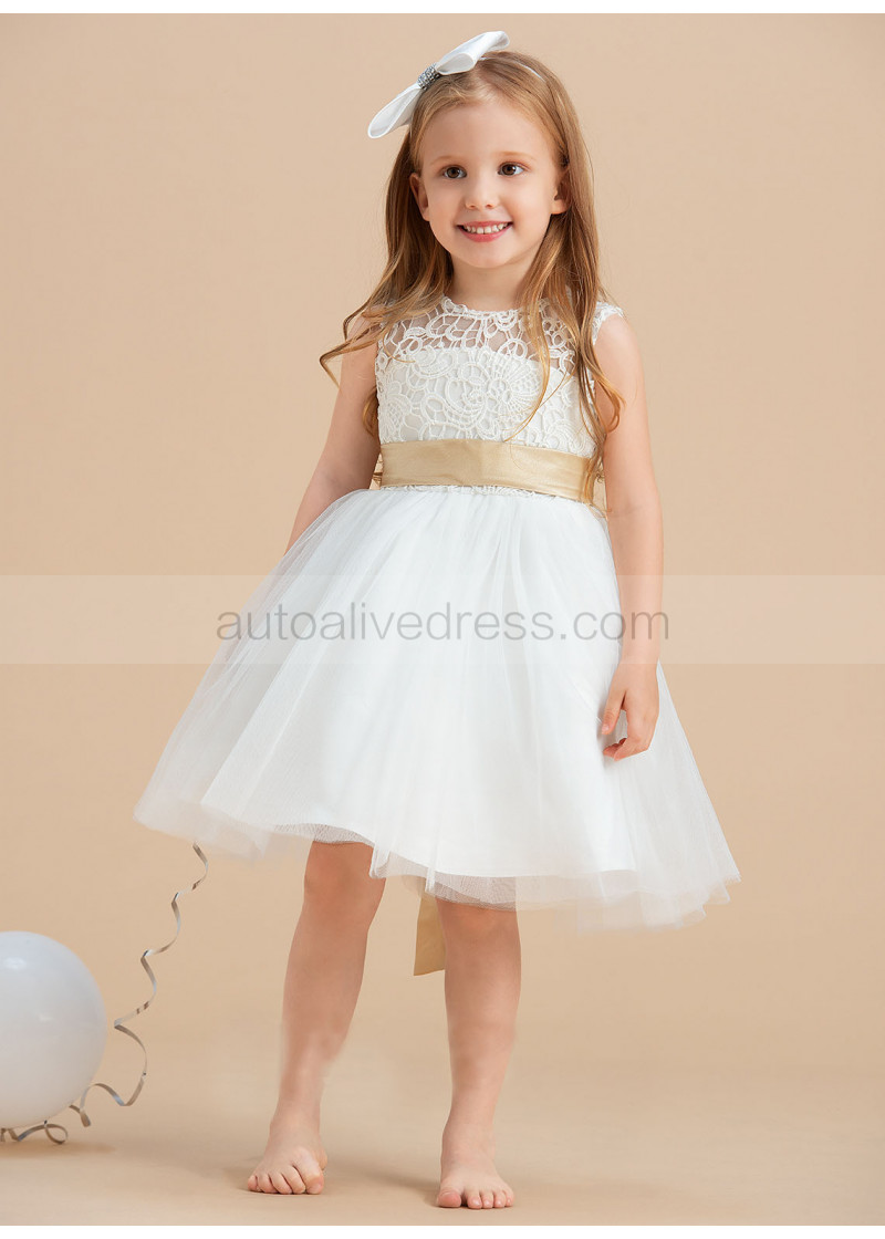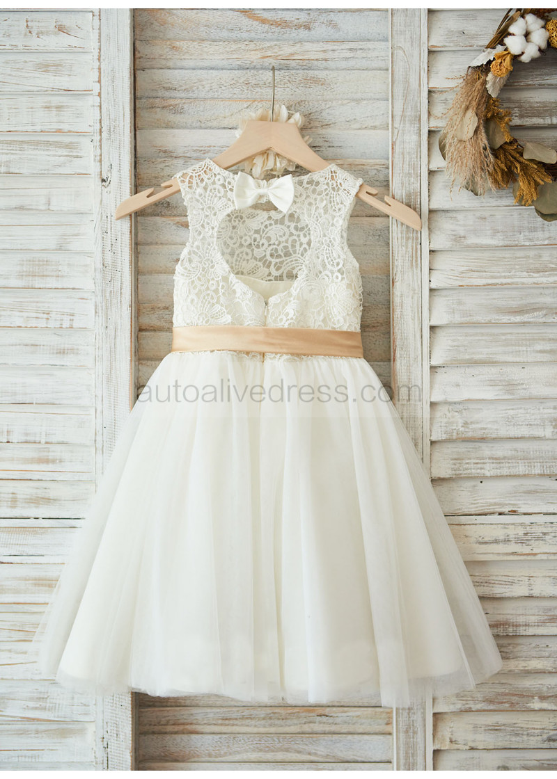 Ivory Lace Tulle Keyhole Back Cute Flower Girl Dress