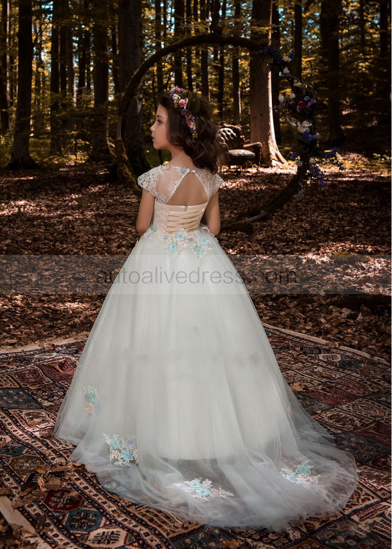 Ivory Lace Tulle Keyhole Back Elegant Flower Girl Dress