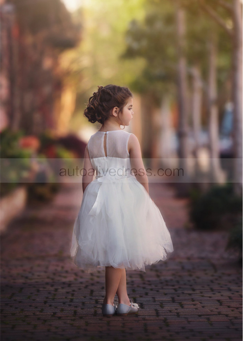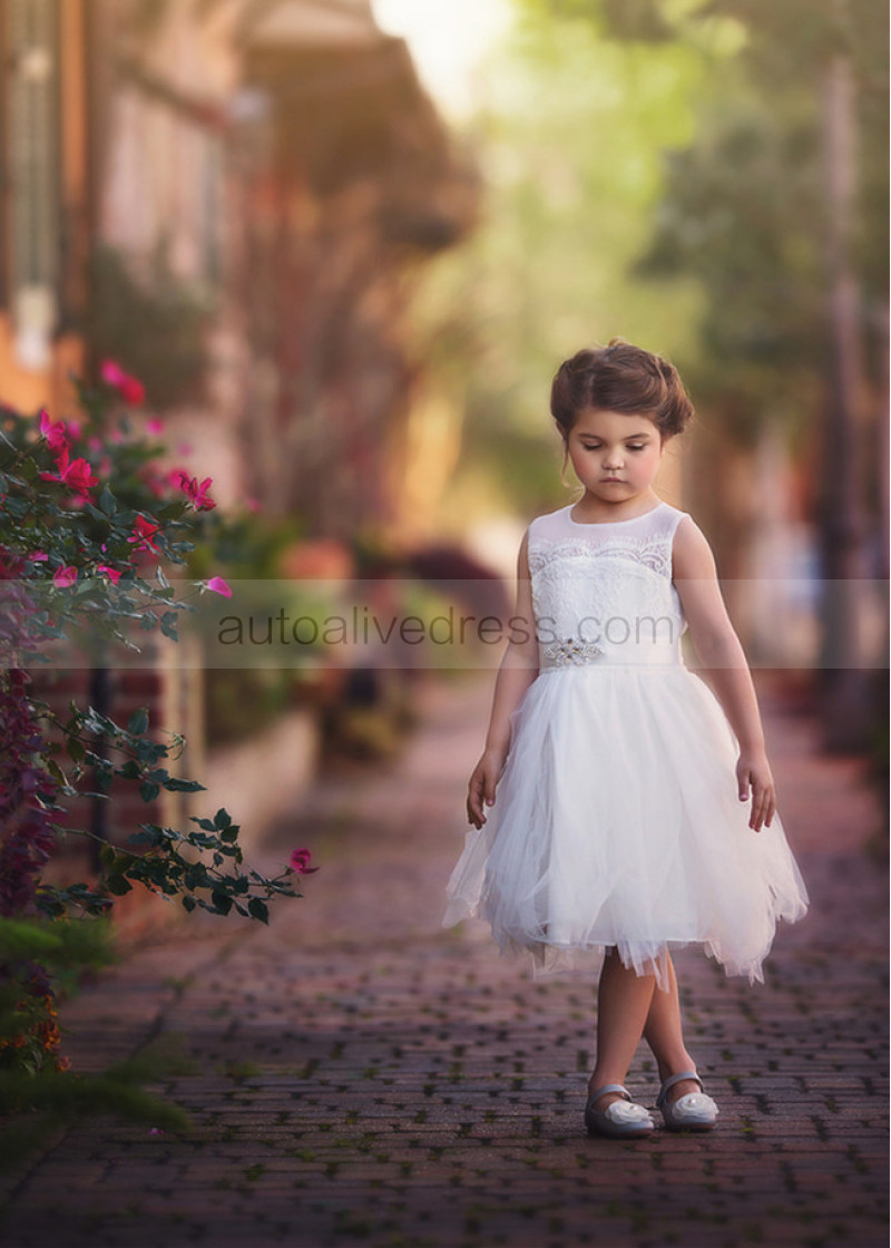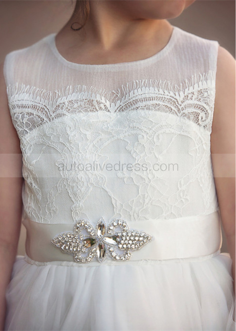 Ivory Lace Tulle Slit Back Flower Girl Dress