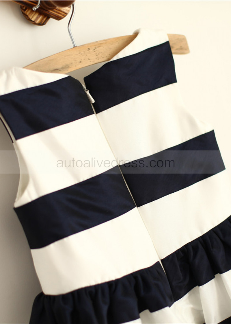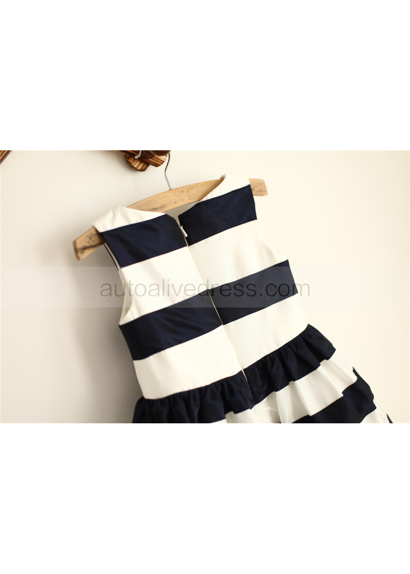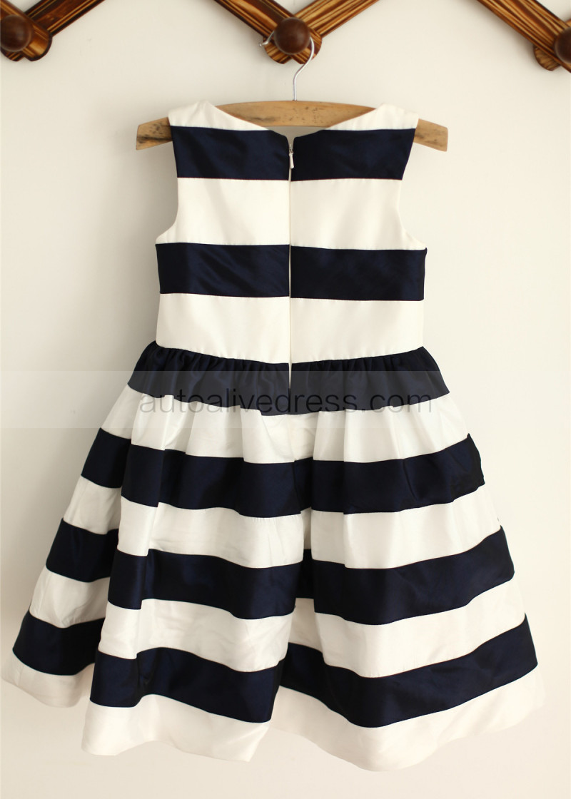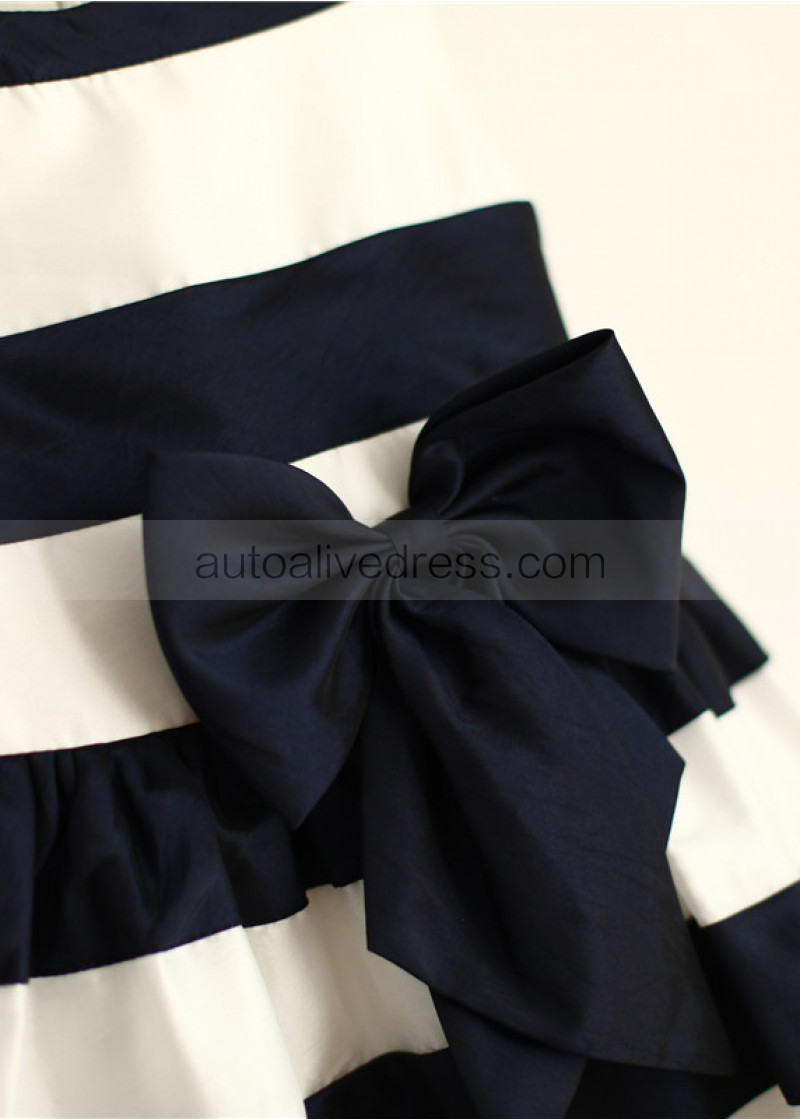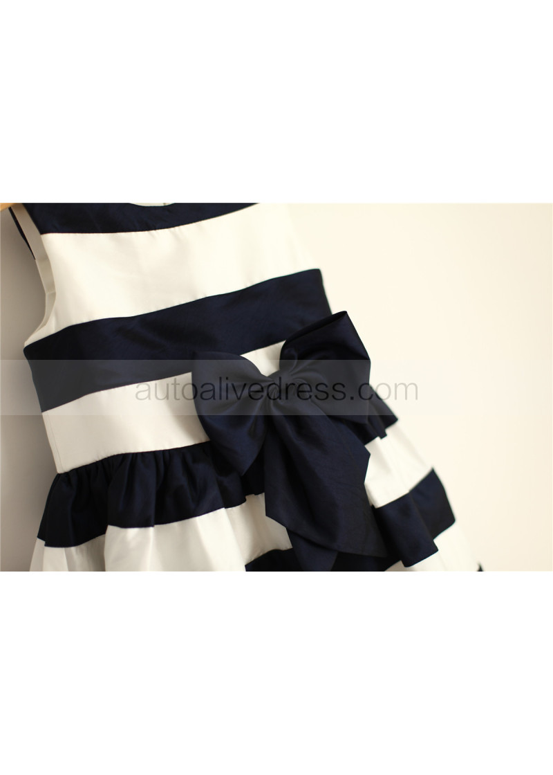 Ivory Navy Blue Stripes Taffeta Flower Girl Dress
