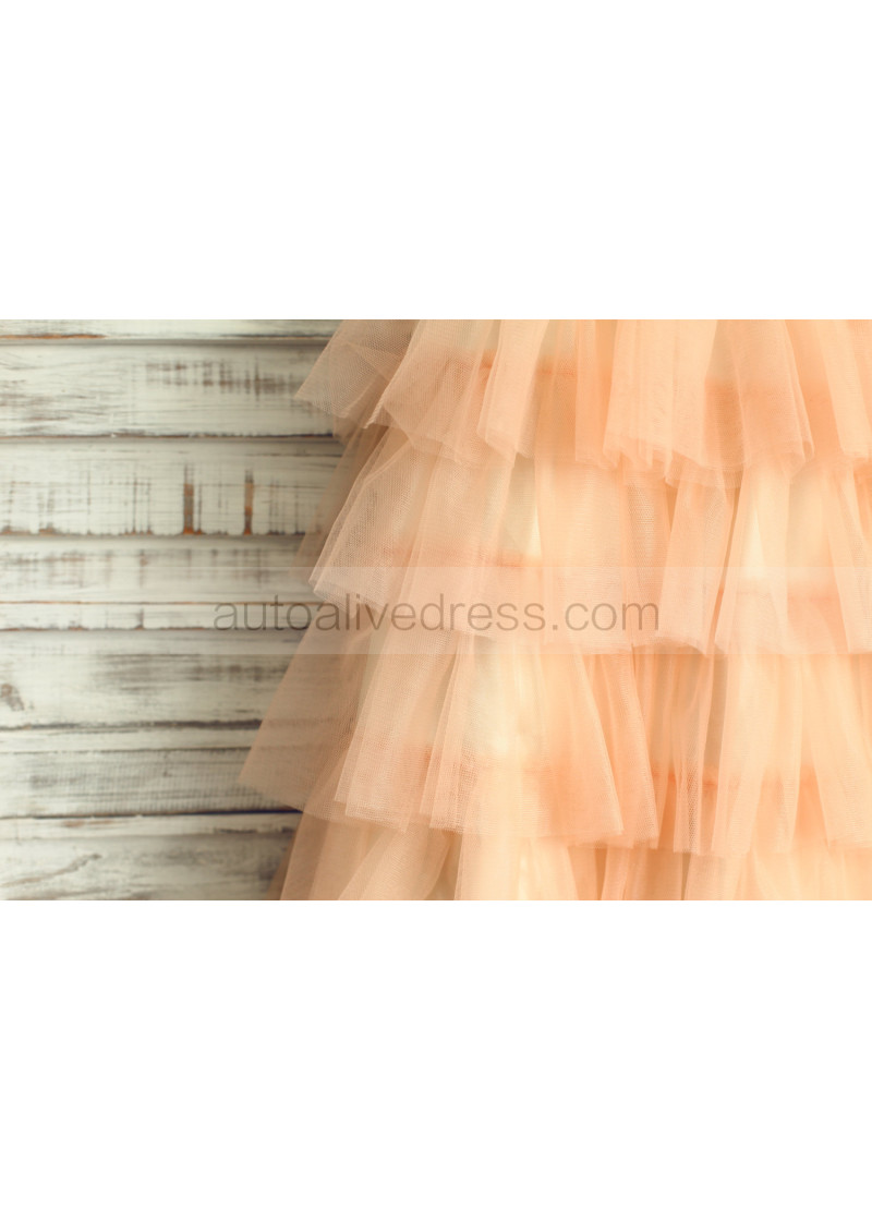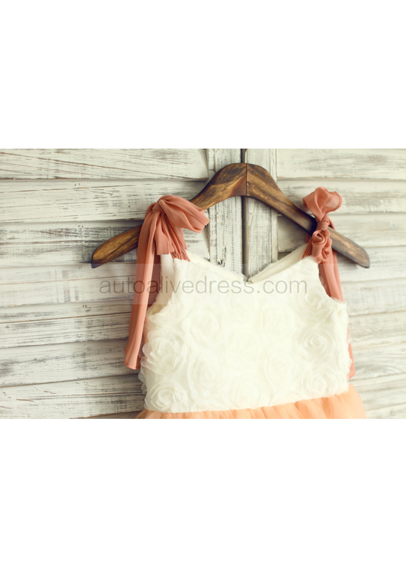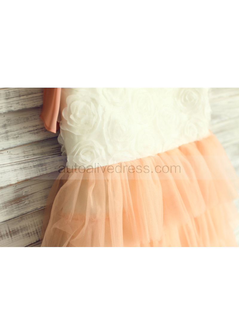 Ivory Rosette Champagne Tulle Cupcake Flower Girl Dress