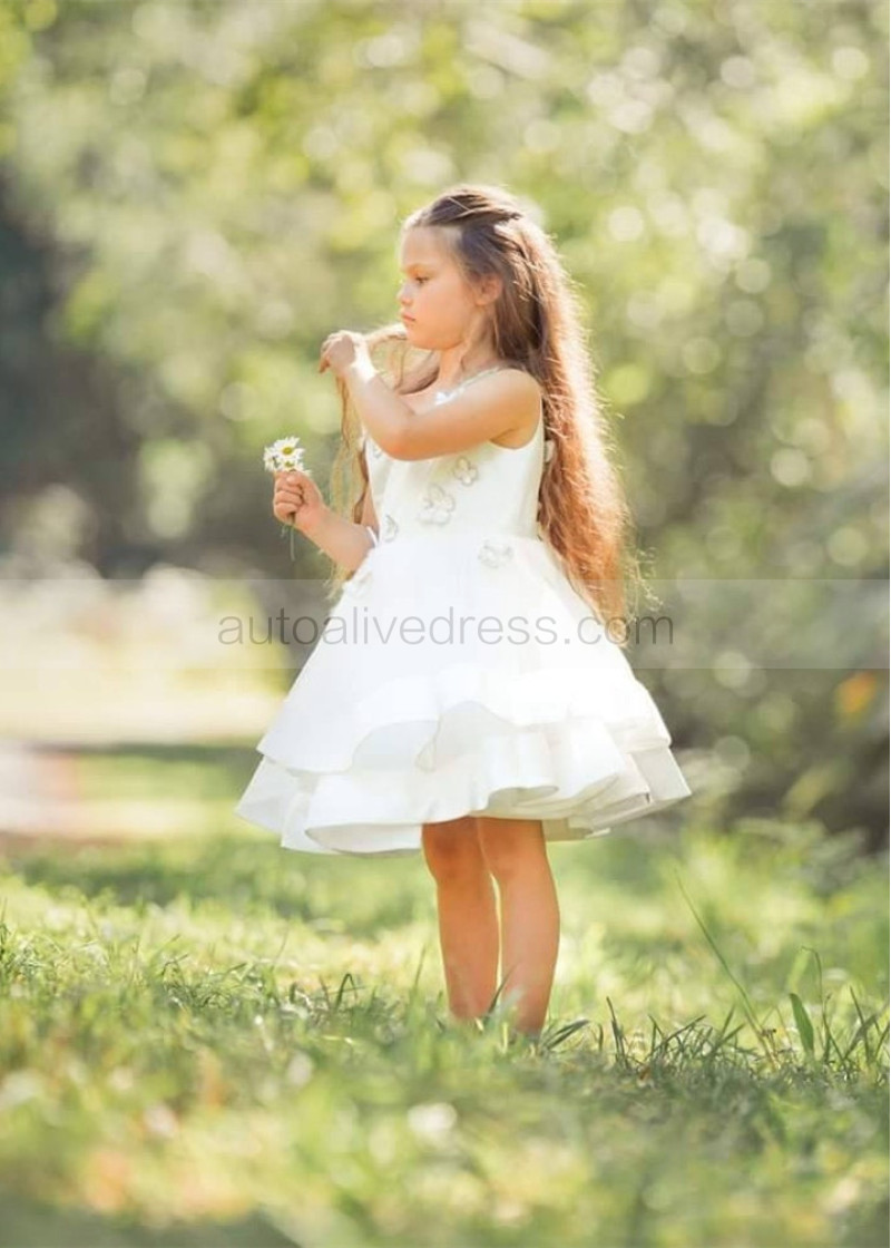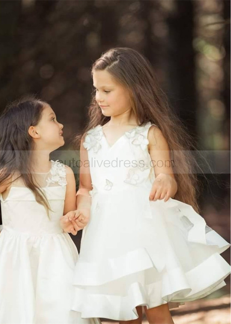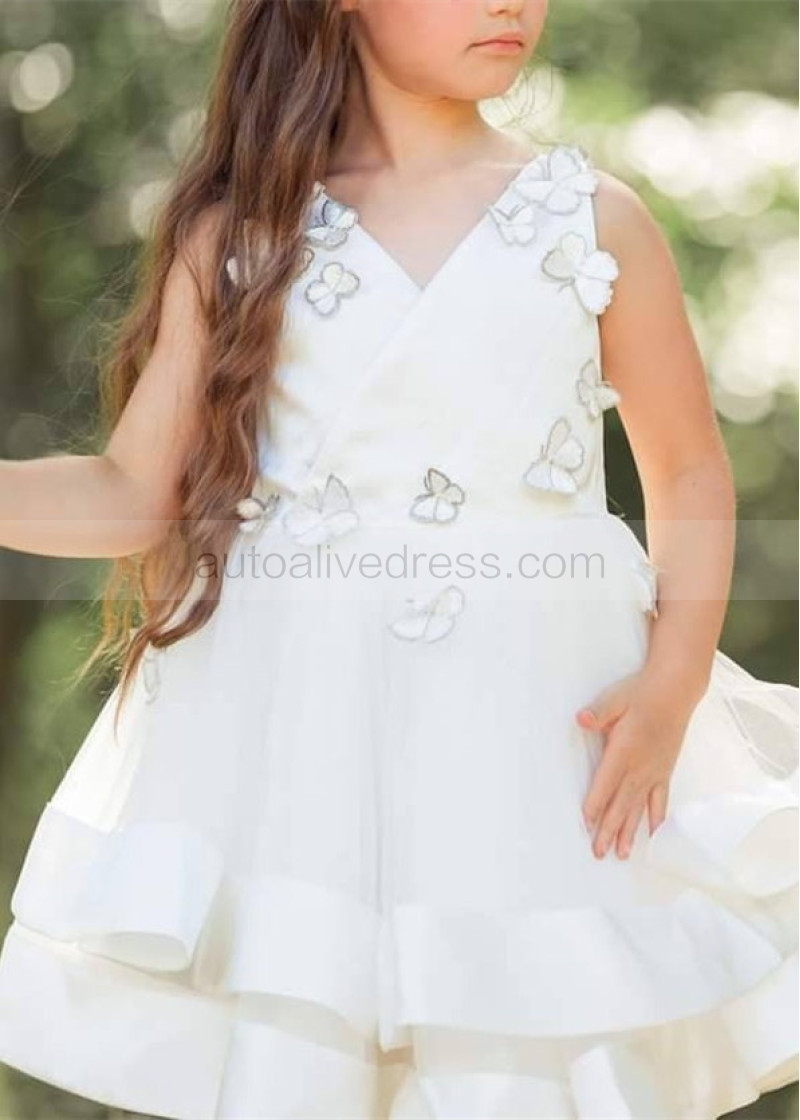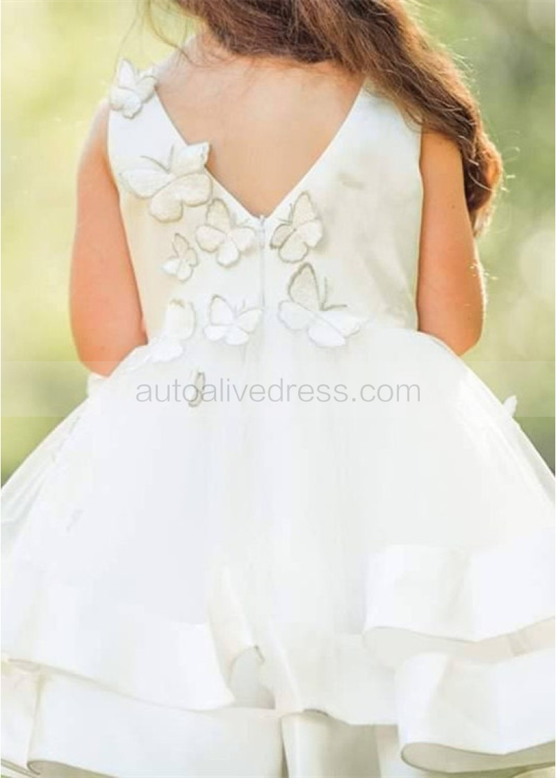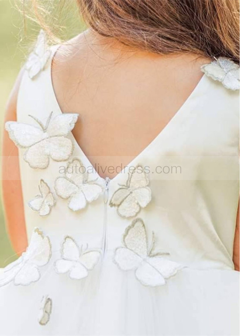 Ivory Satin Tulle 3D Butterflies Flower Girl Dress