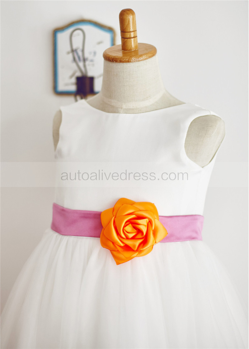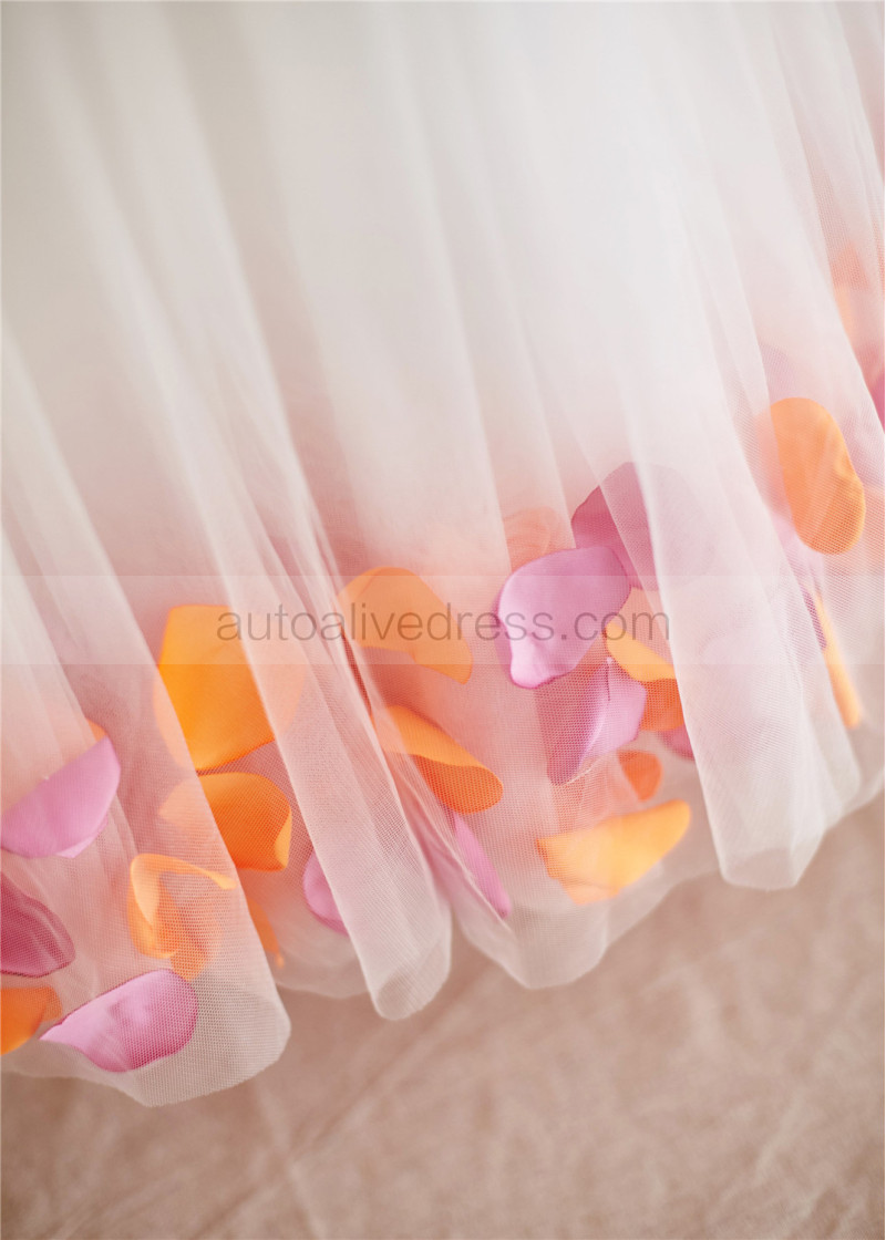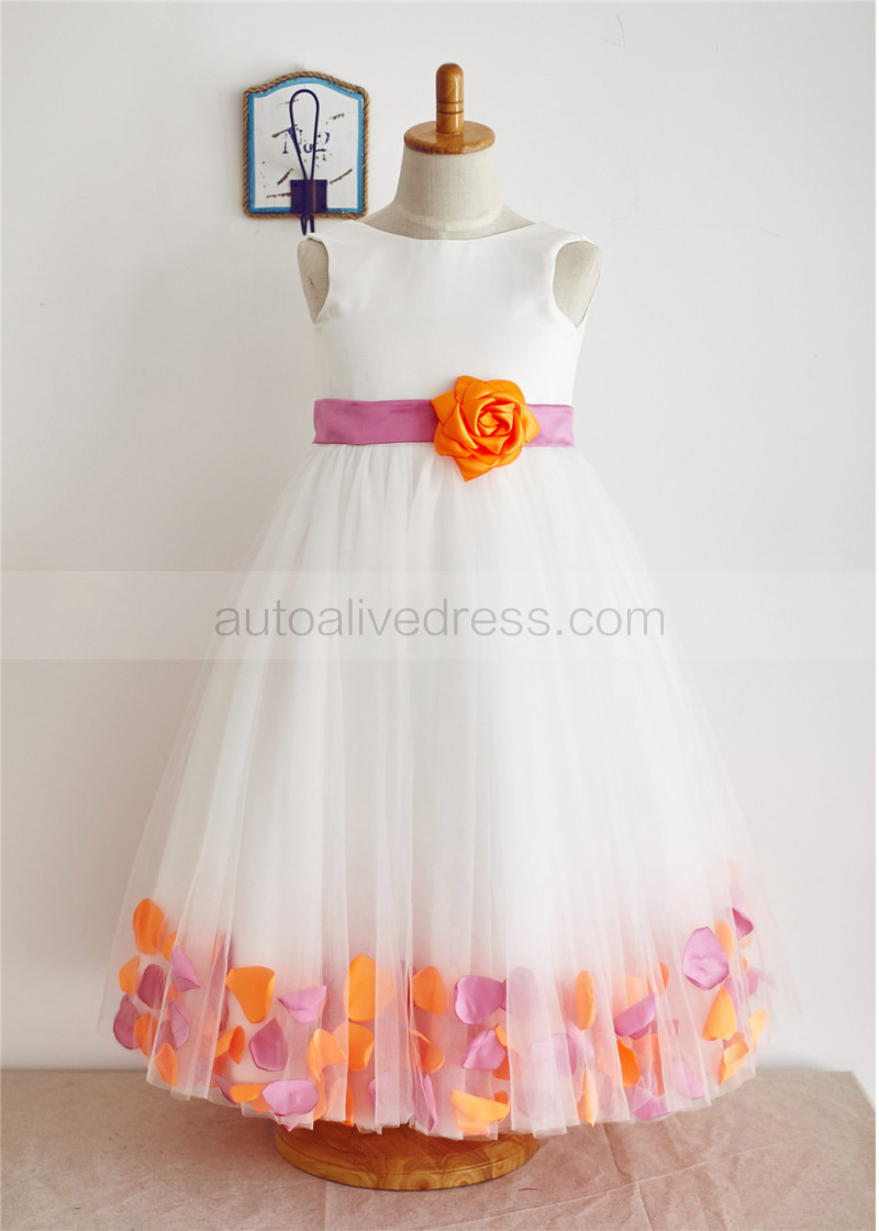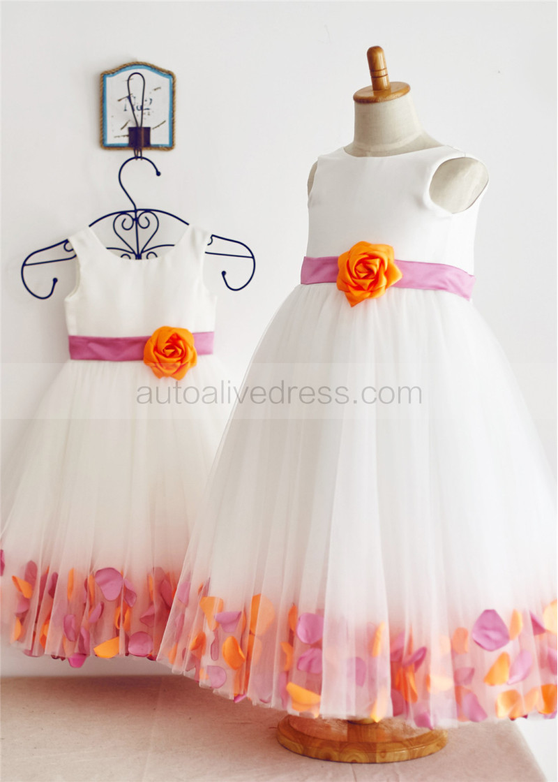 Ivory Satin Tulle Flower Girl Dress With Flower Petals