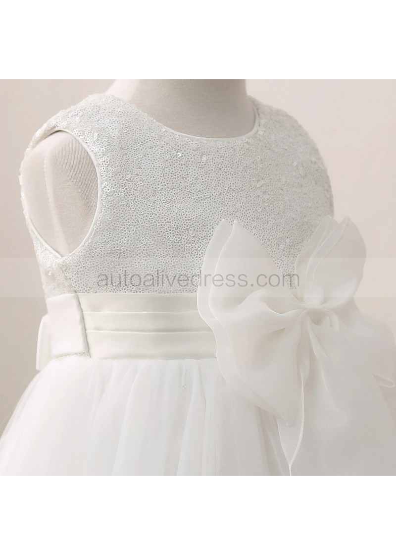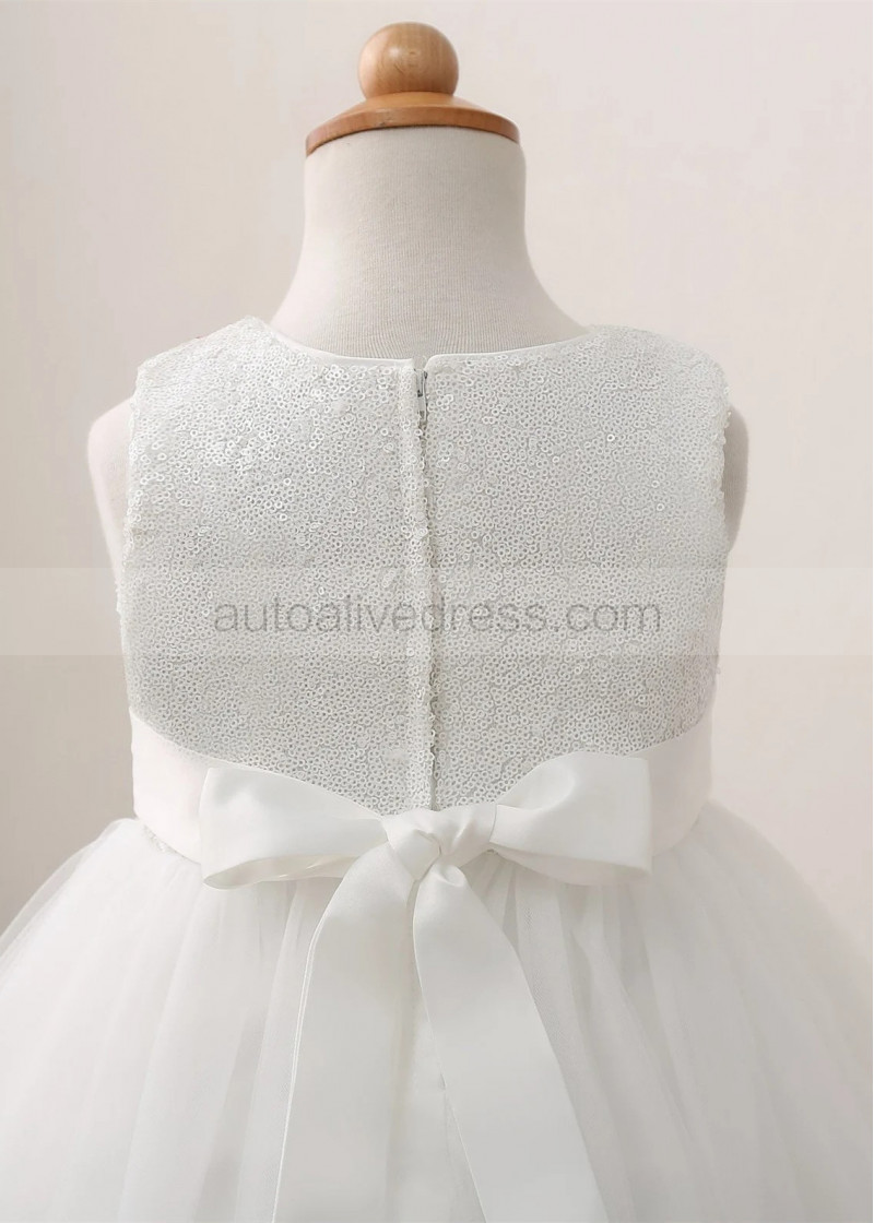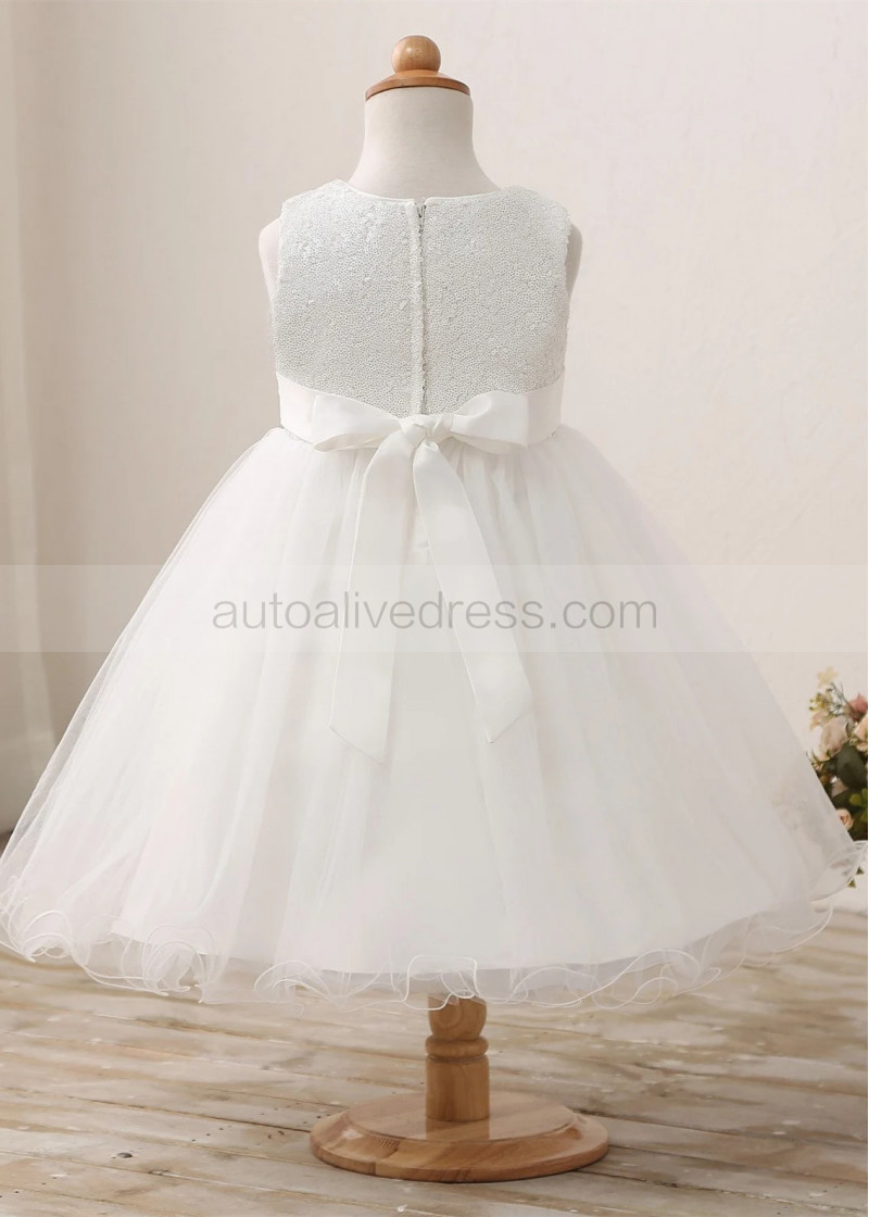 Ivory Sequin Tulle Flower Girl Dress With Double Bow