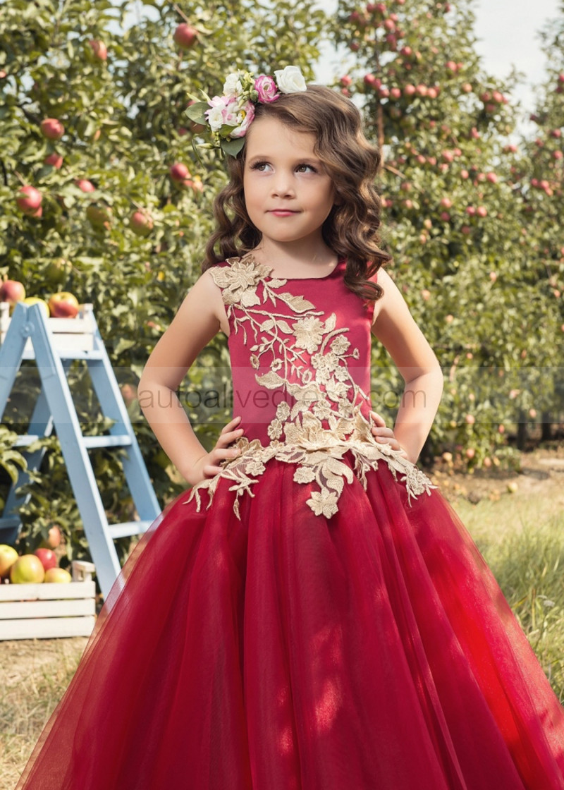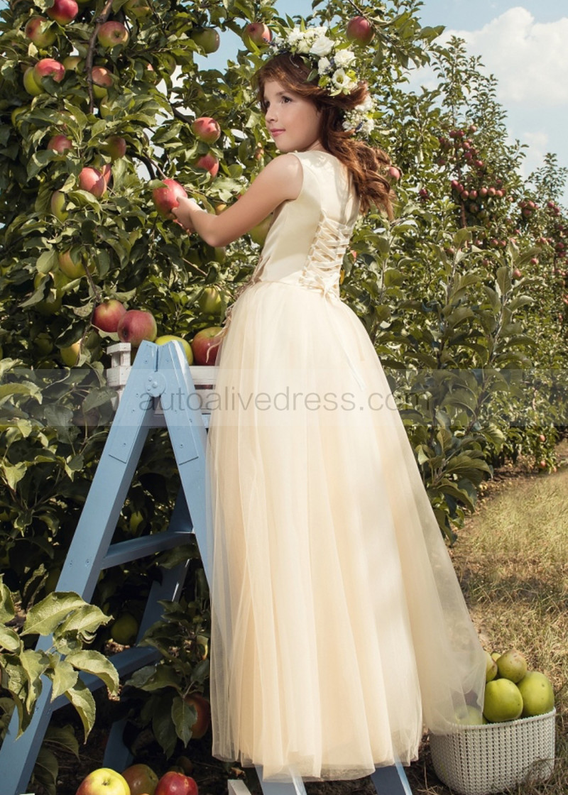 Lace Appliques Tulle Lace-up Back Pretty Flower Girl Dress