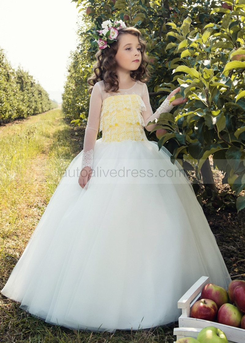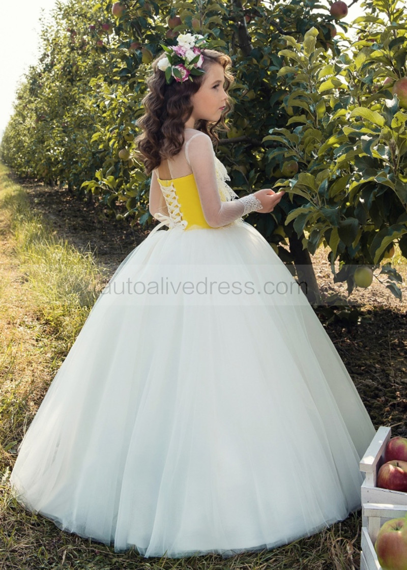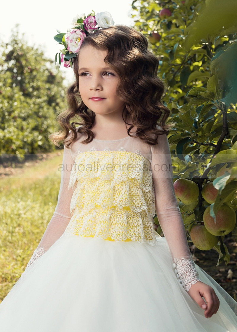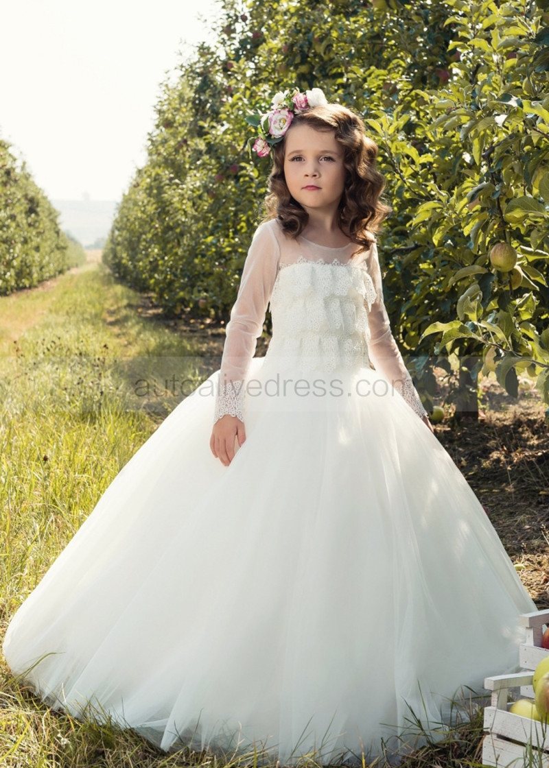 Lace Flounce Tulle Keyhole Back Sweet Flower Girl Dress
