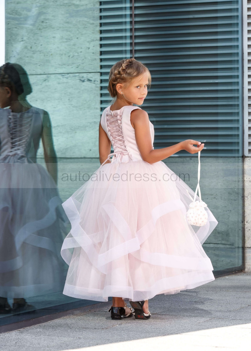 Light Pink Ruffle Tulle Horsehair Trim Sweet Flower Girl Dress