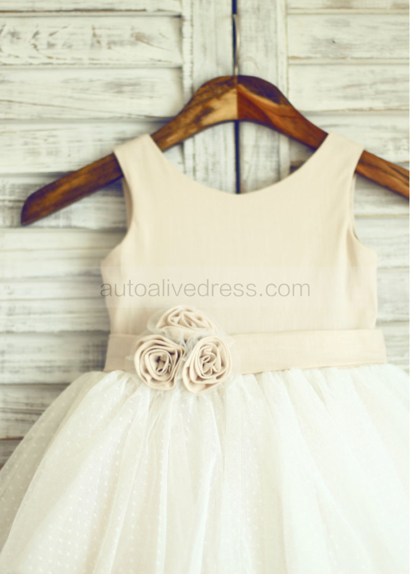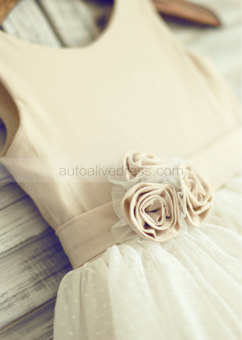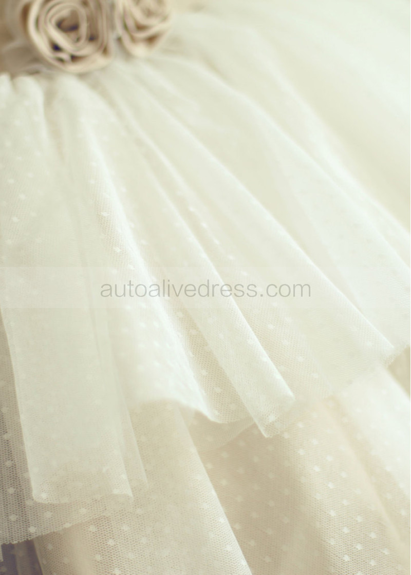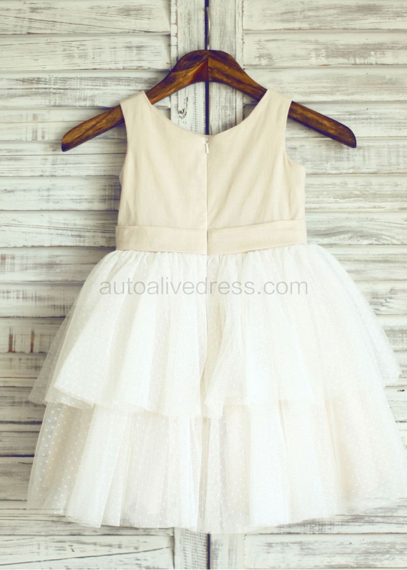 Linen Polka Dots Tulle Cupcake Flower Girl Dress