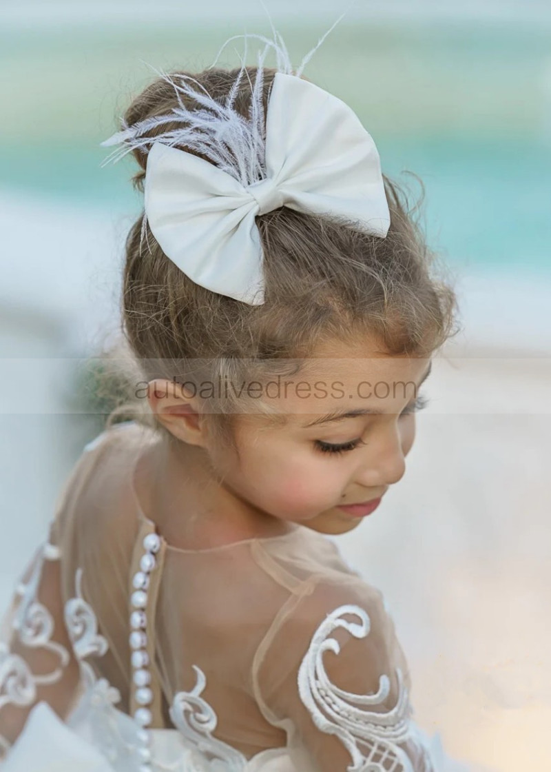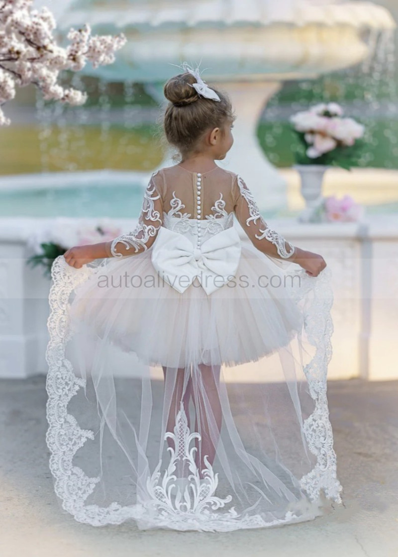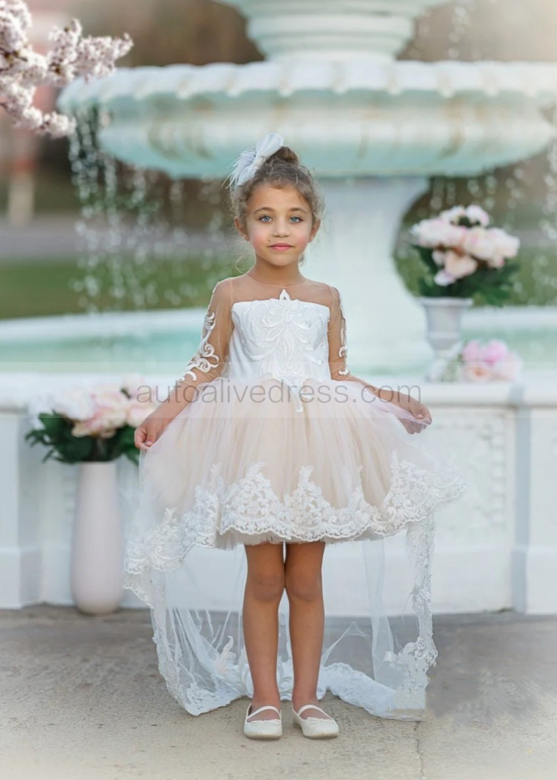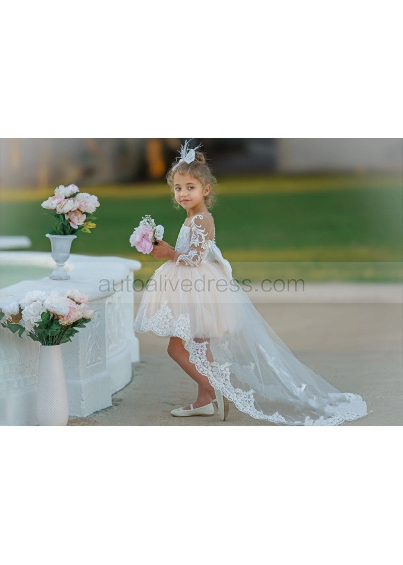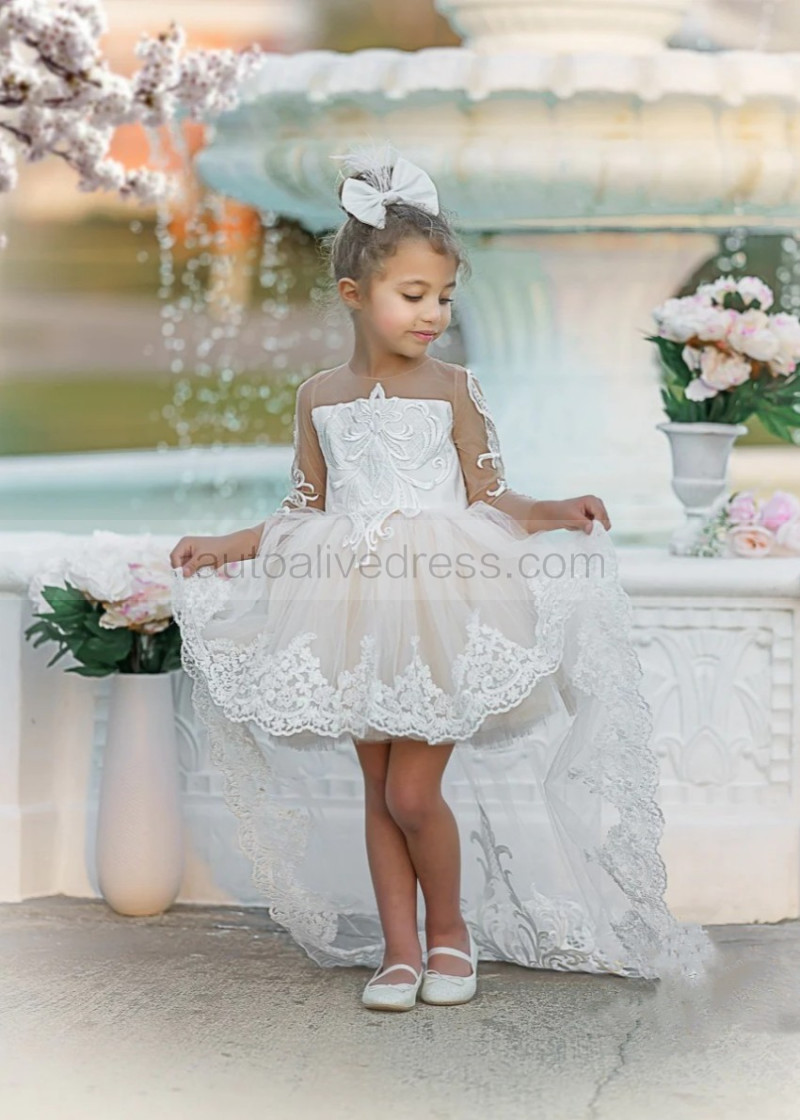 Long Sleeves Embroidered Lace Tulle High Low Flower Girl Dress