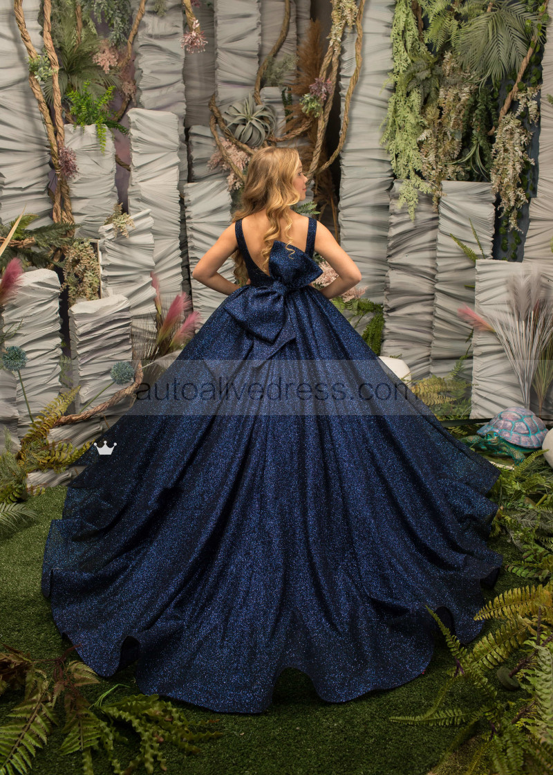 Navy Blue Sequin Sparkle Floor Length Flower Girl Dress