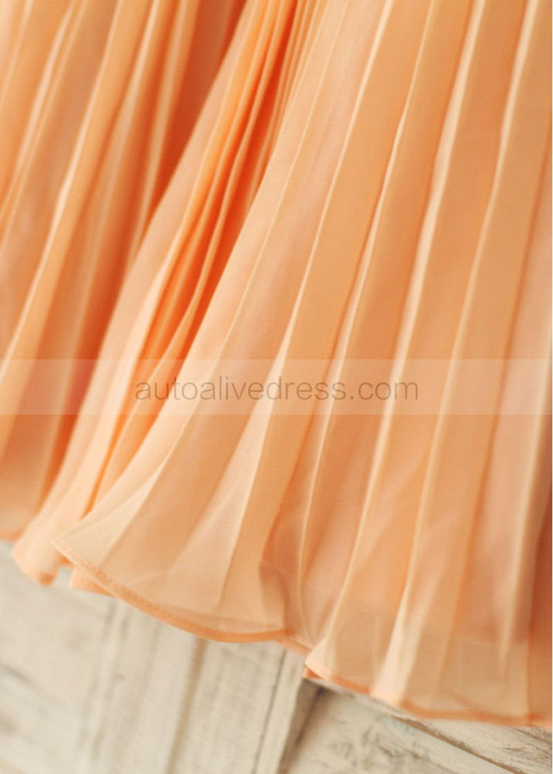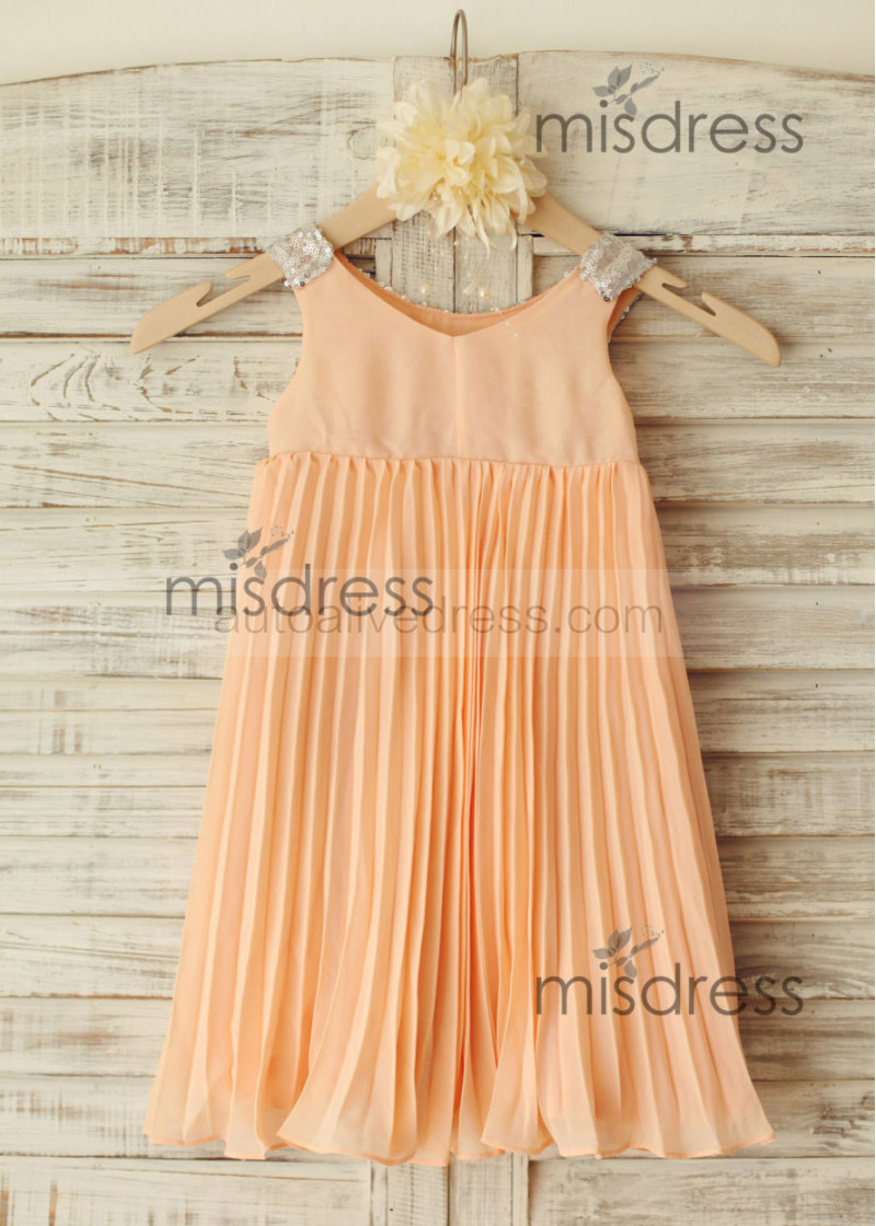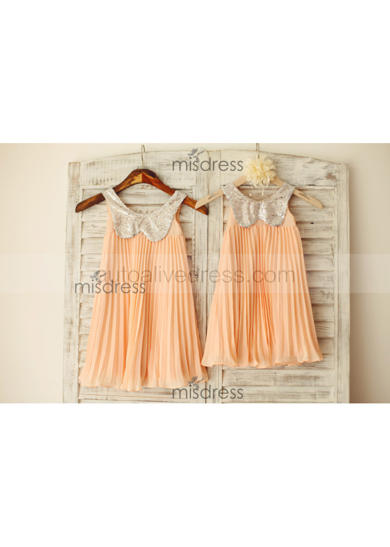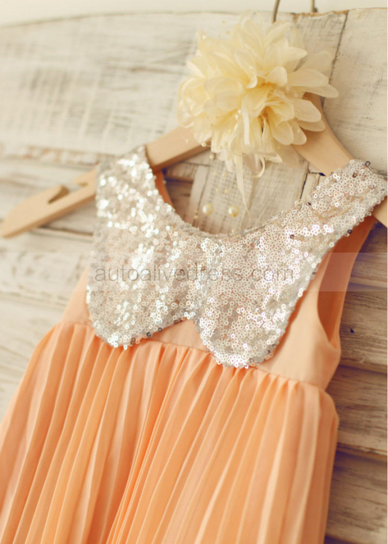 Peter Pan Champagne Sequin Collar Peach Pleated Chiffon Flower Girl Dress