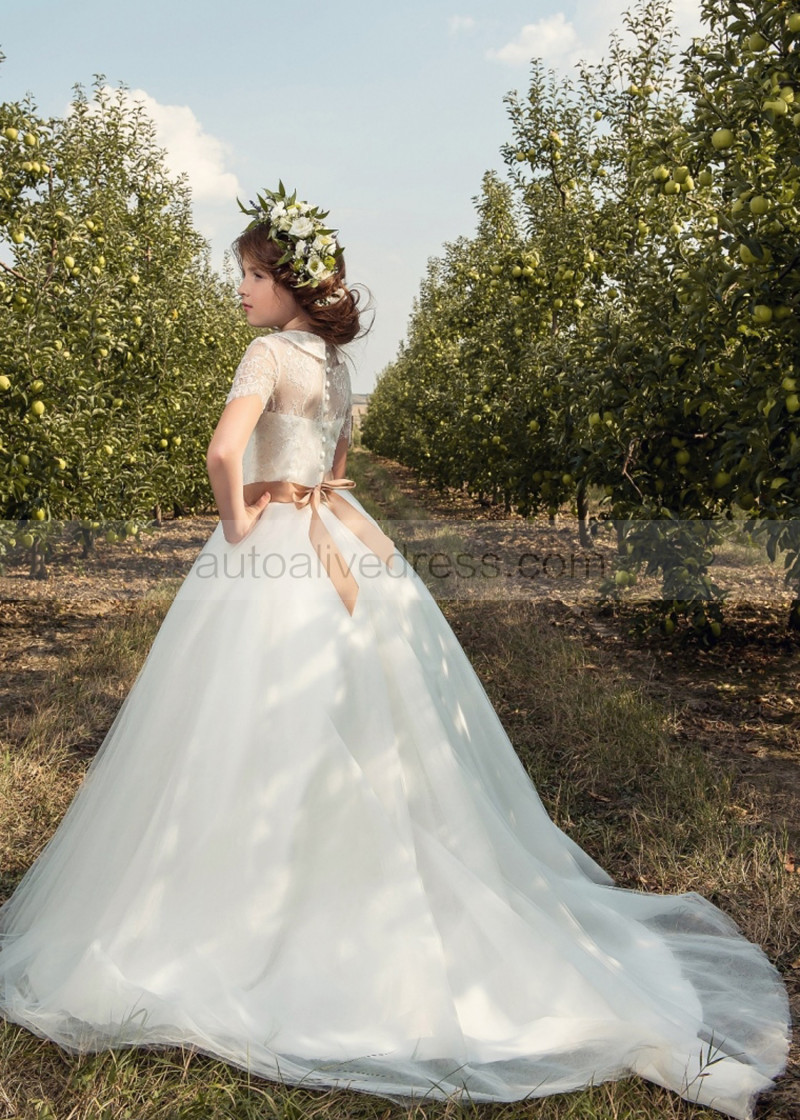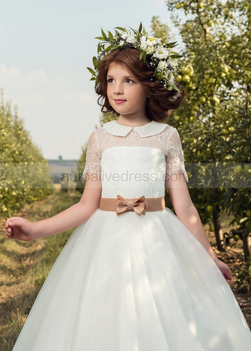 Peter Pan Collar Ivory Lace Tulle Floor Length Flower Girl Dress