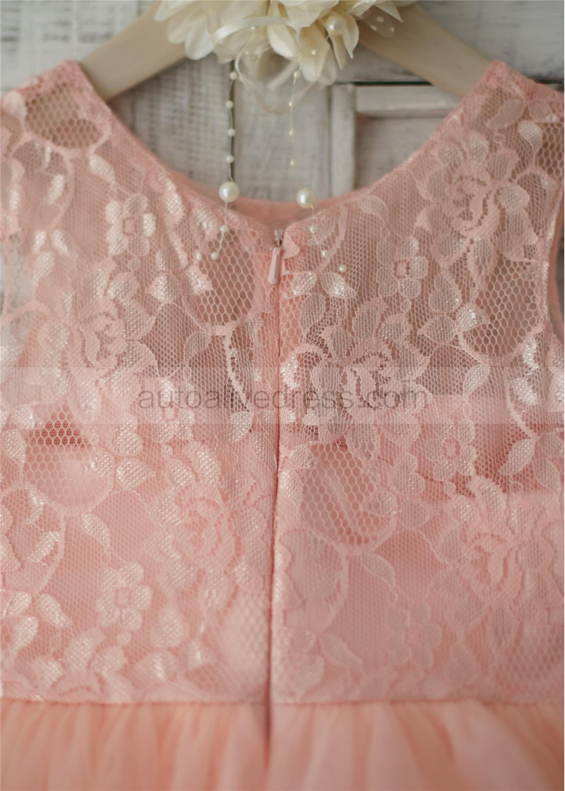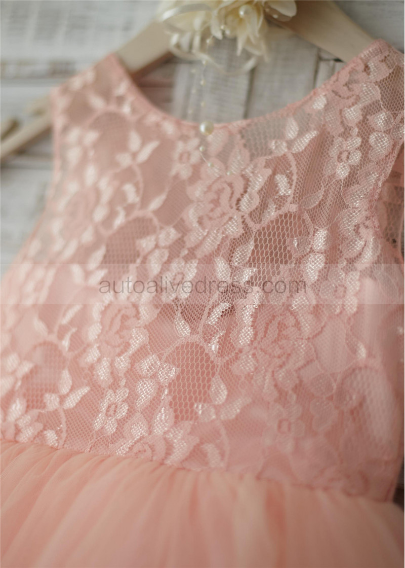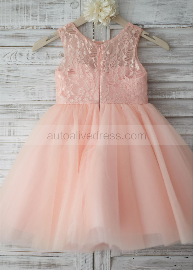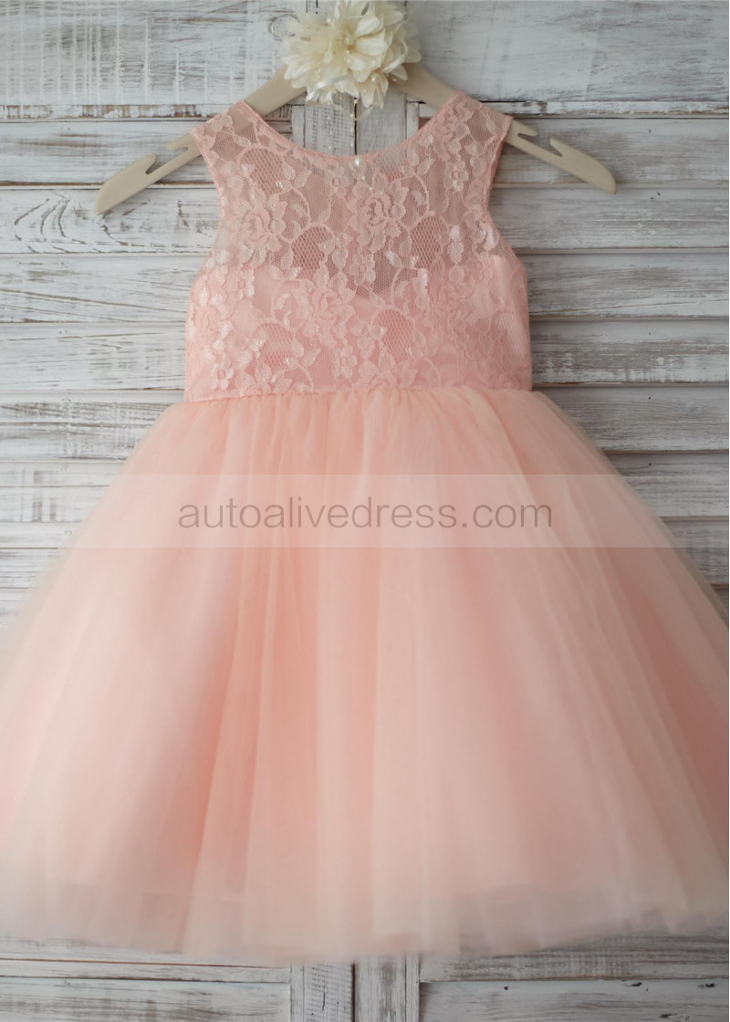 Pink Lace Tulle Knee Length Classic Flower Girl Dress