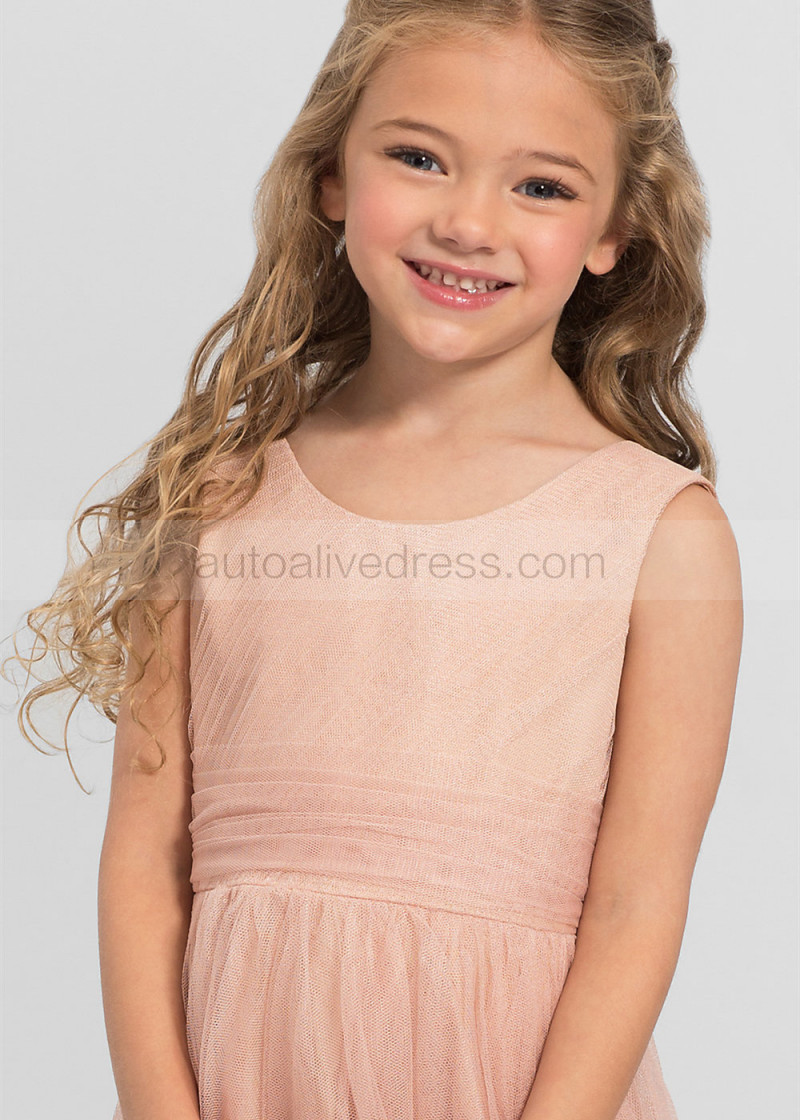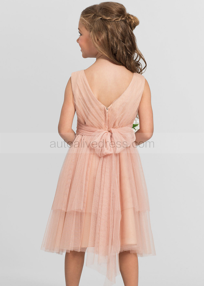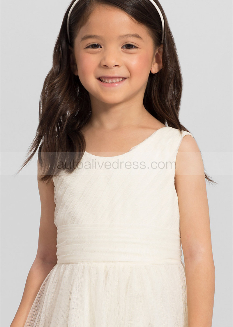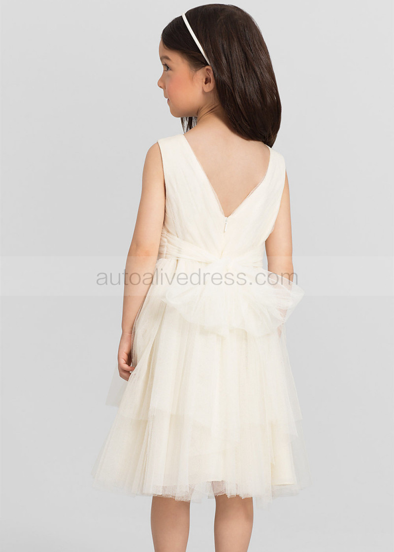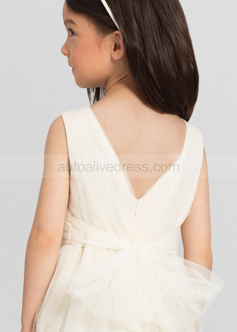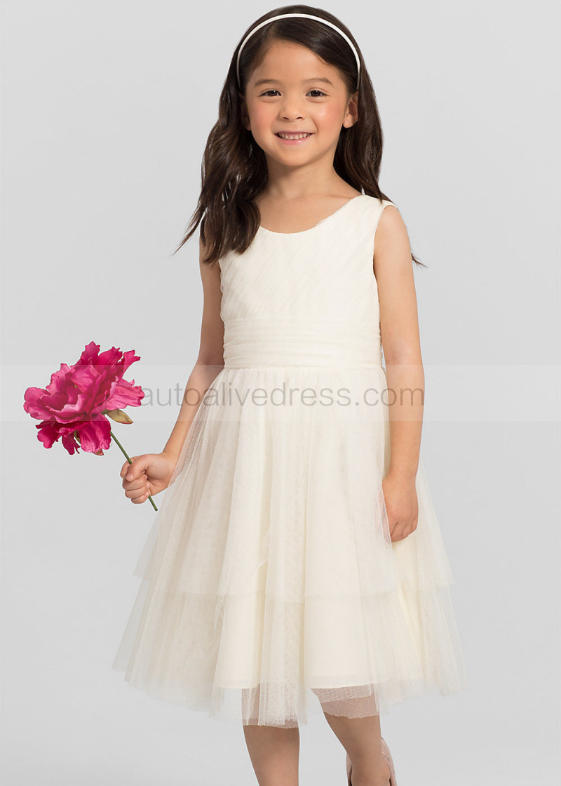 Pleated Tulle Tea Length Tiered Skirt Flower Girl Dress
