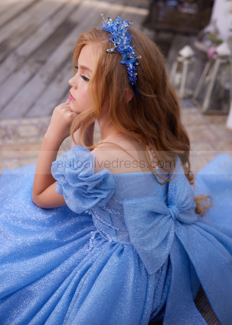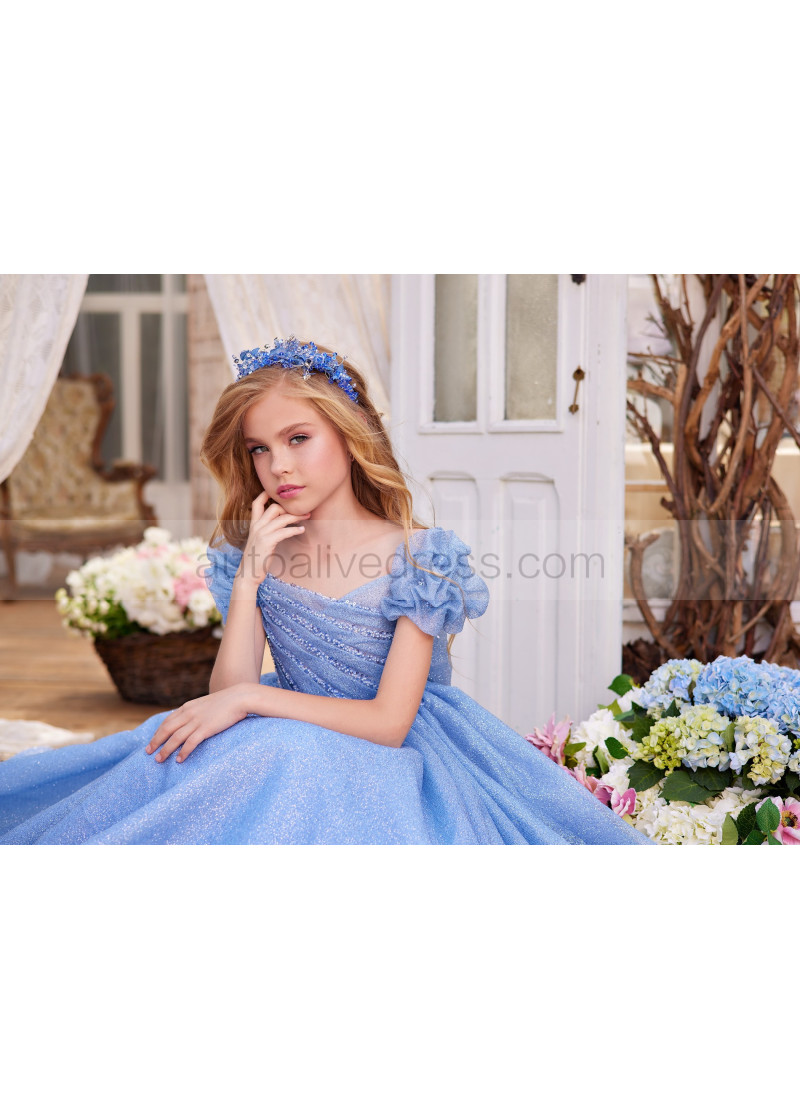 Puff Sleeves Glitter Lace Tulle Gorgeous Flower Girl Dress