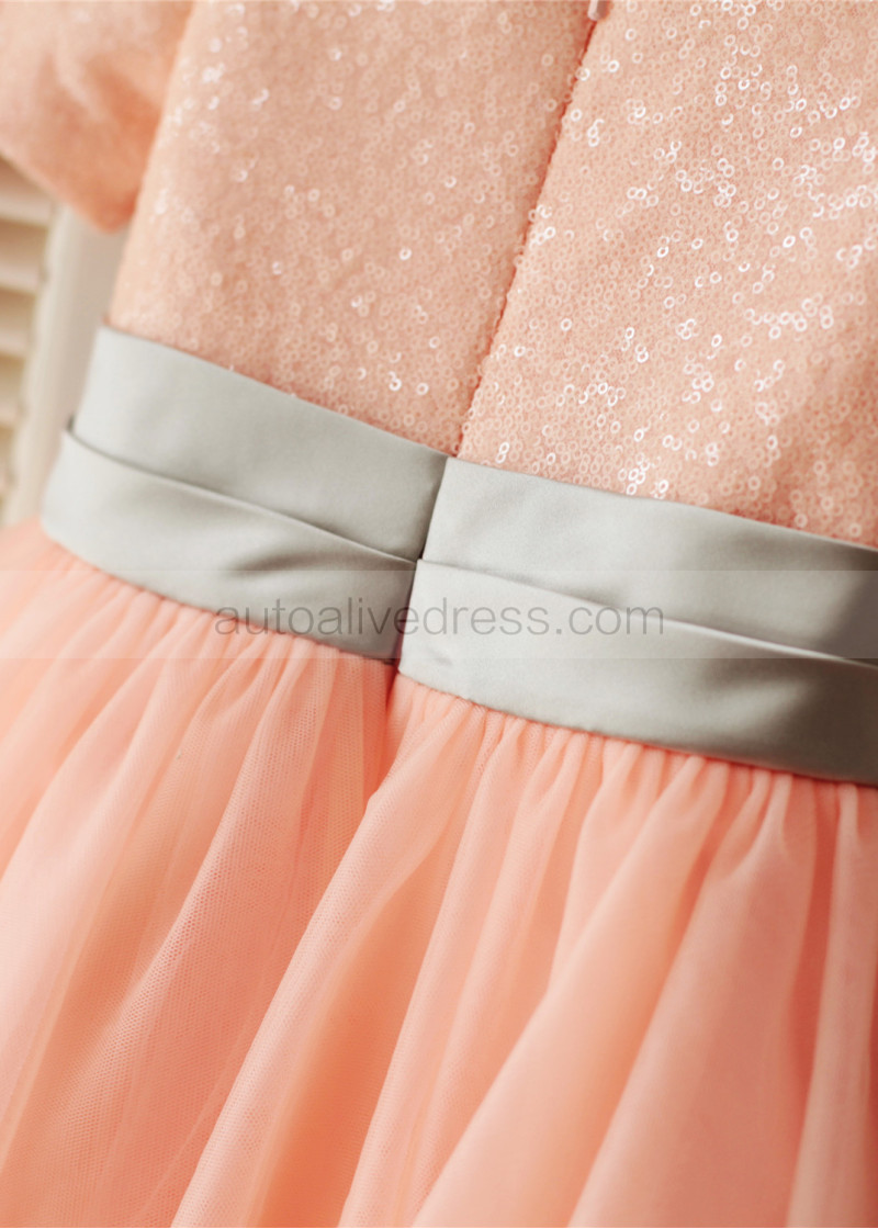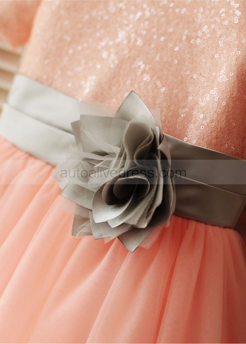 Shown Color | Blush Pink Sequin/Tulle With Gray Sash/Flower |