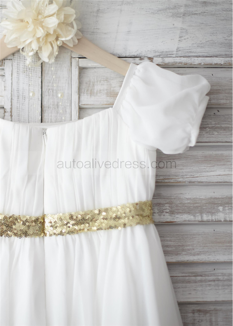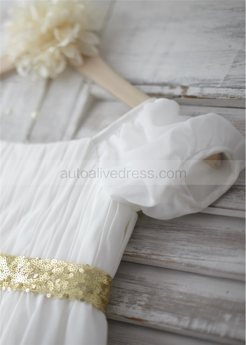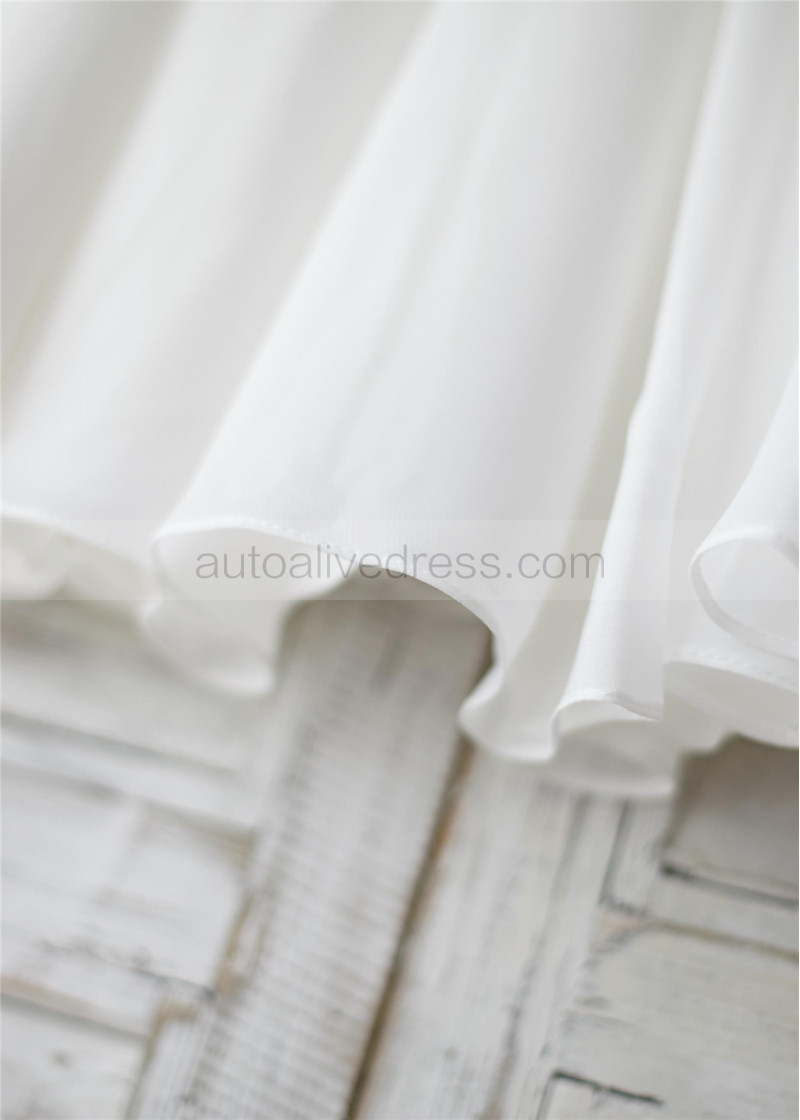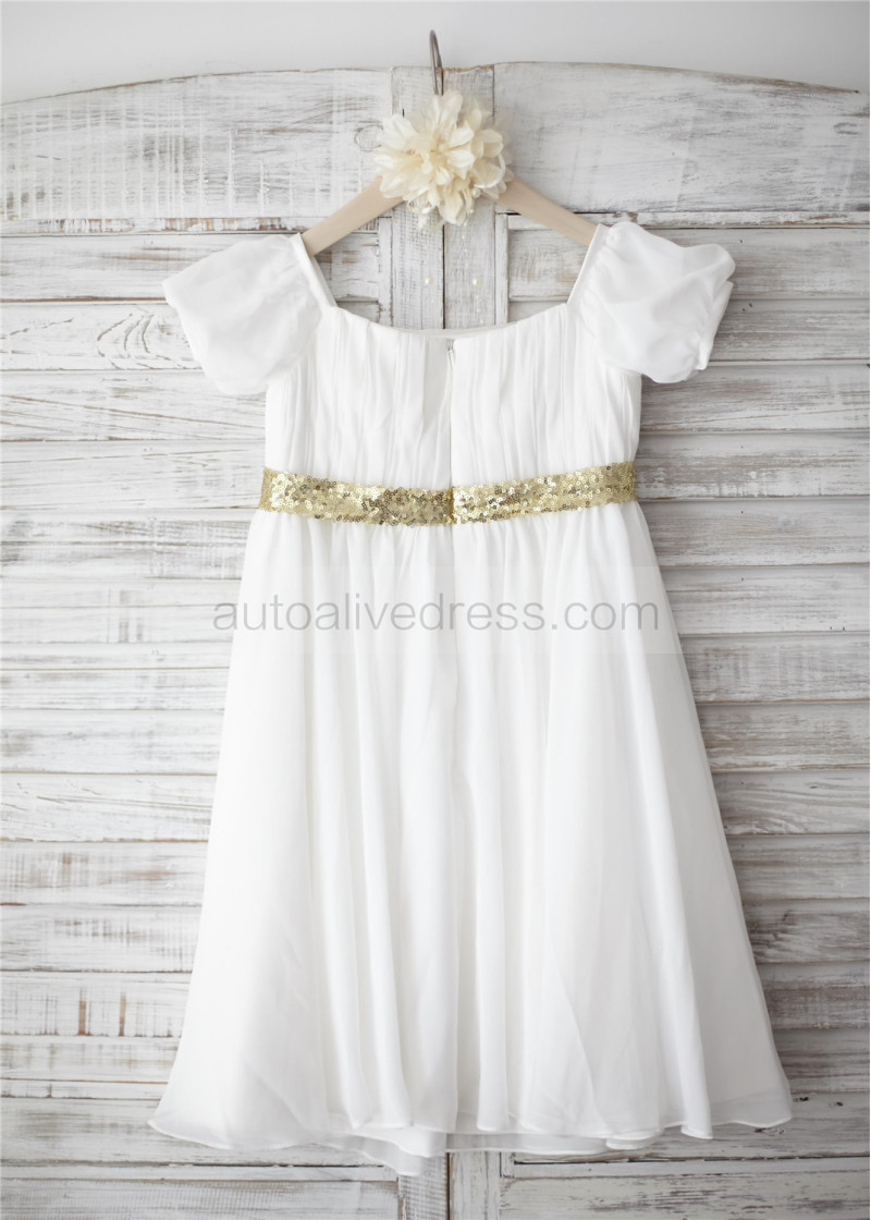 Short Sleeves Ivory Chiffon Boho Beach Wedding Flower Girl Dress