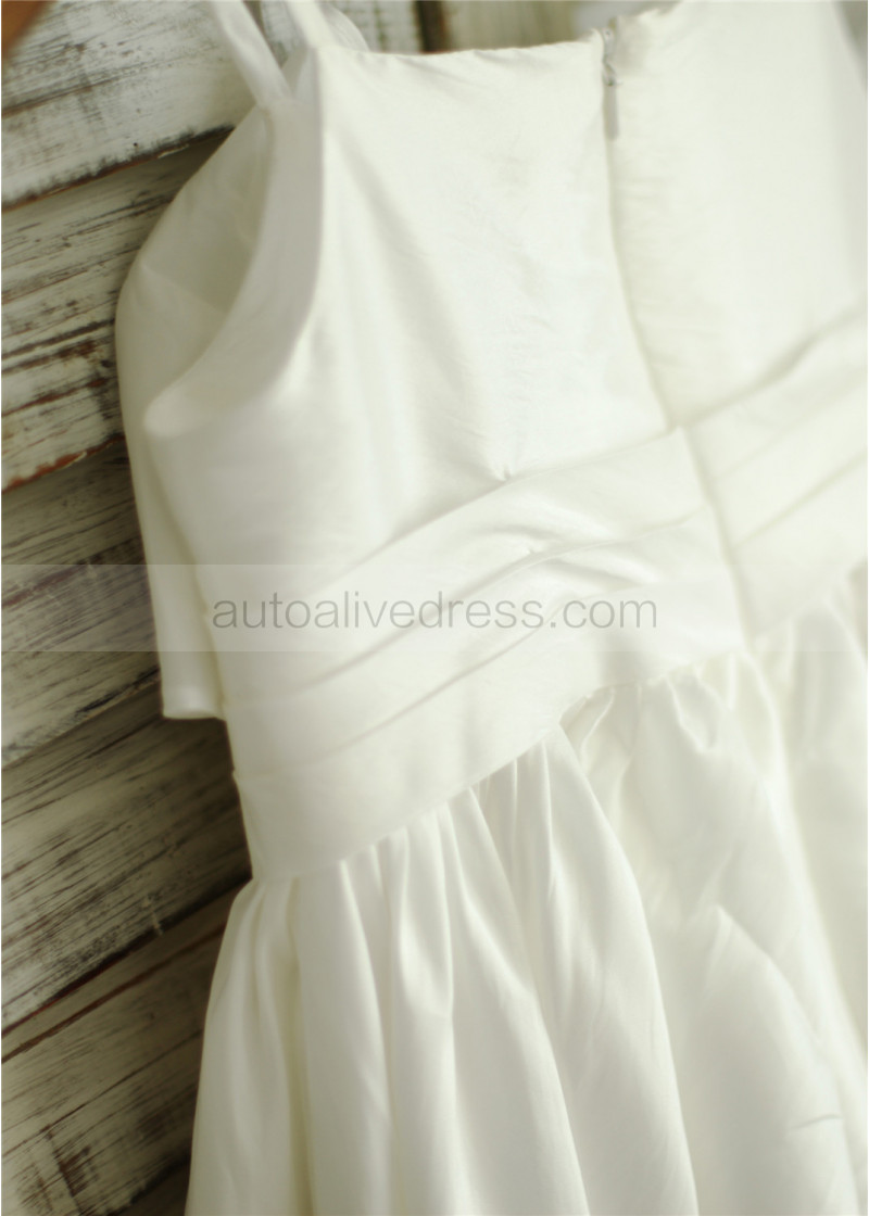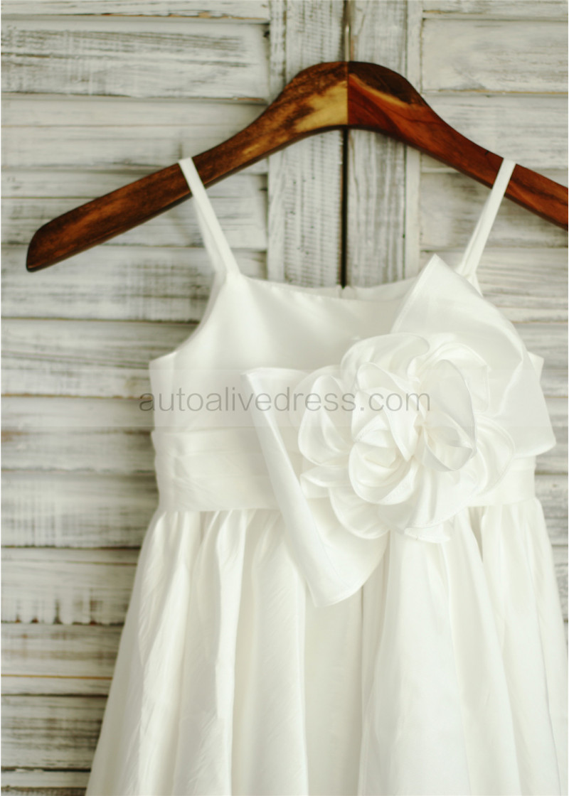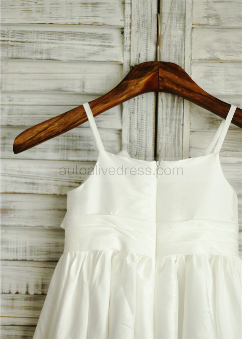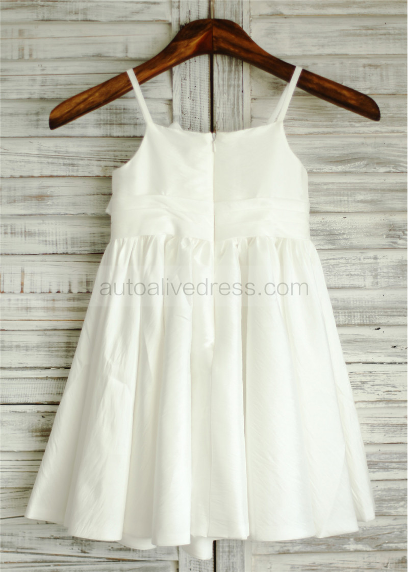 Spaghetti Straps Ivory Taffeta Knee Length Flower Girl Dress