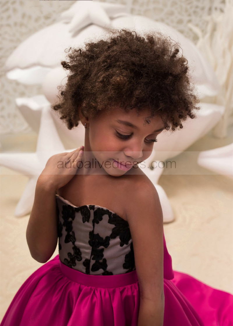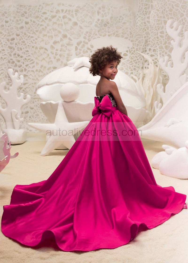 Strapless Lace Satin Long Flower Girl Dress With Train