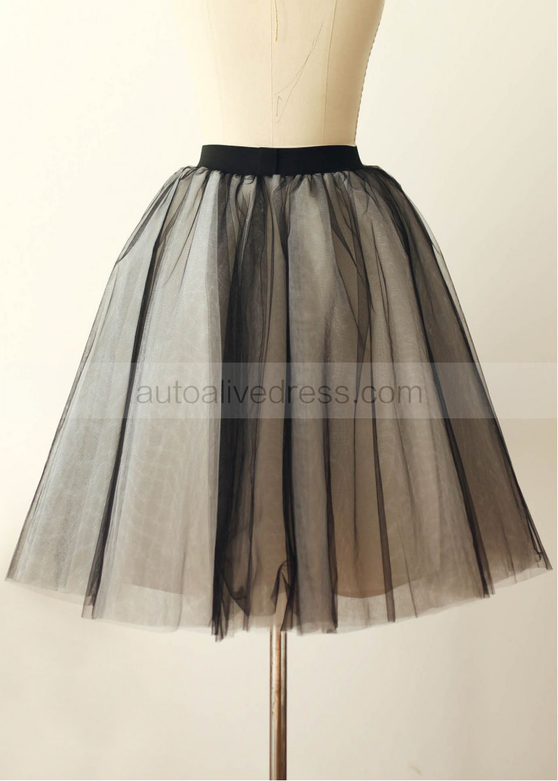 Black Tulle Ivory Lining Knee Length Skirt