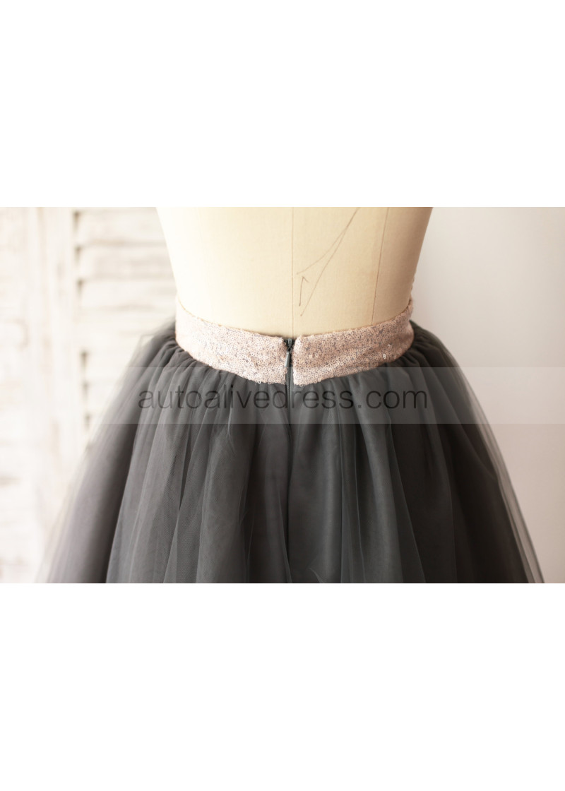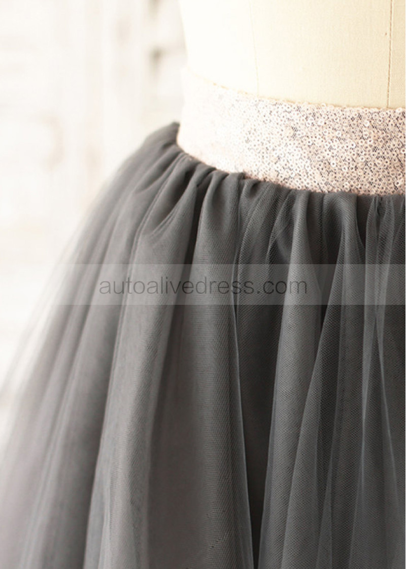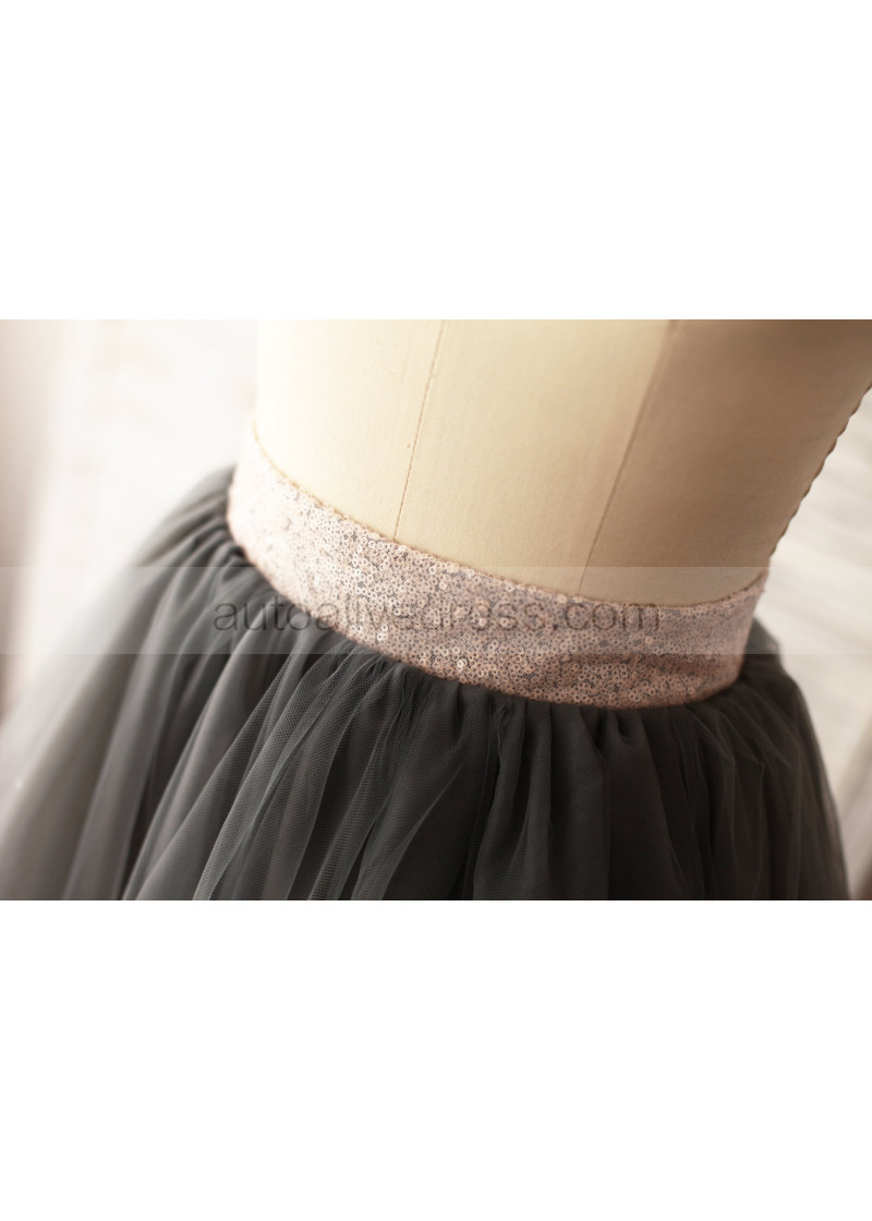 Classic Short Sequin Belt Tulle Skirt For Wedding
