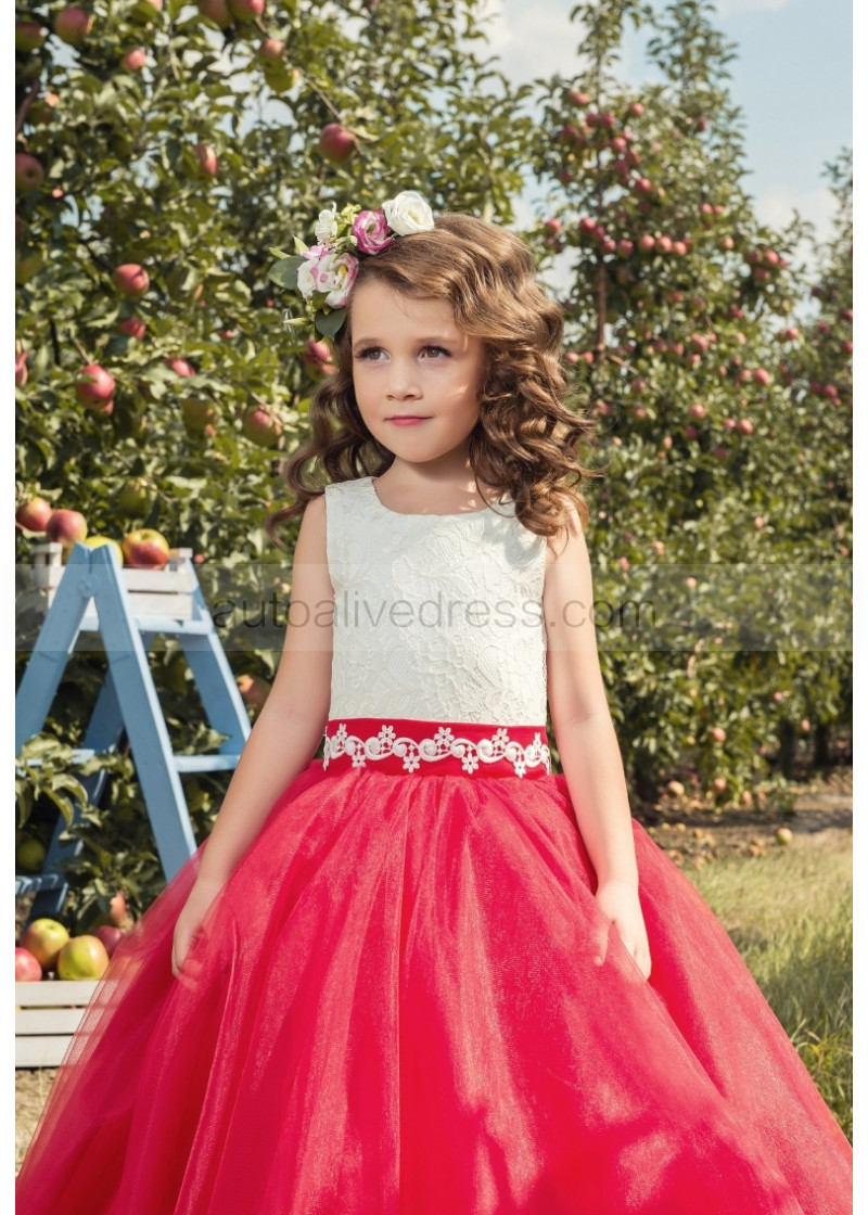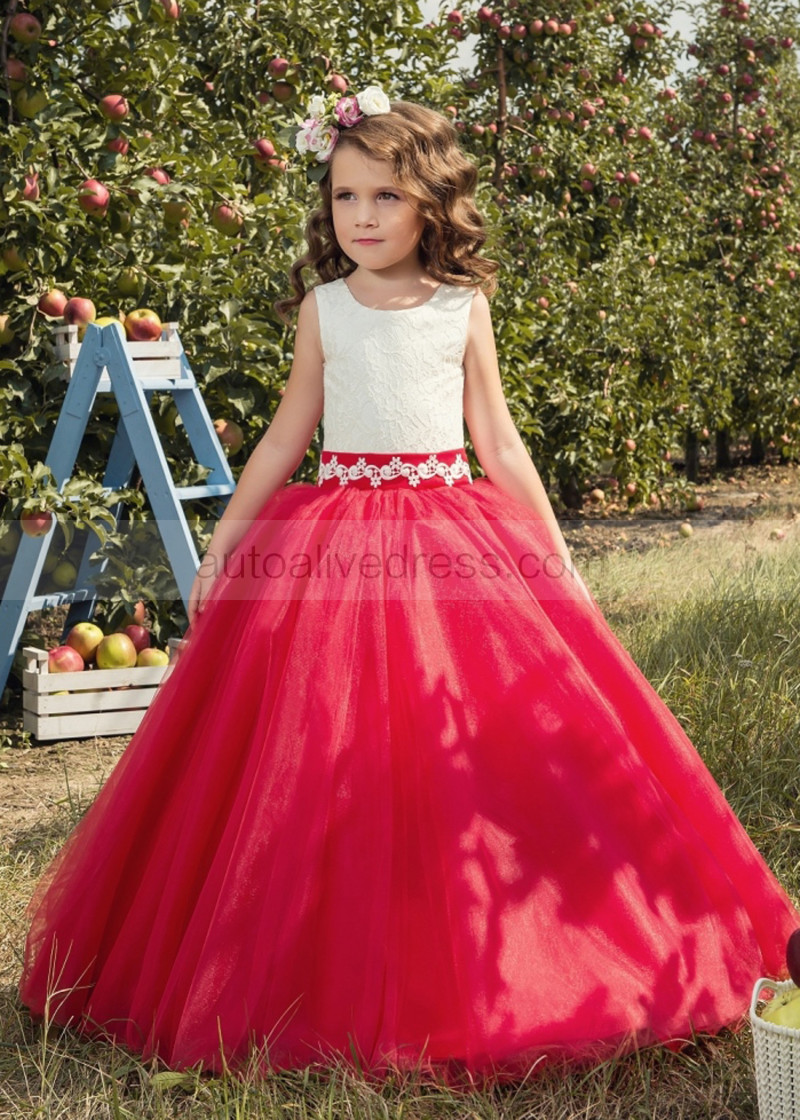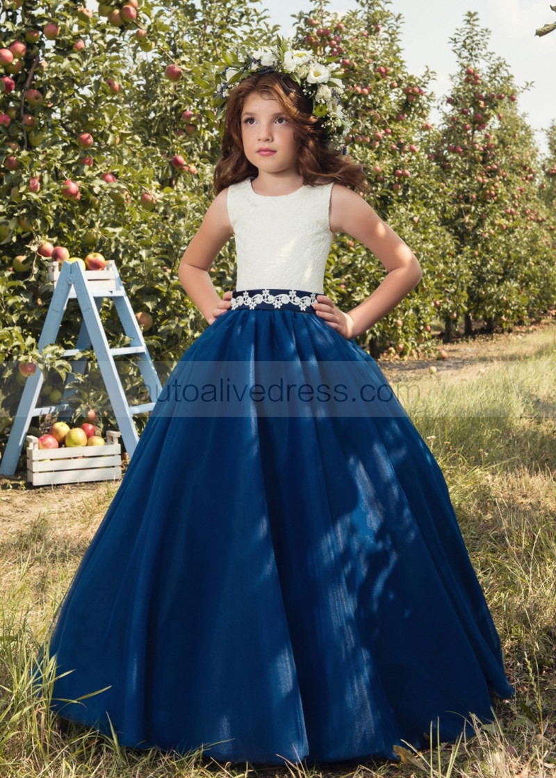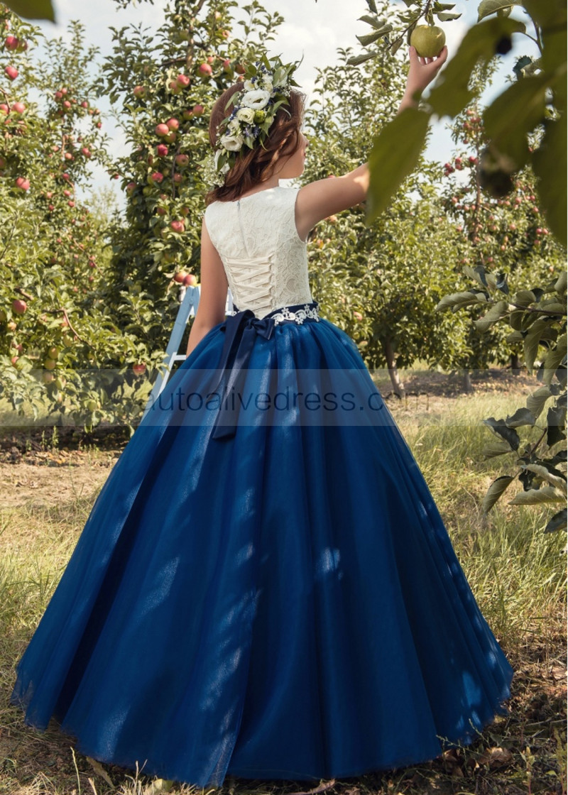 Two-tone Lace Tulle Corset Back Floor Length Flower Girl Dress