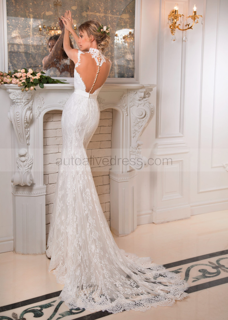 High Neck Ivory Lace Tulle Sheer Back Vintage Wedding Dress