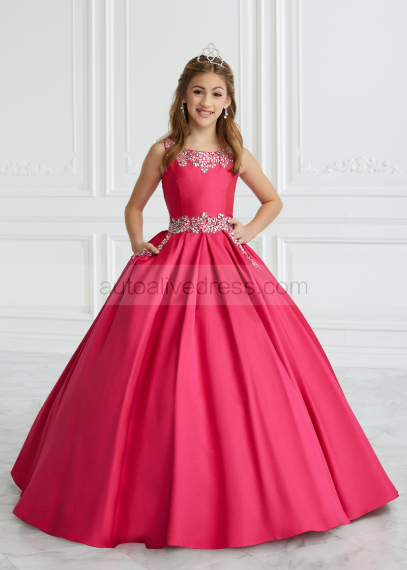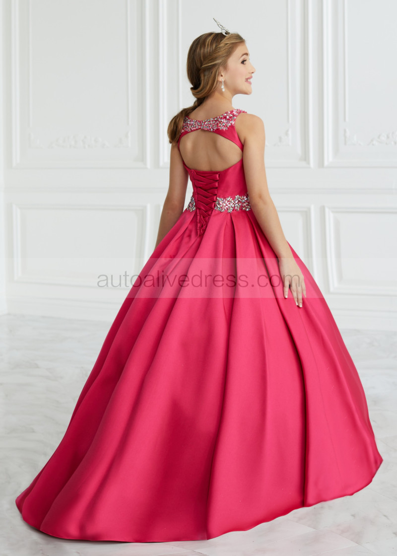 Hot Pink Beaded Satin Keyhole Back Flower Girl Dress